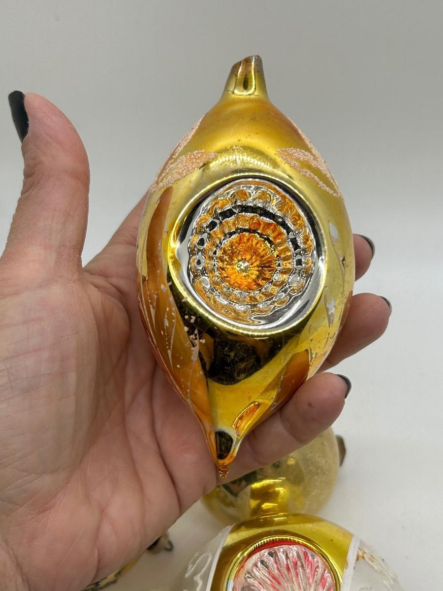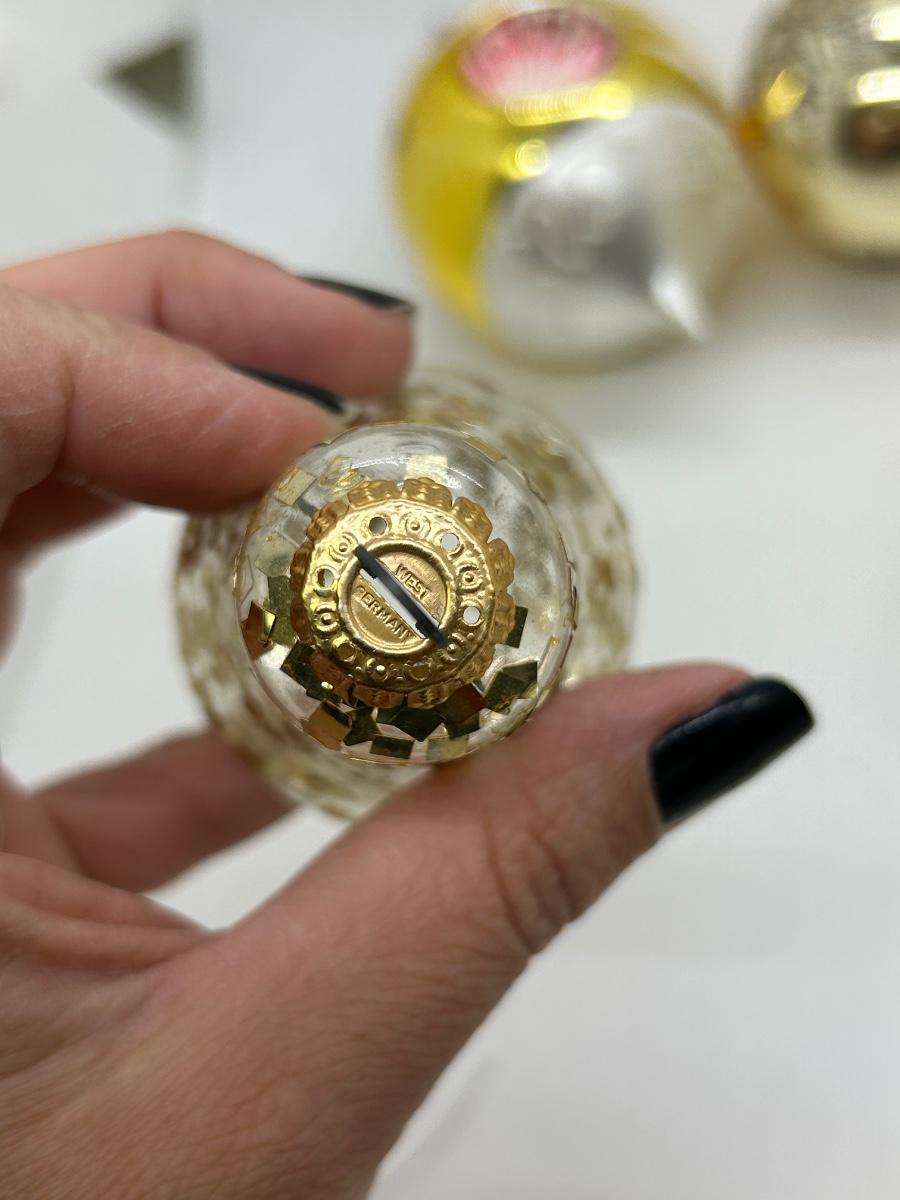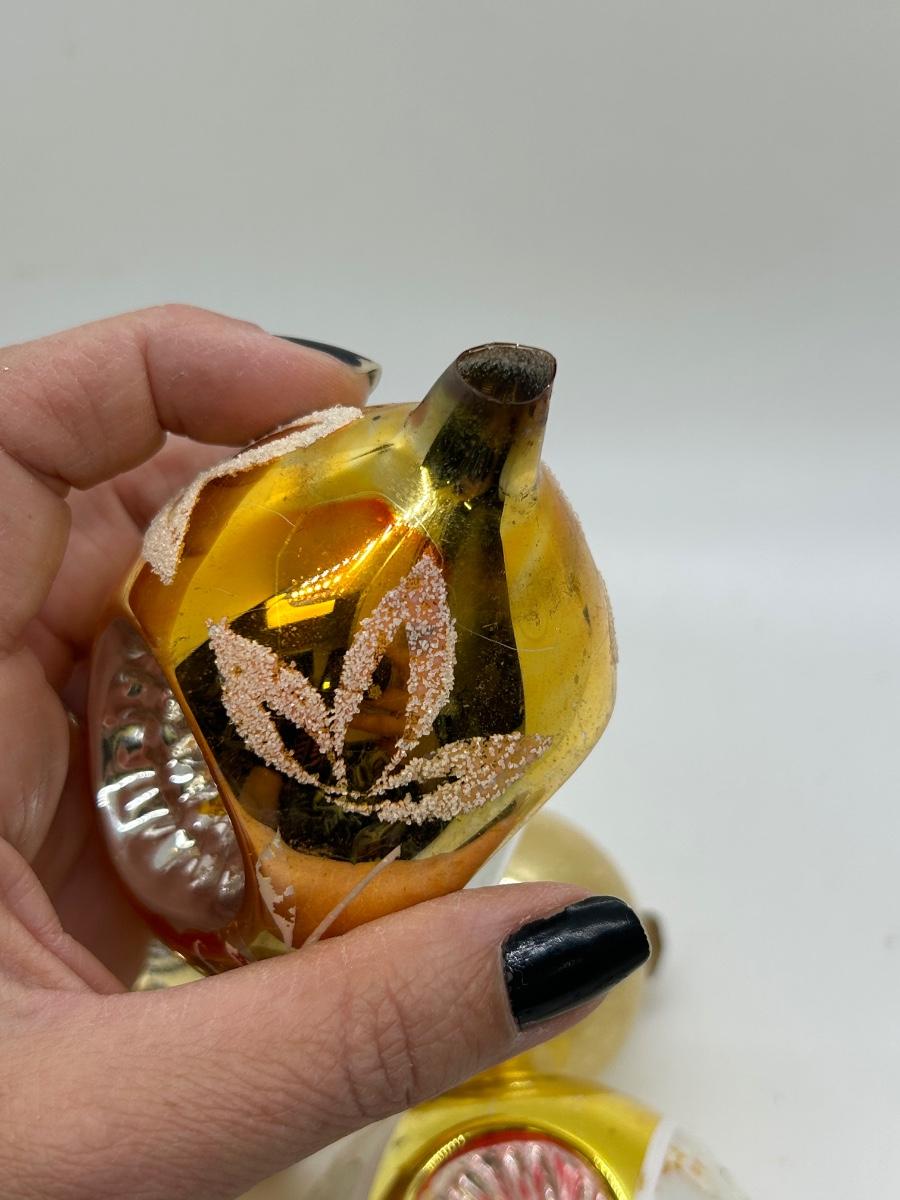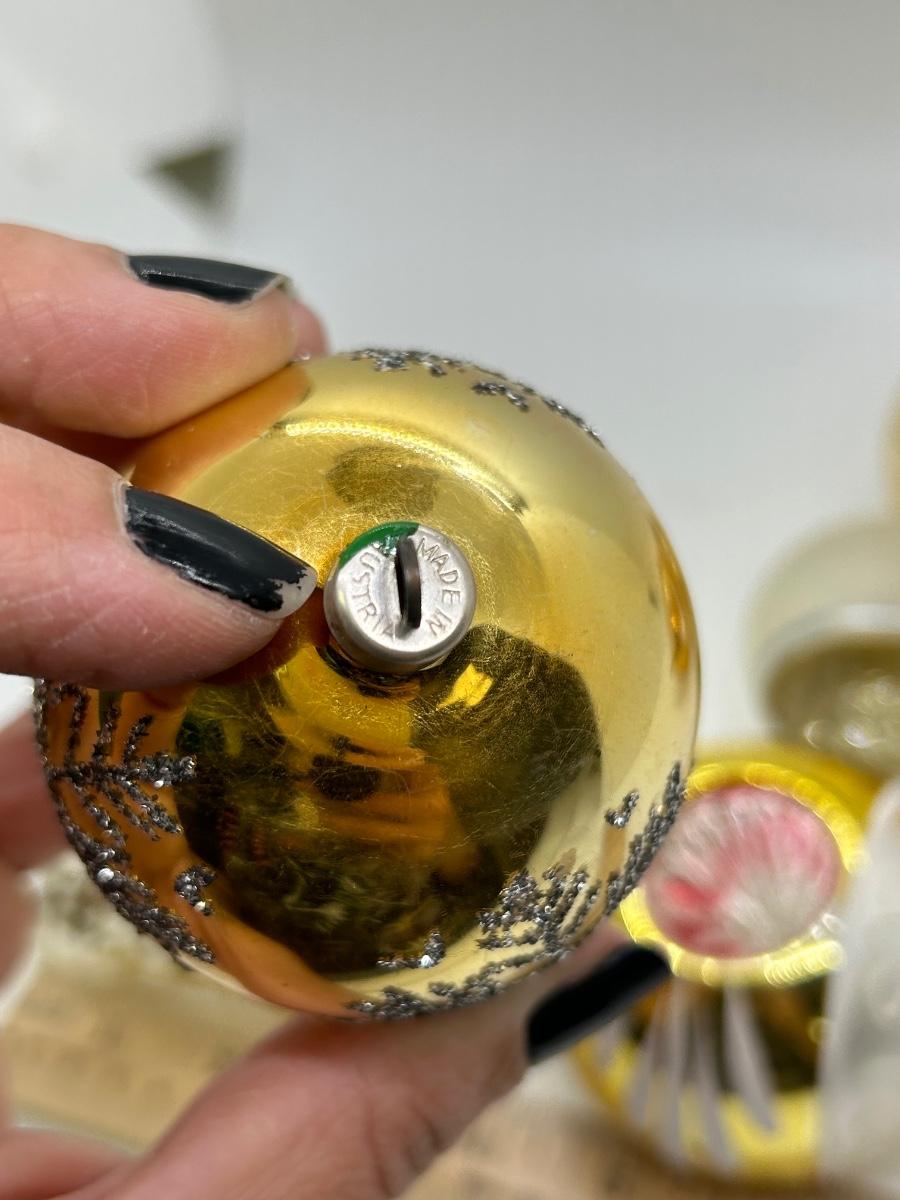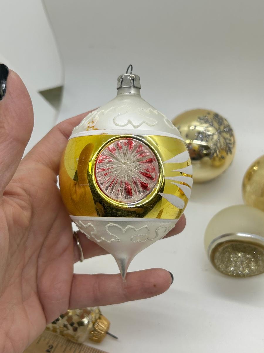 Mixed Lot of Vintage Gold Tone Blown Glass Christmas Holiday Tree Ornaments