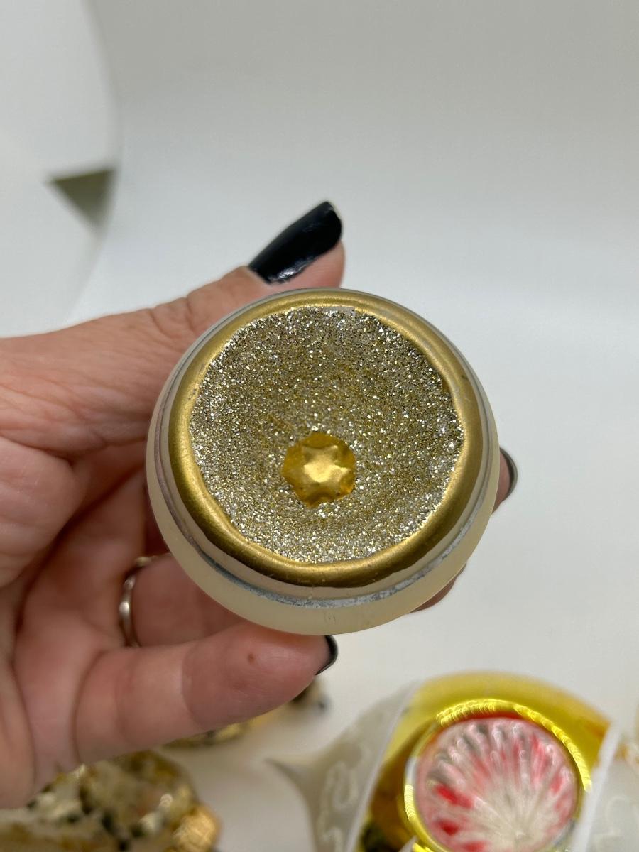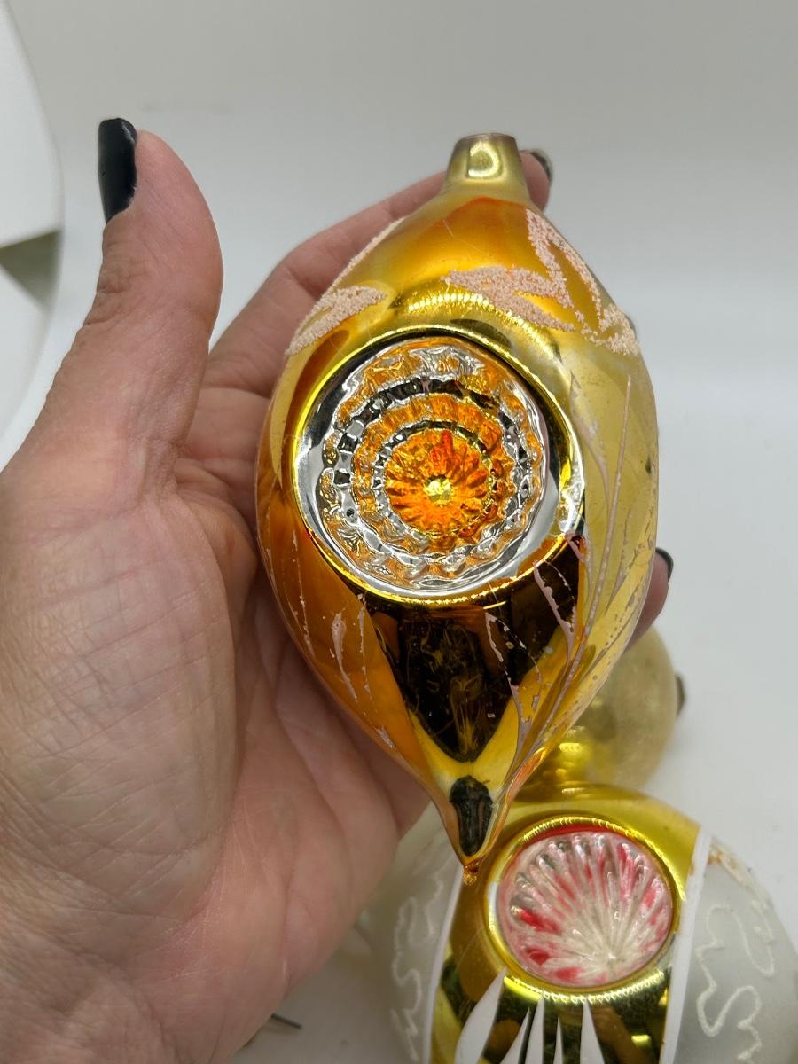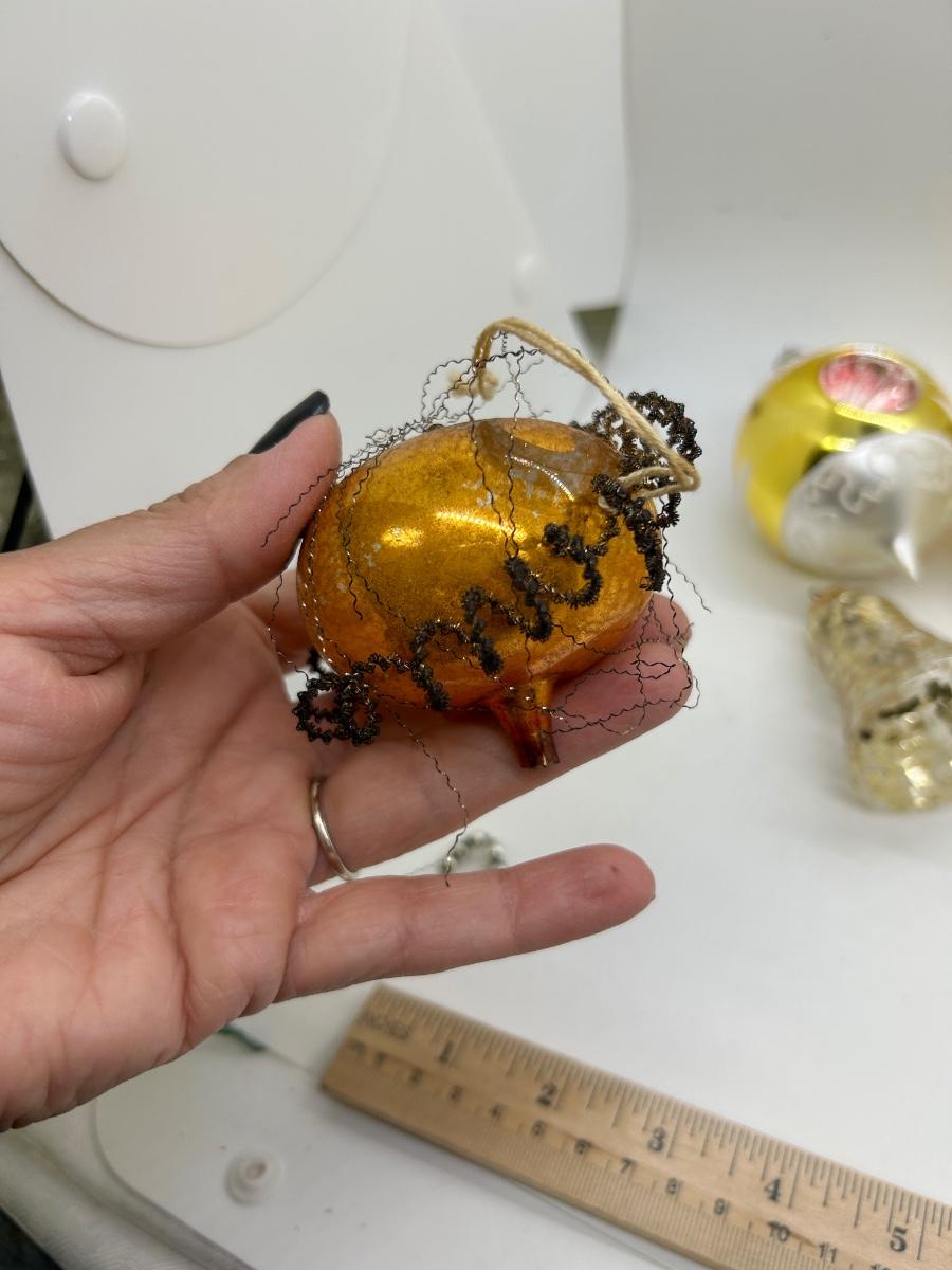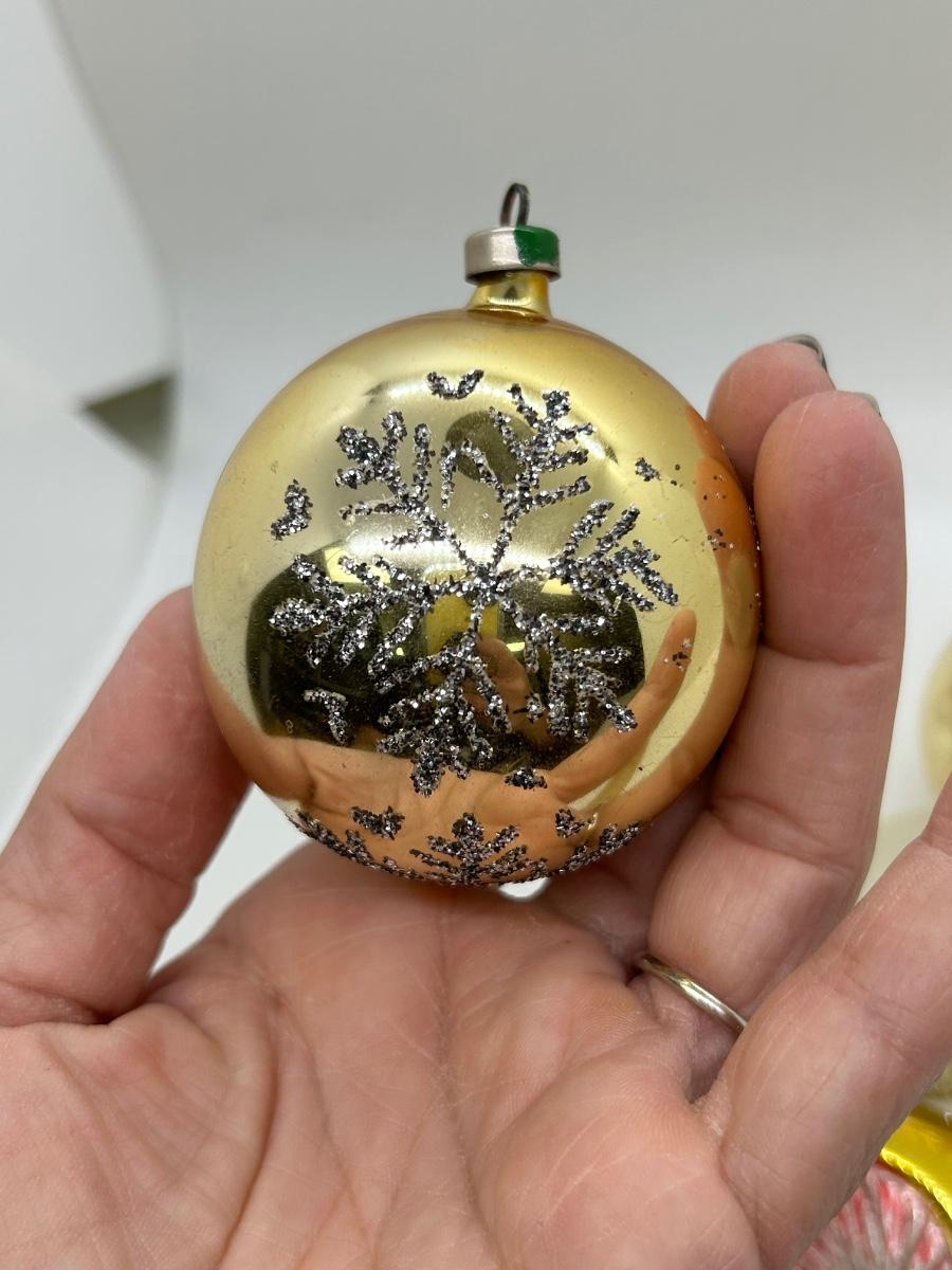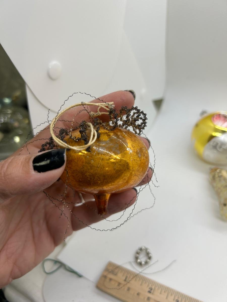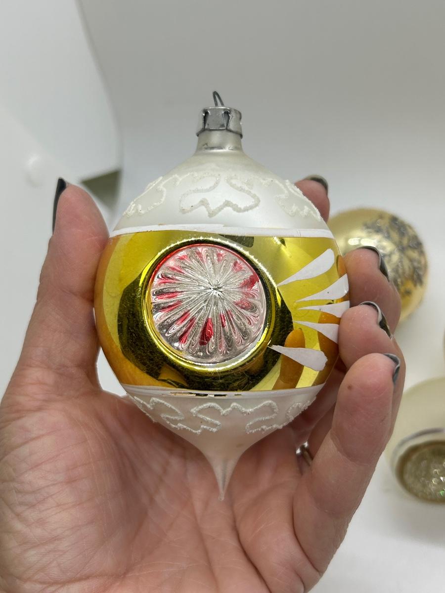 Mixed Lot of Vintage Gold Tone Blown Glass Christmas Holiday Tree Ornaments