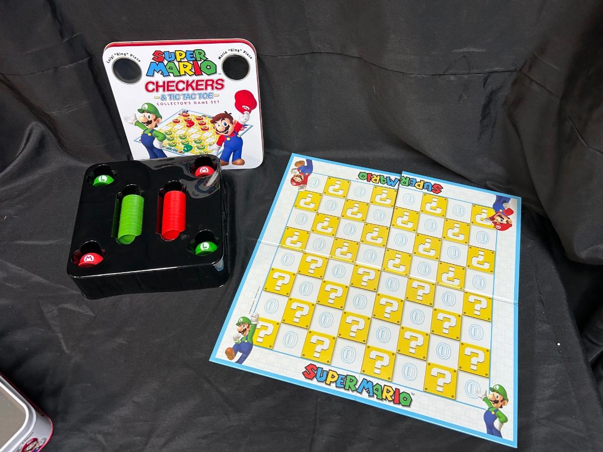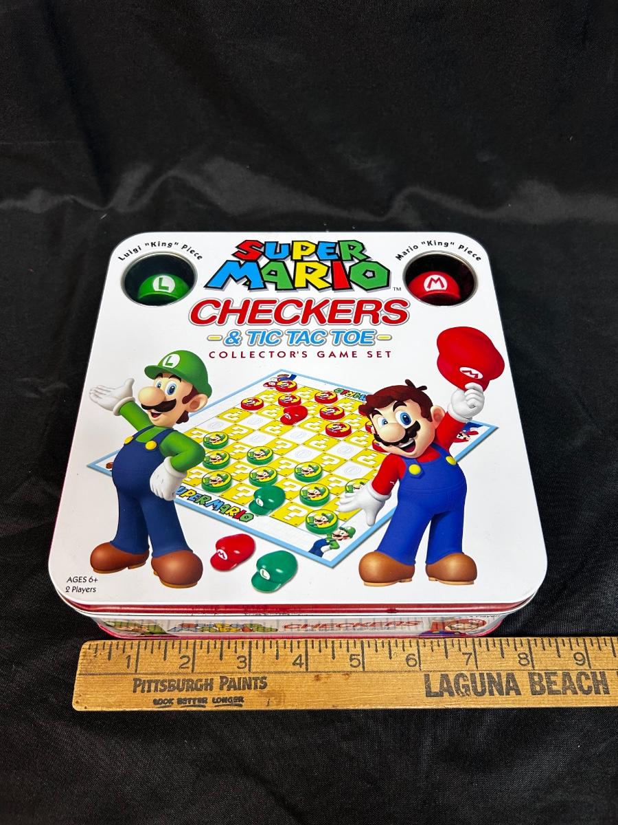 Super Mario Bros Checkers & Tic Tac Toe Collector's Game Set Complete in Tin. In good condition.