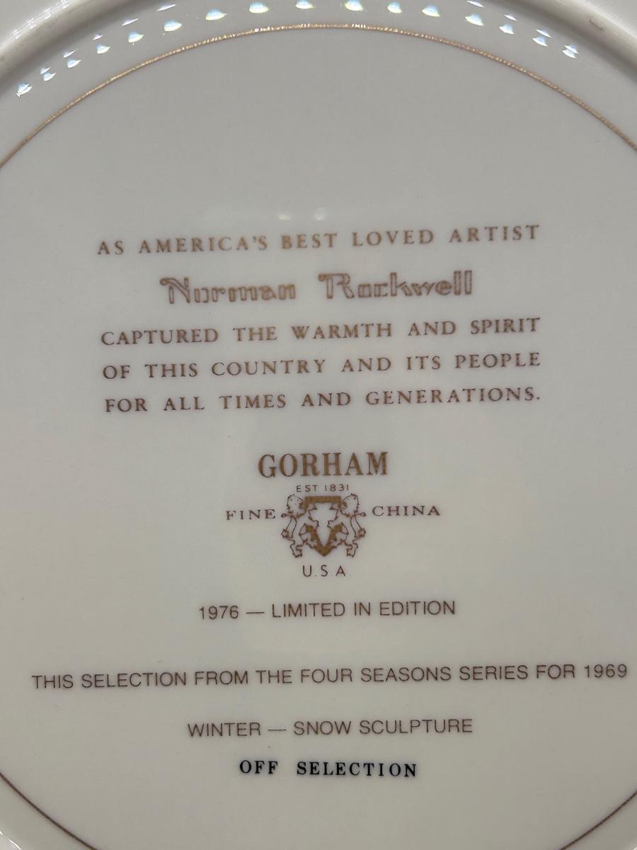 Norman Rockwell Gorham Fine China 1976 Limited Edition Four Seasons Series Snowman Collectors Plate