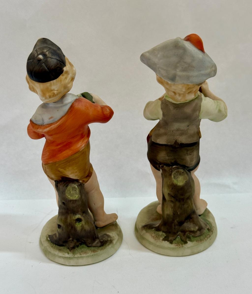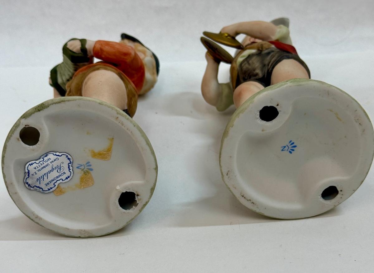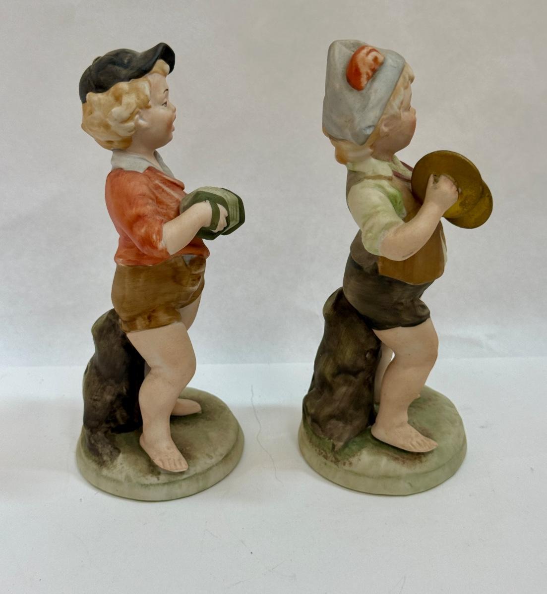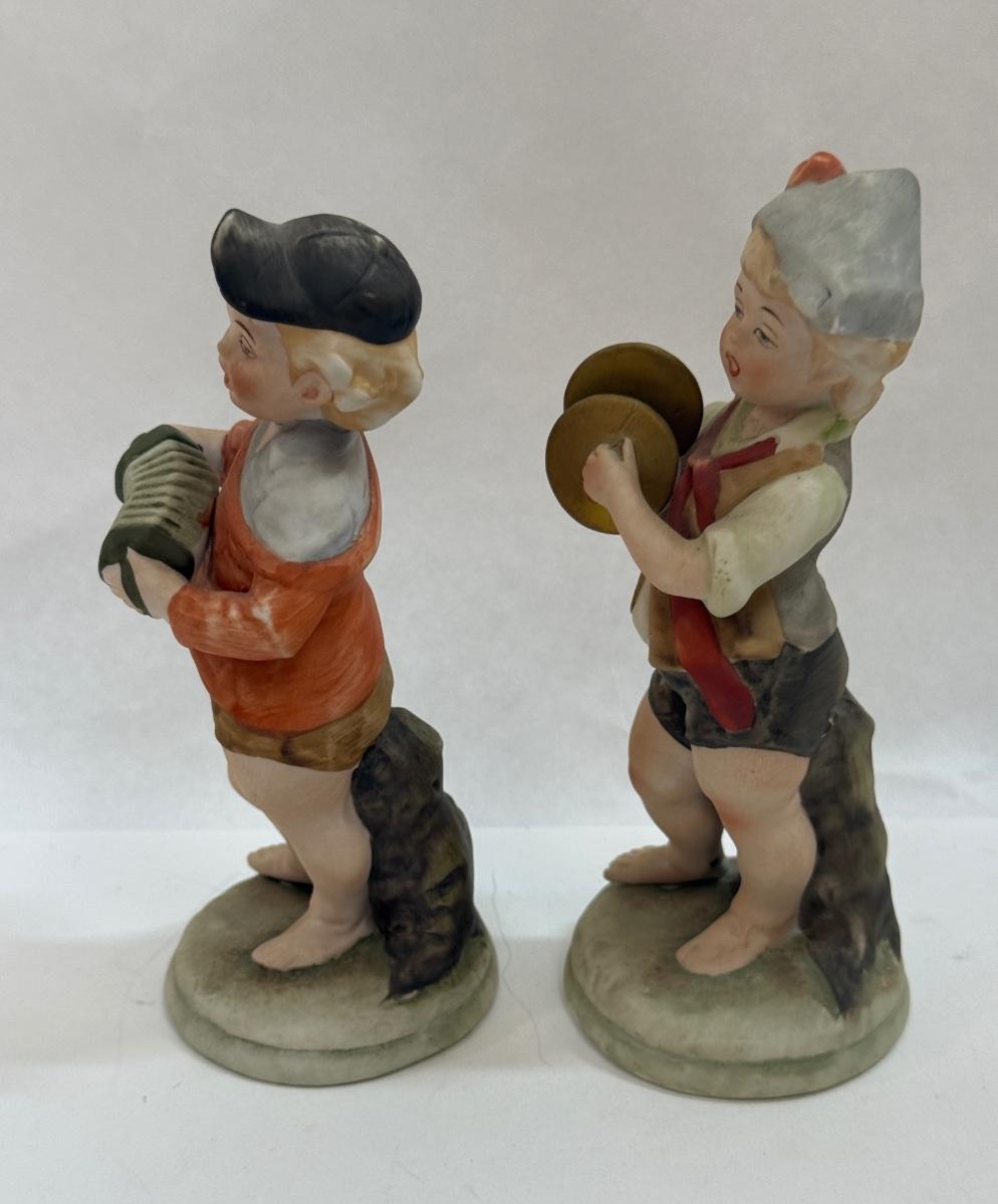 Antique Hand-painted Bisque Porcelain Boys with Musical Instruments Figurines