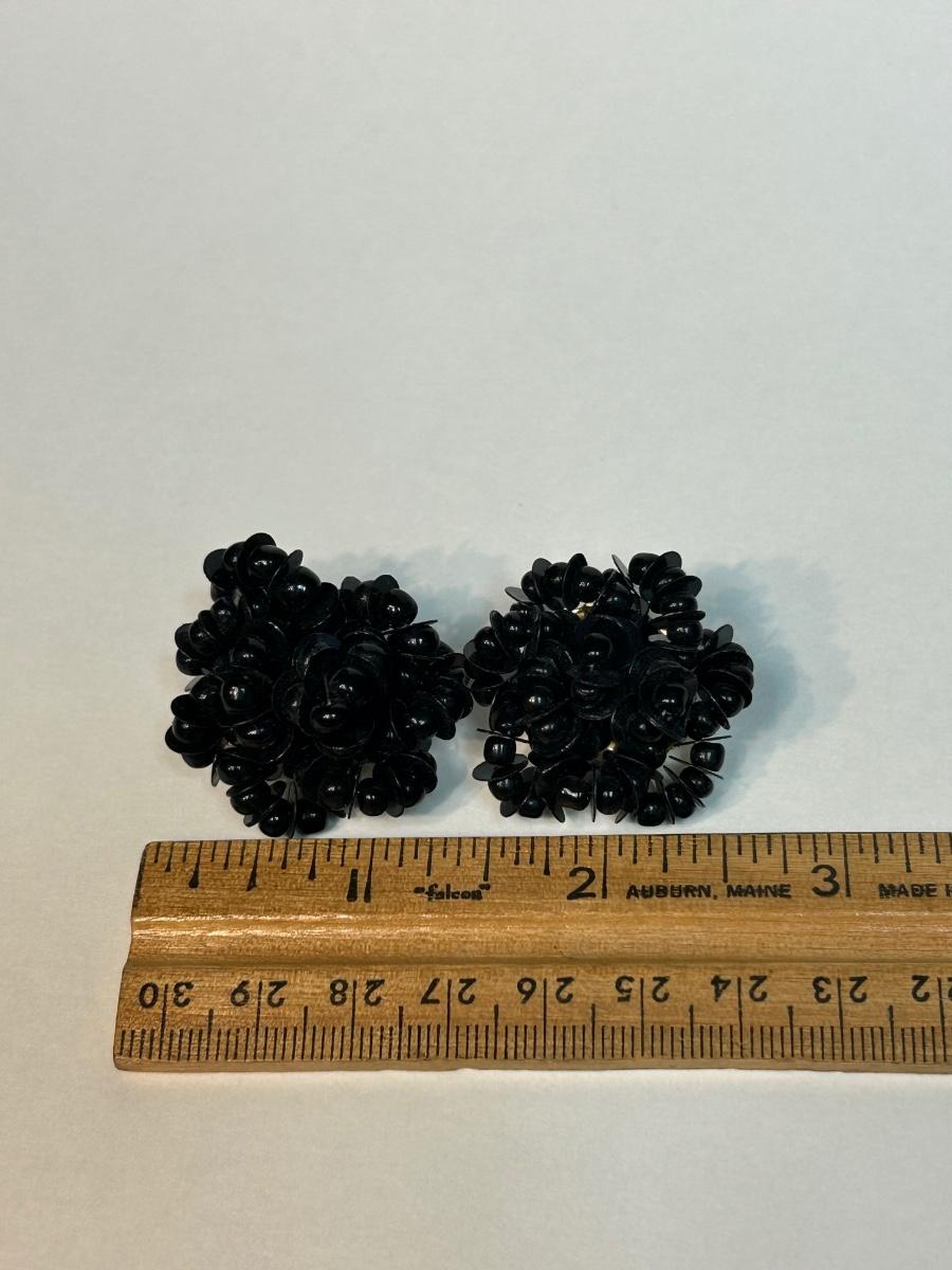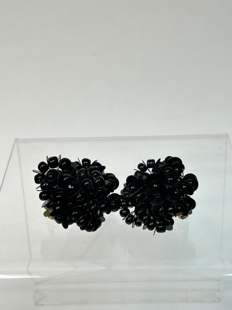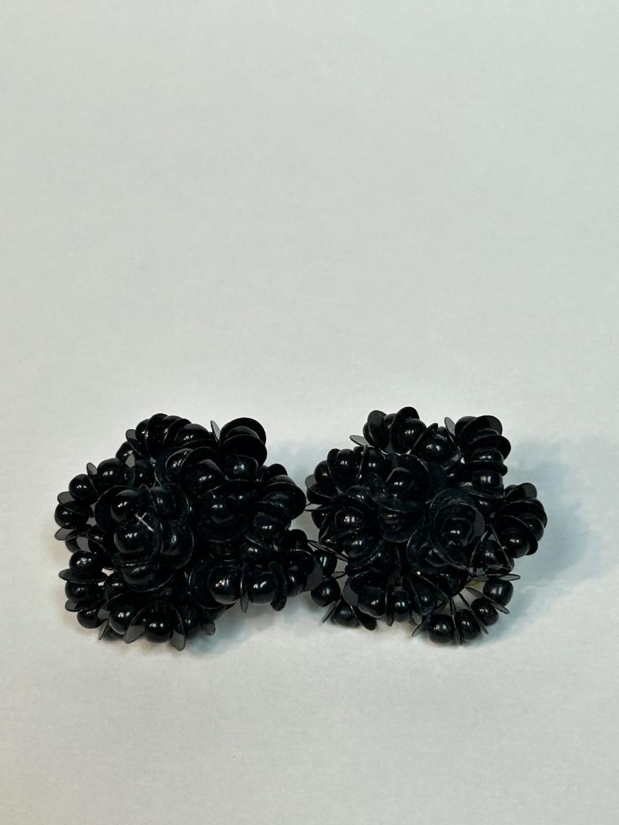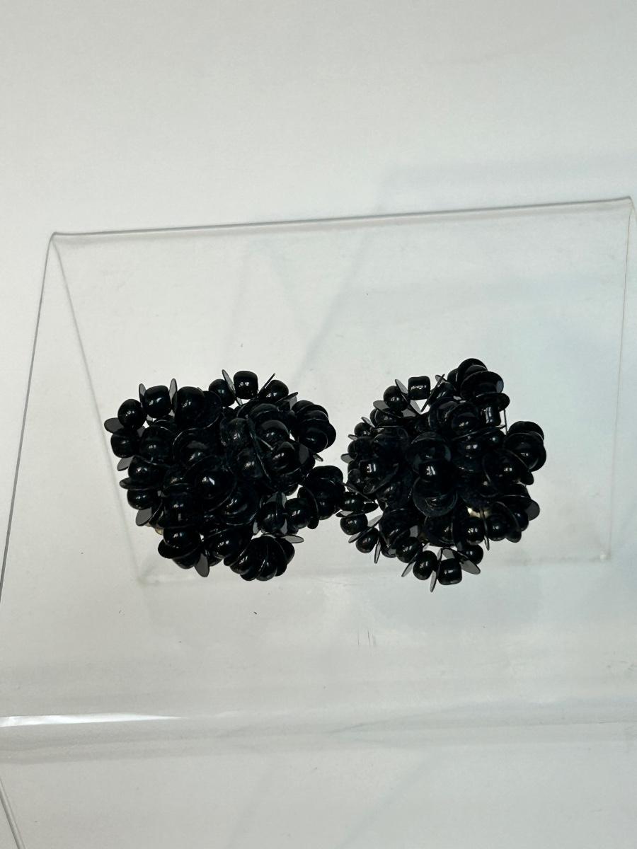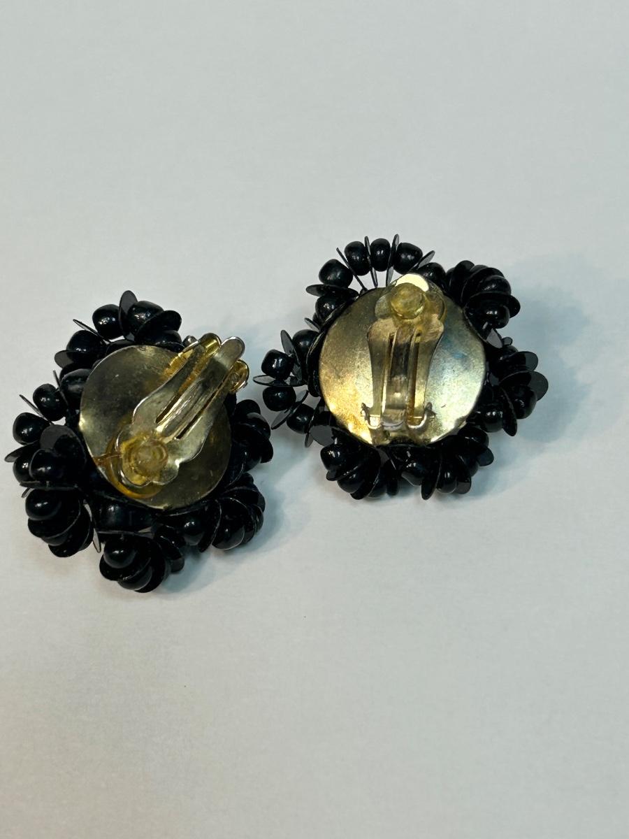 Vintage Black Bead and Sequin Cluster Clip Style Earrings. In fair condition.