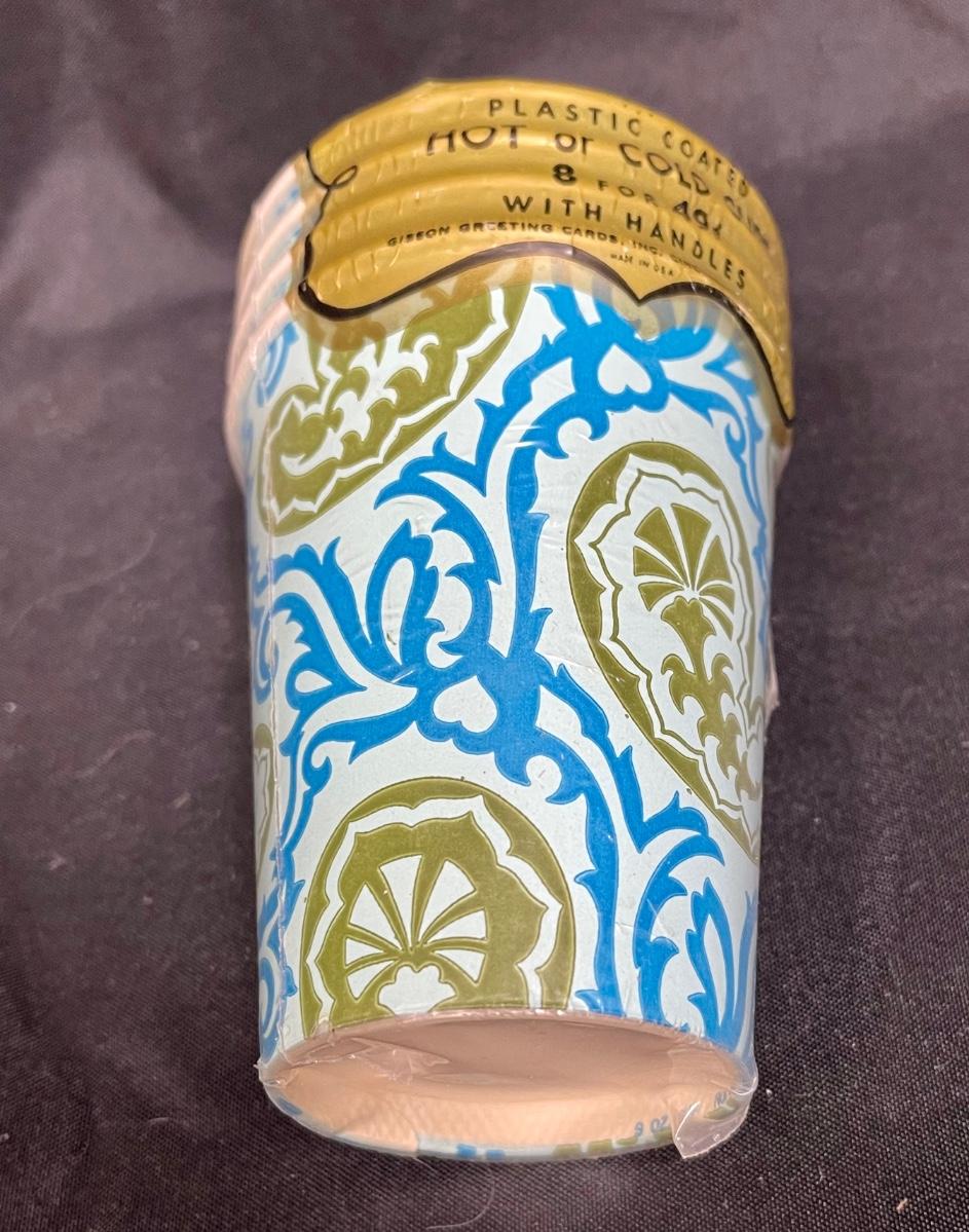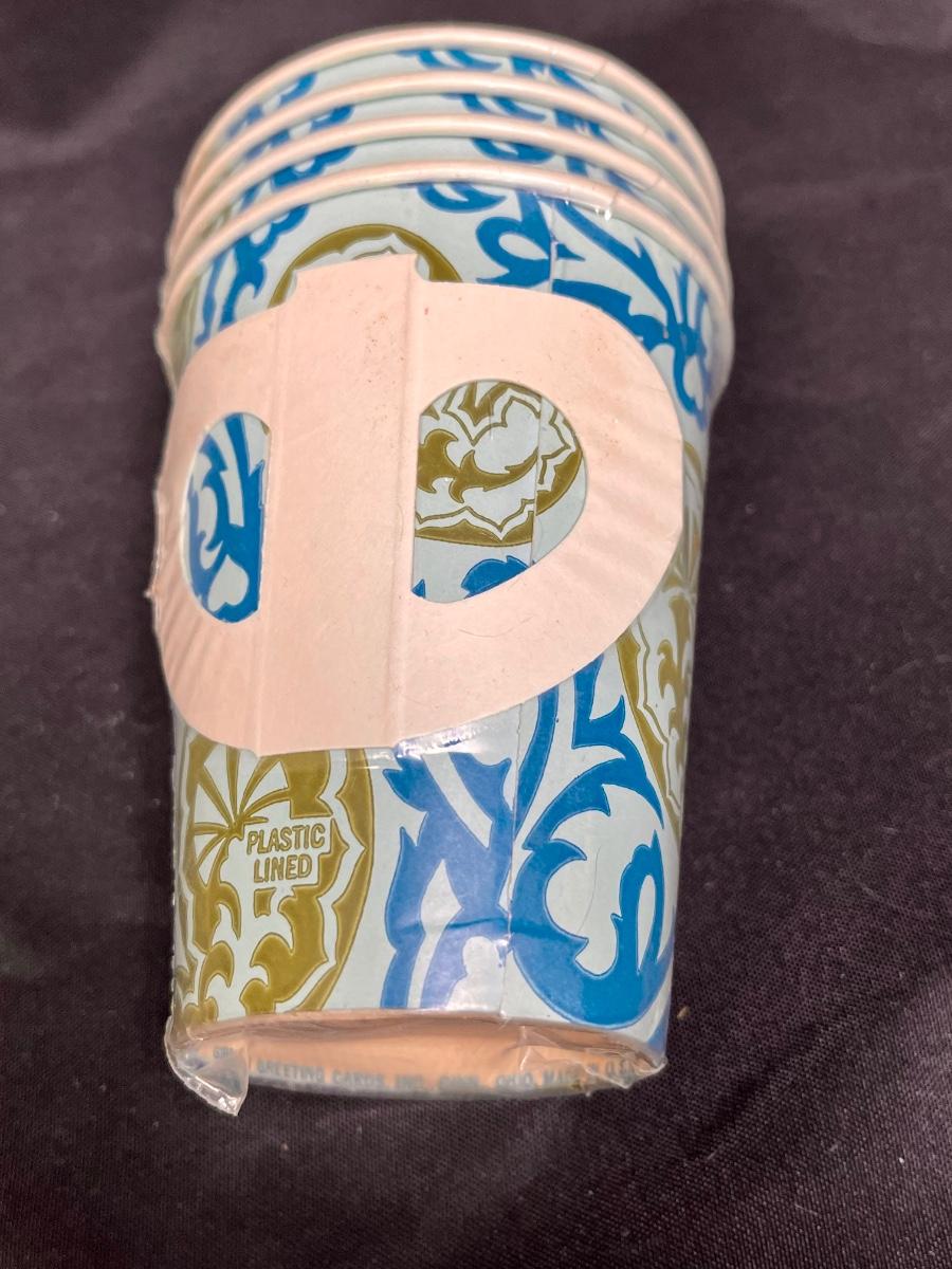 Vintage Gibson Greeting Cards Blue and Gold Party Cups with Handles Unopened. In good vintage condition.