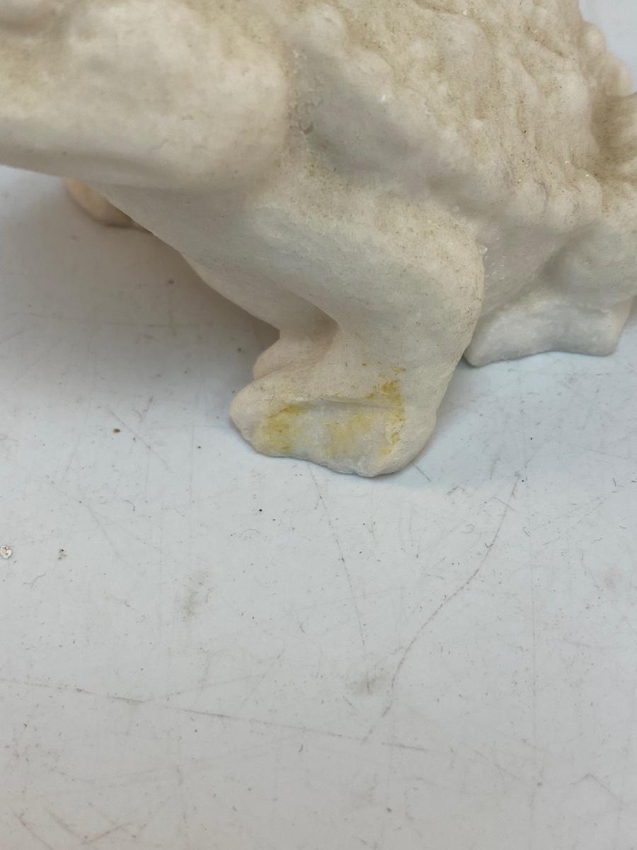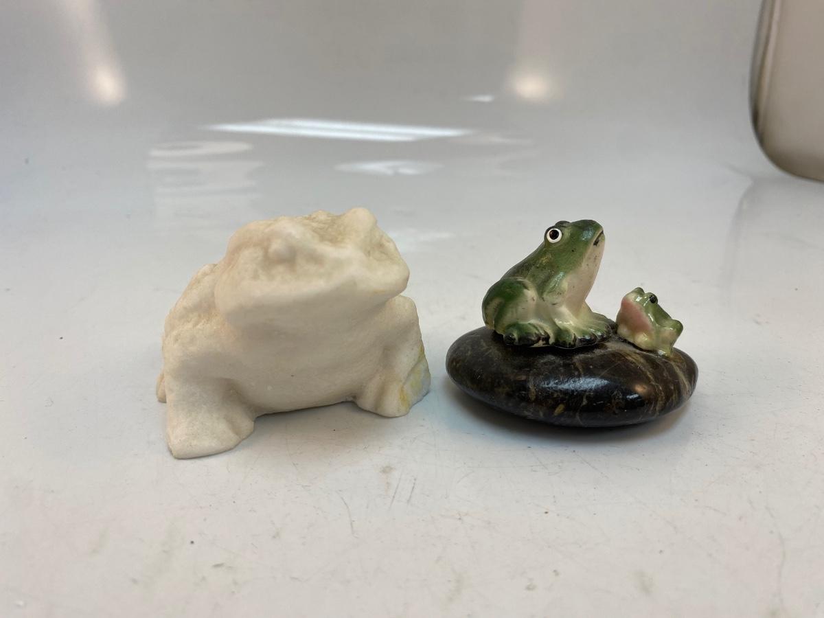 There is a crack to the white frog figurine and there is overall light vintage wear to the figures, but there is no significant damage and is in overall good collectible condition.