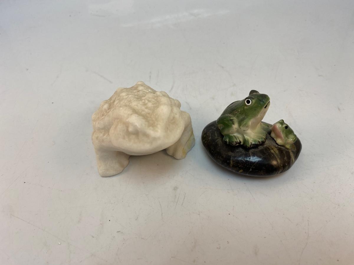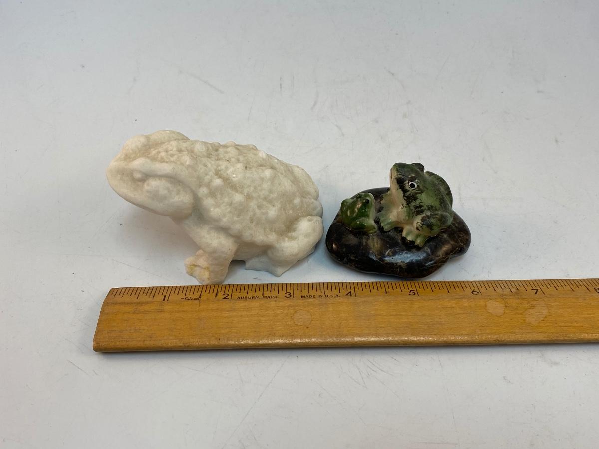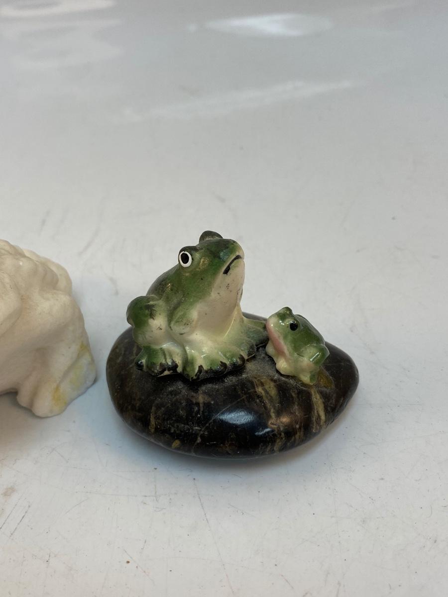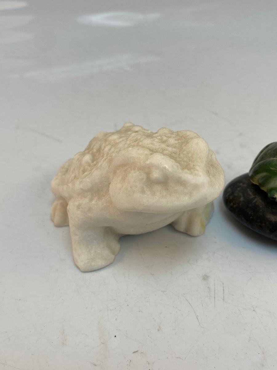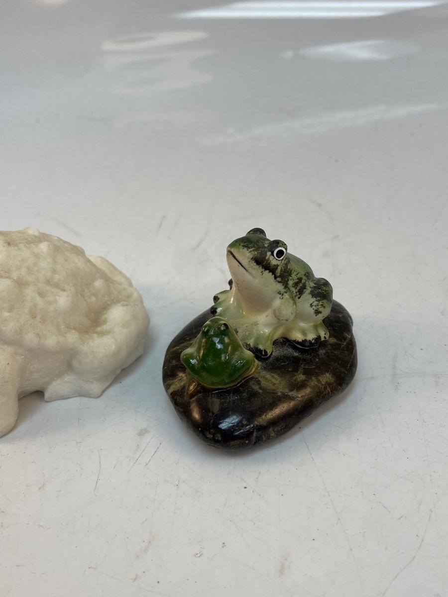 Vintage Frog Soap Stone Carving & Green Frogs Figurine
