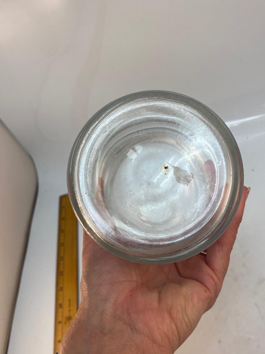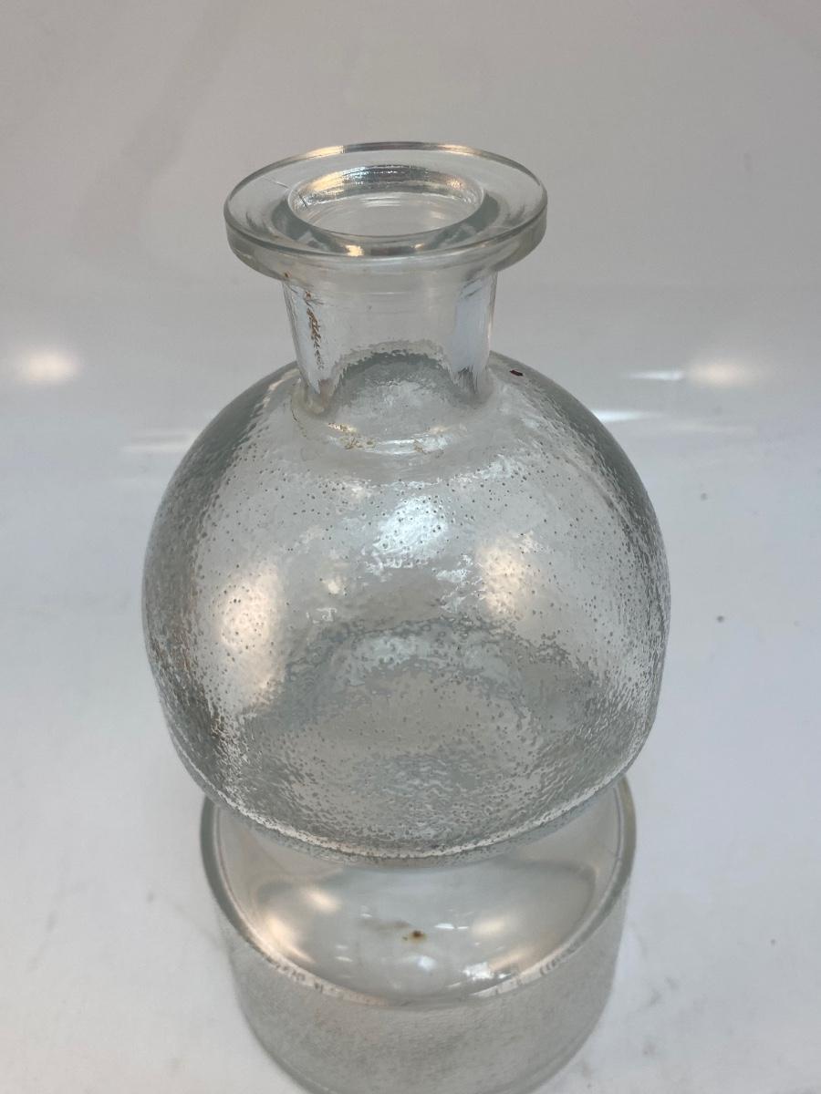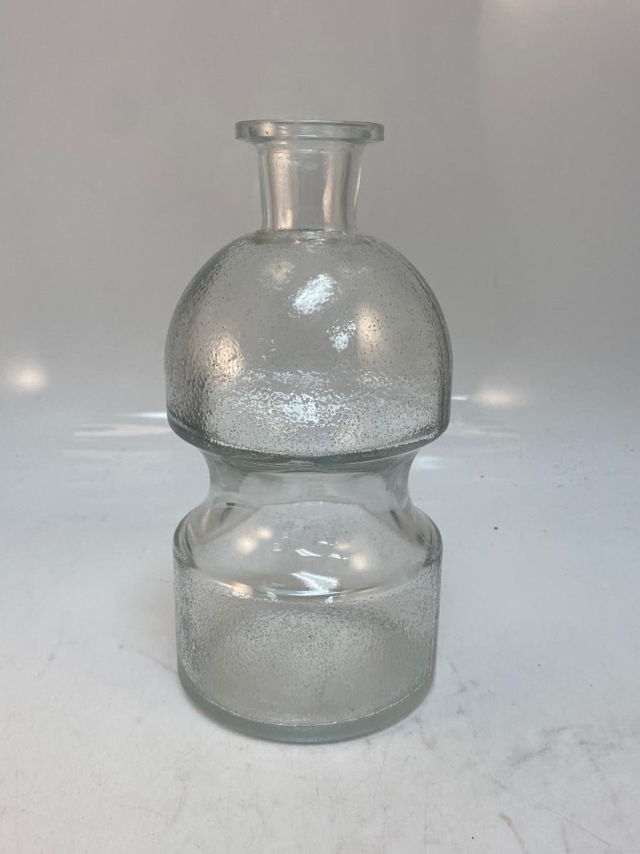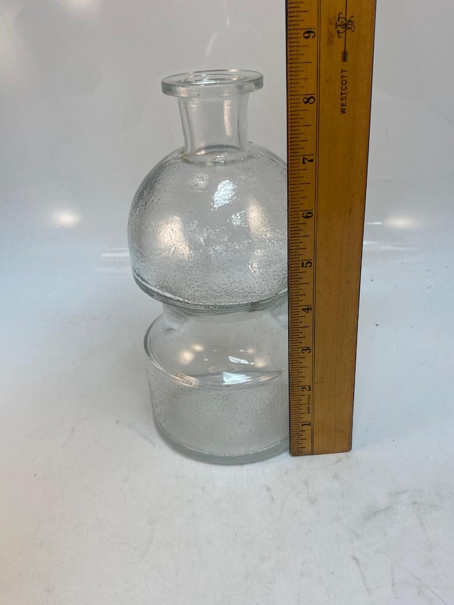 Funky Shaped Textured Clear Glass Bottle. In good condition. Just over 8" size.