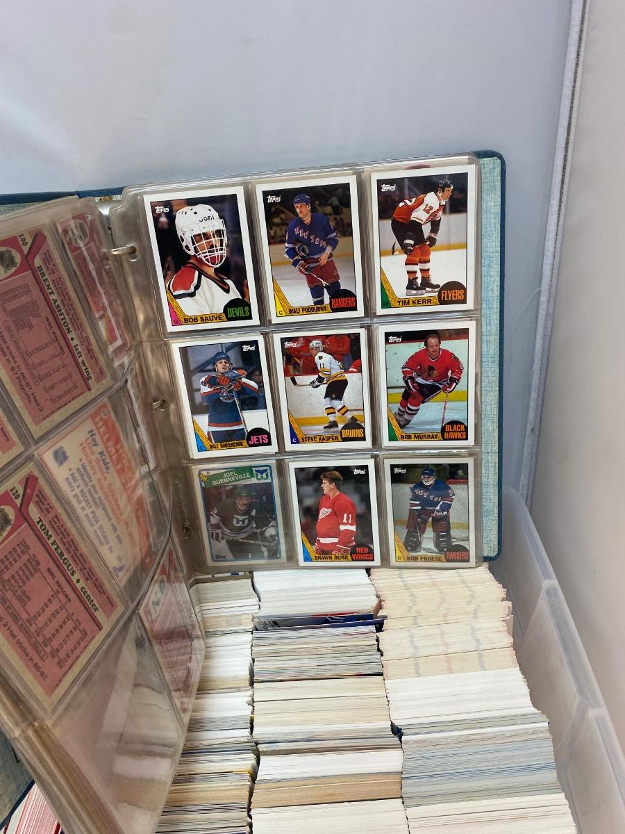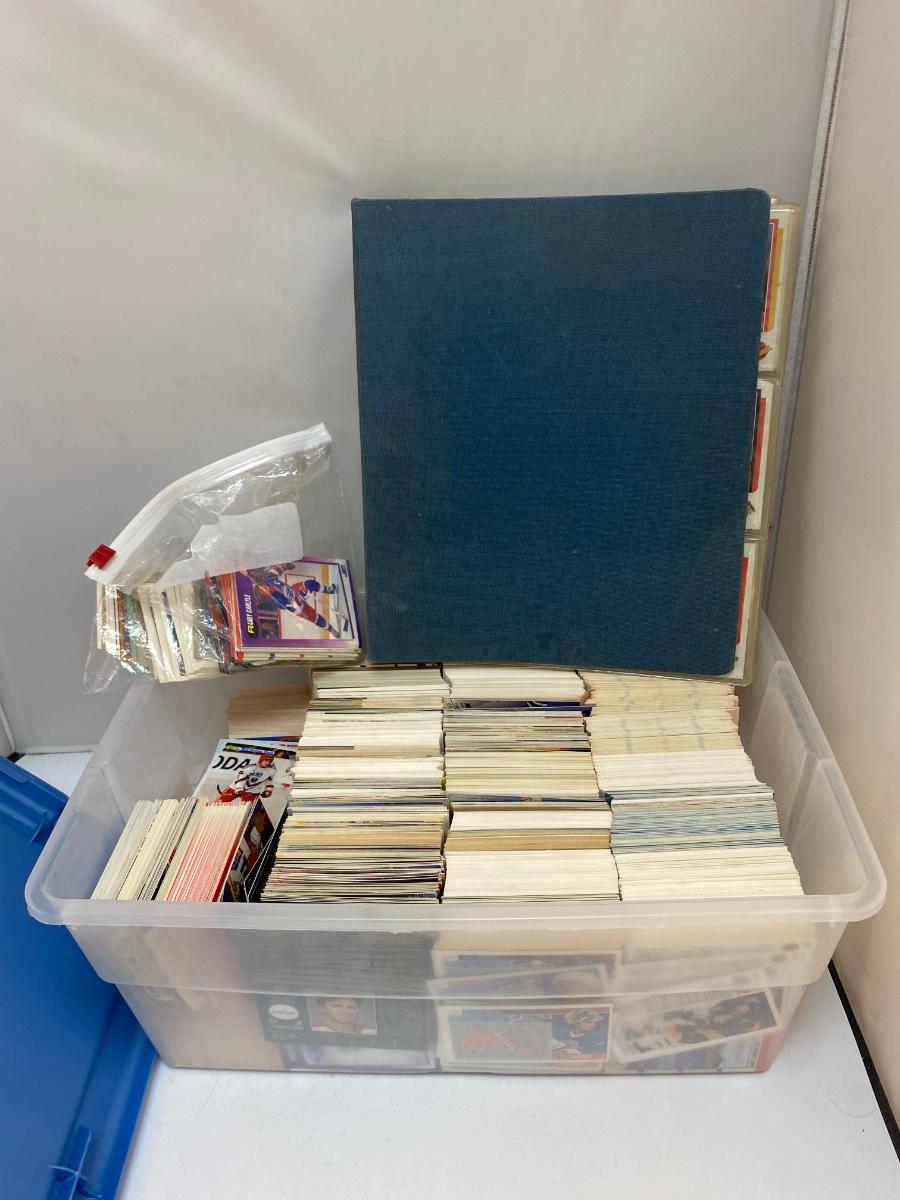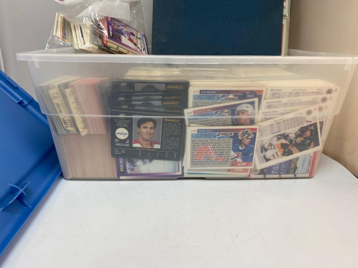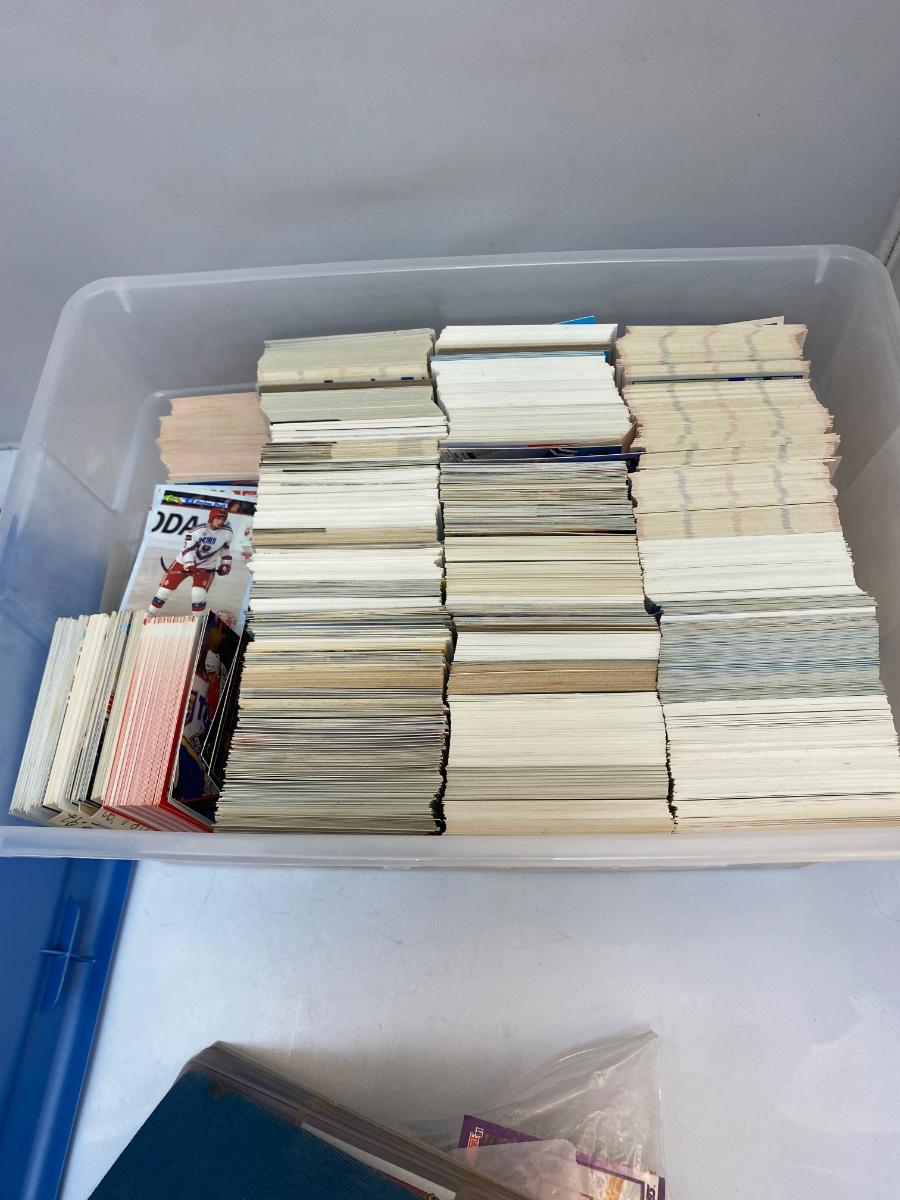 Huge Mixed Lot of NHL Hockey Sports Players Trading Cards. Binder and plastic bin. Bin is about twice the size of a shoe box, see photos. Cards are in good opened condition, various card brands.