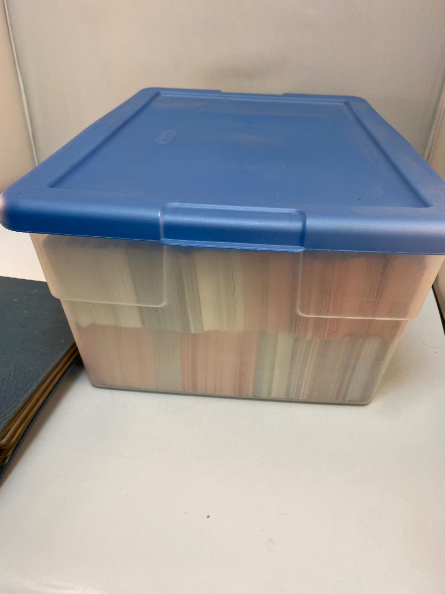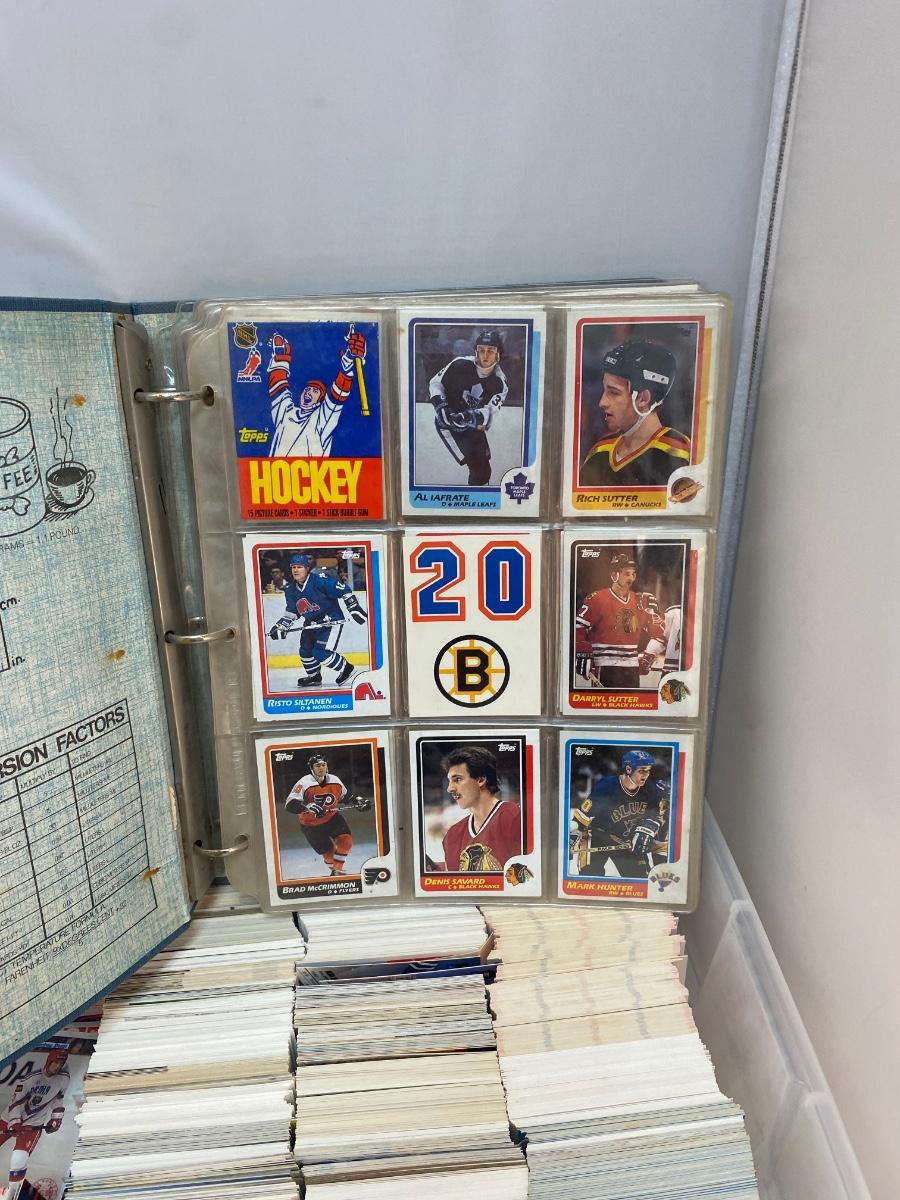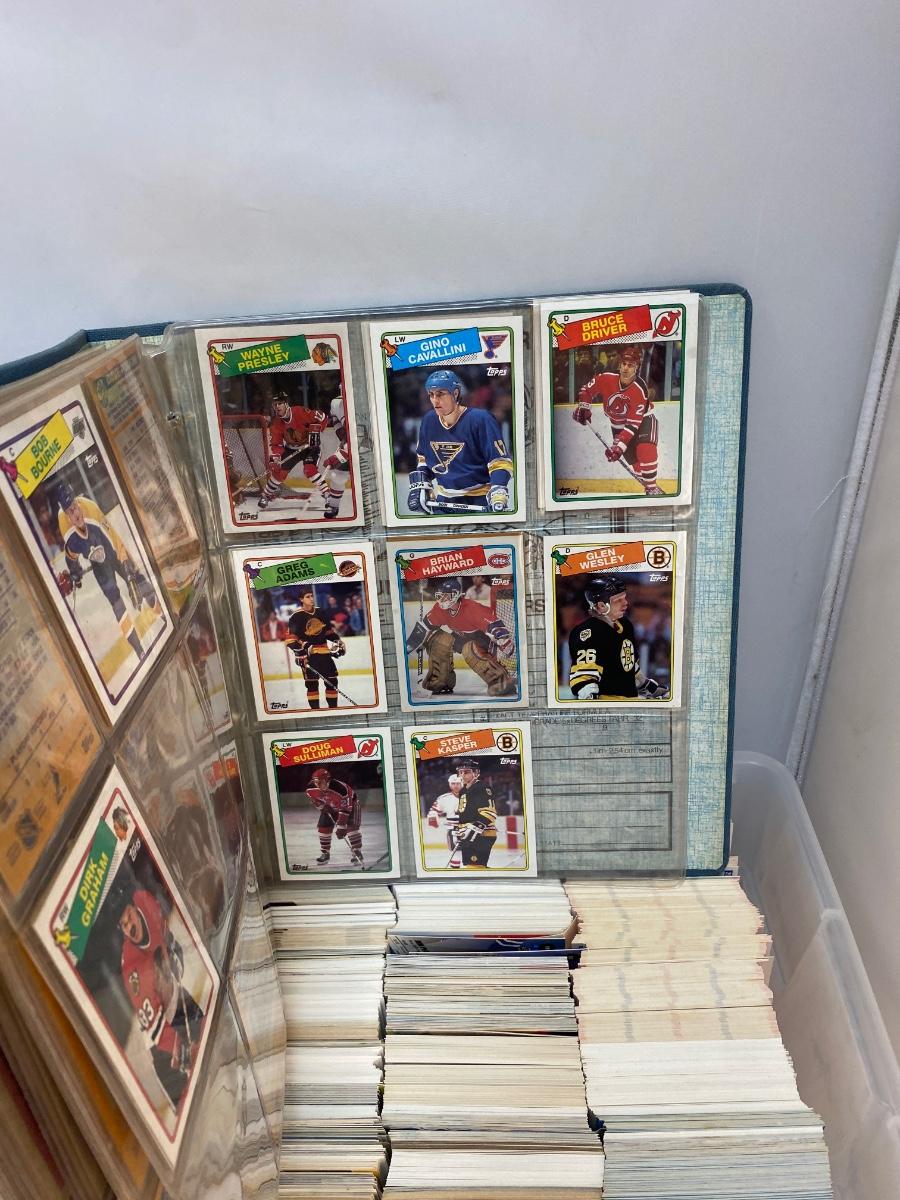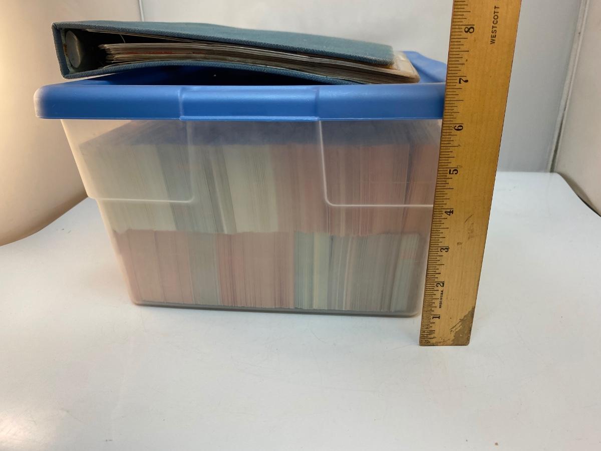 Huge Mixed Lot of NHL Hockey Sports Players Trading Cards. Binder and plastic bin. Bin is about twice the size of a shoe box, see photos. Cards are in good opened condition, various card brands.