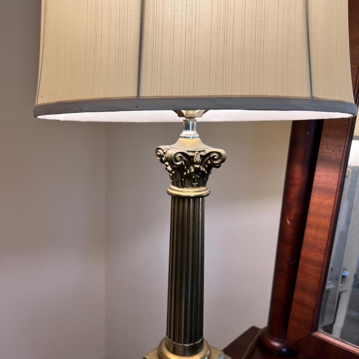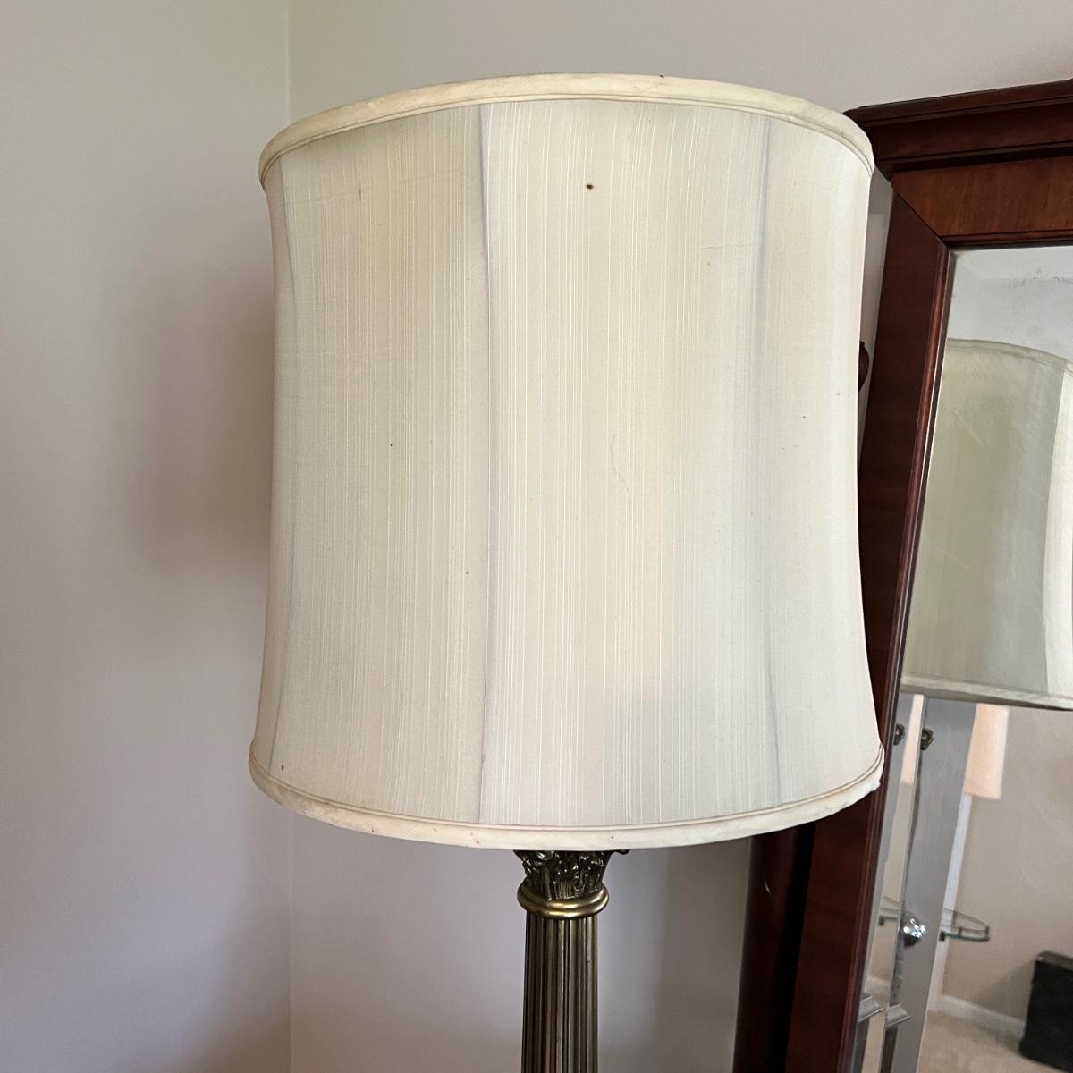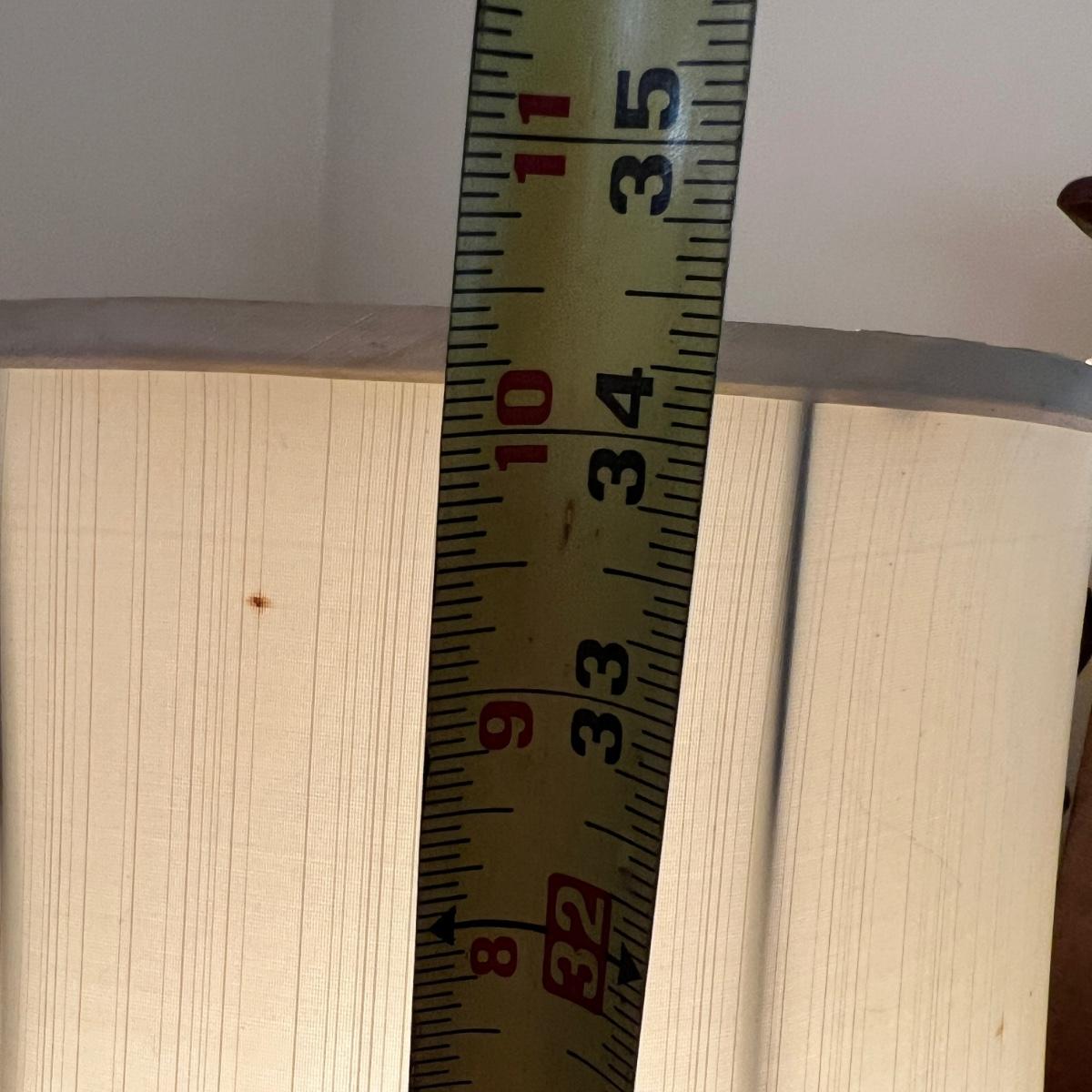 Great details! Neutral style will go well with any decor. Shade has some tears to one of the layers shown in pics.