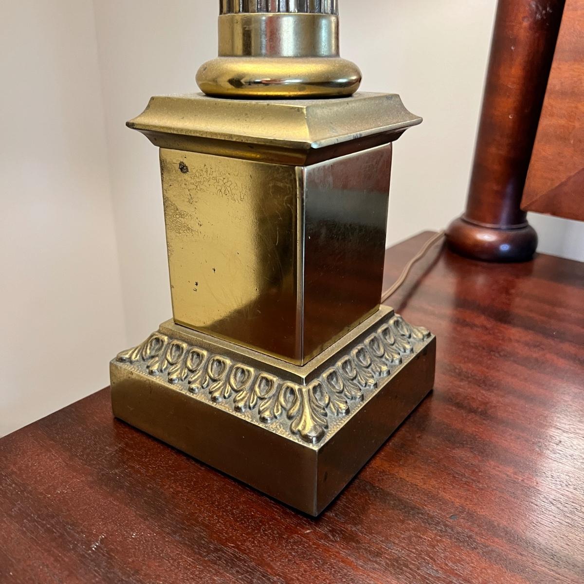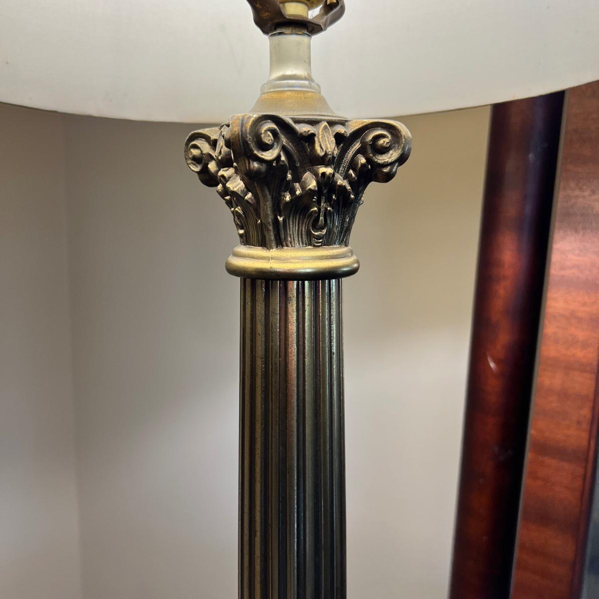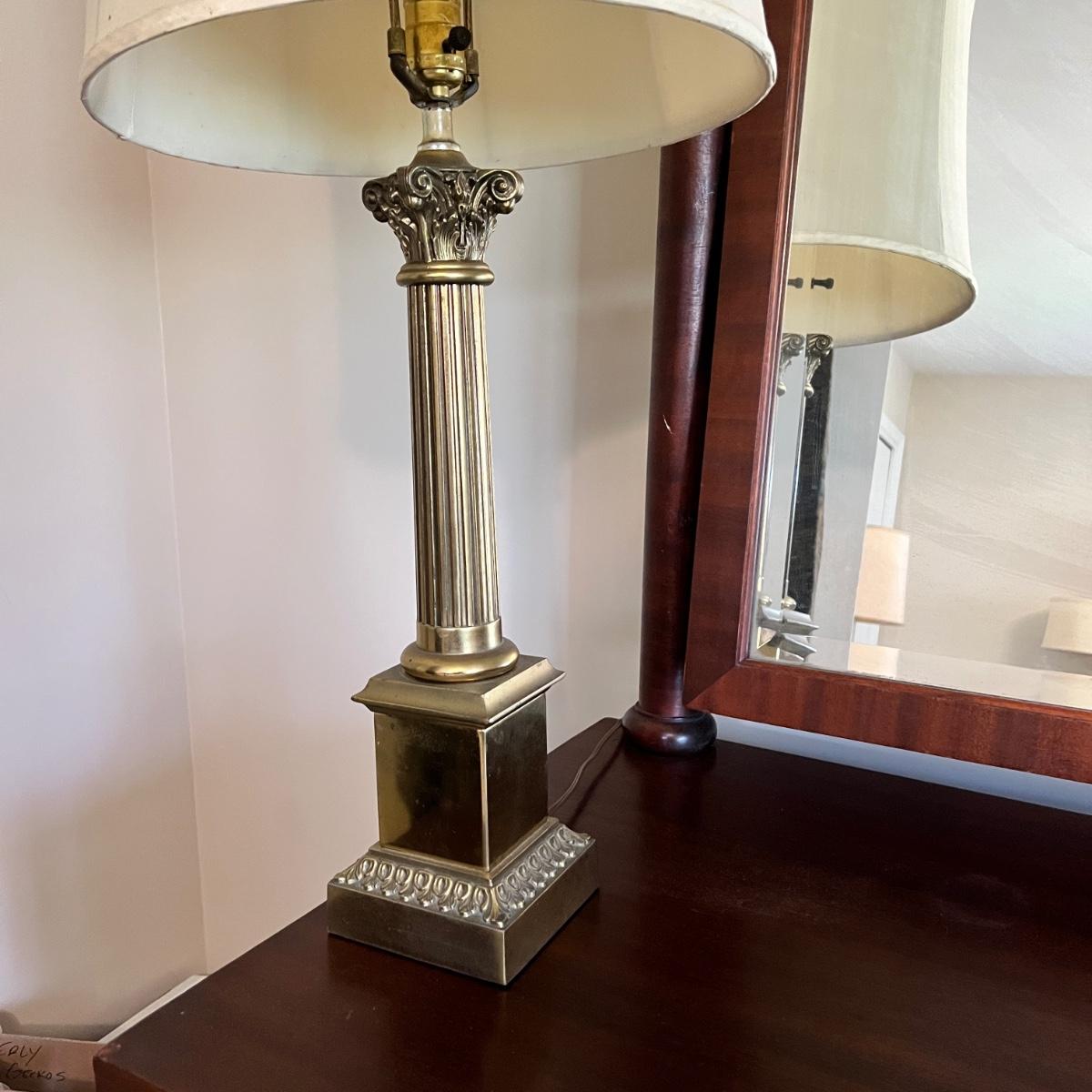 Great details! Neutral style will go well with any decor. Shade has some tears to one of the layers shown in pics.