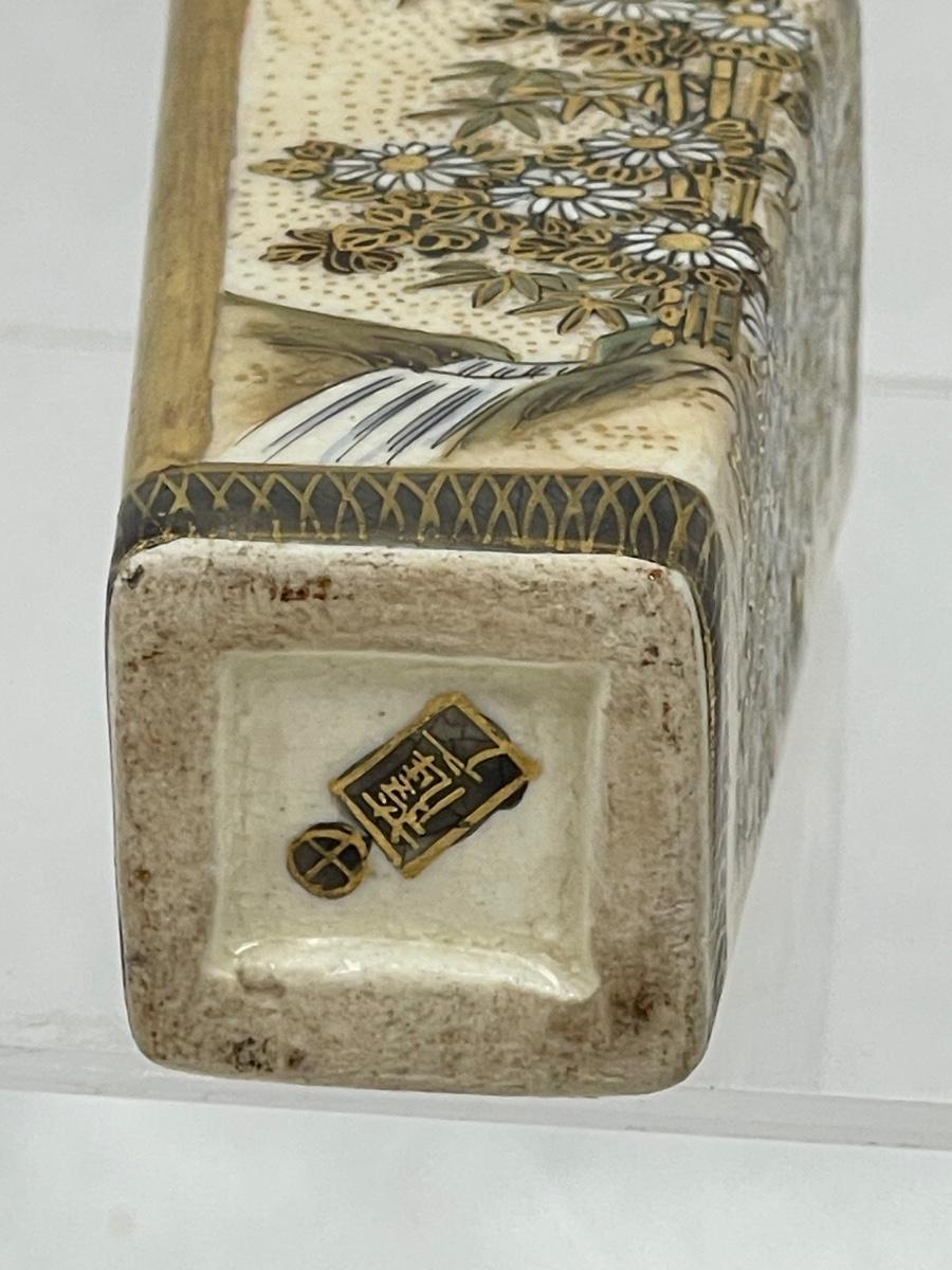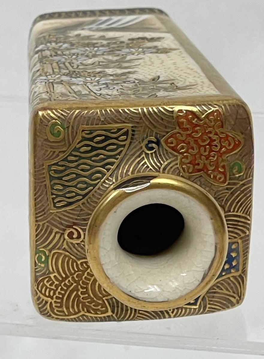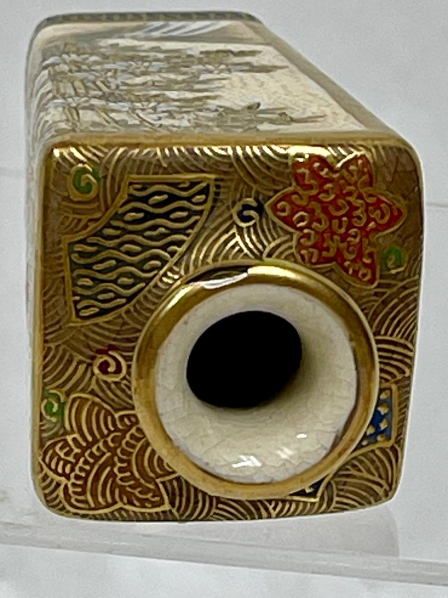 Miniature Vase Satsuma Style cream colored glaze bird & flower scenes with gilt 3.5"