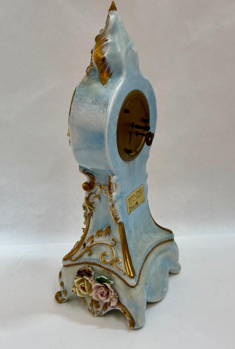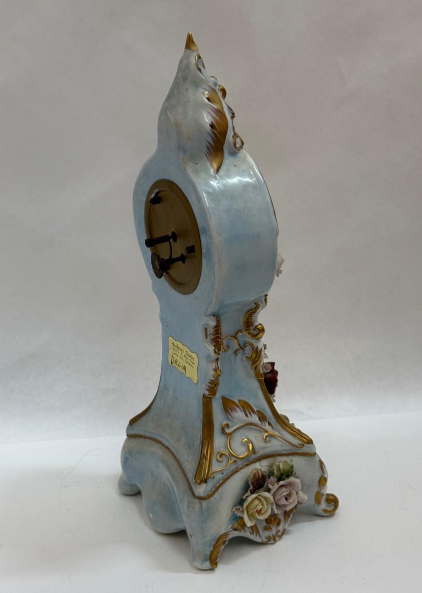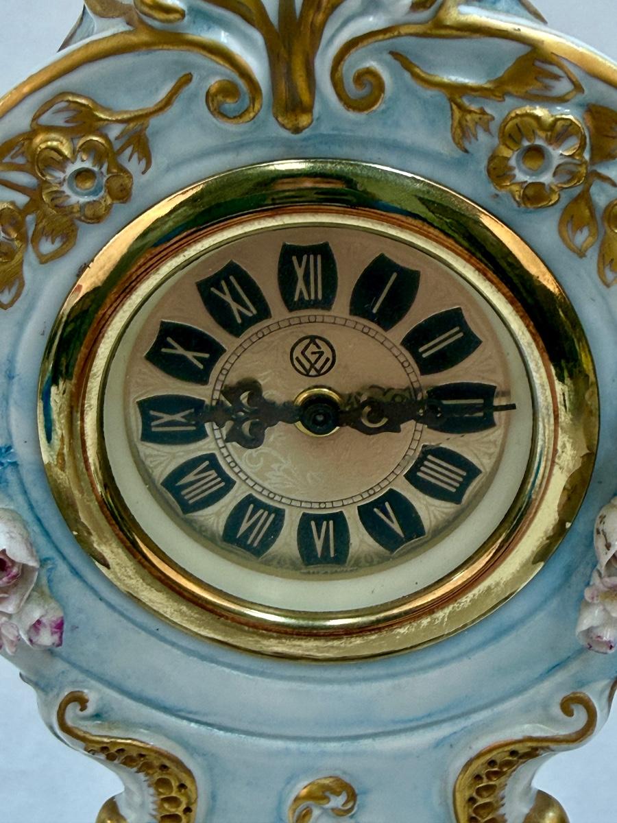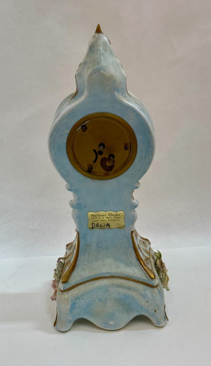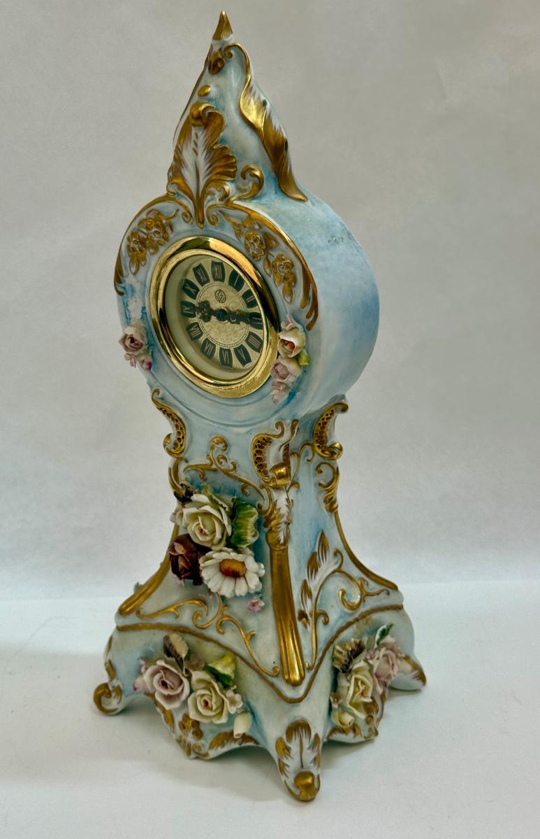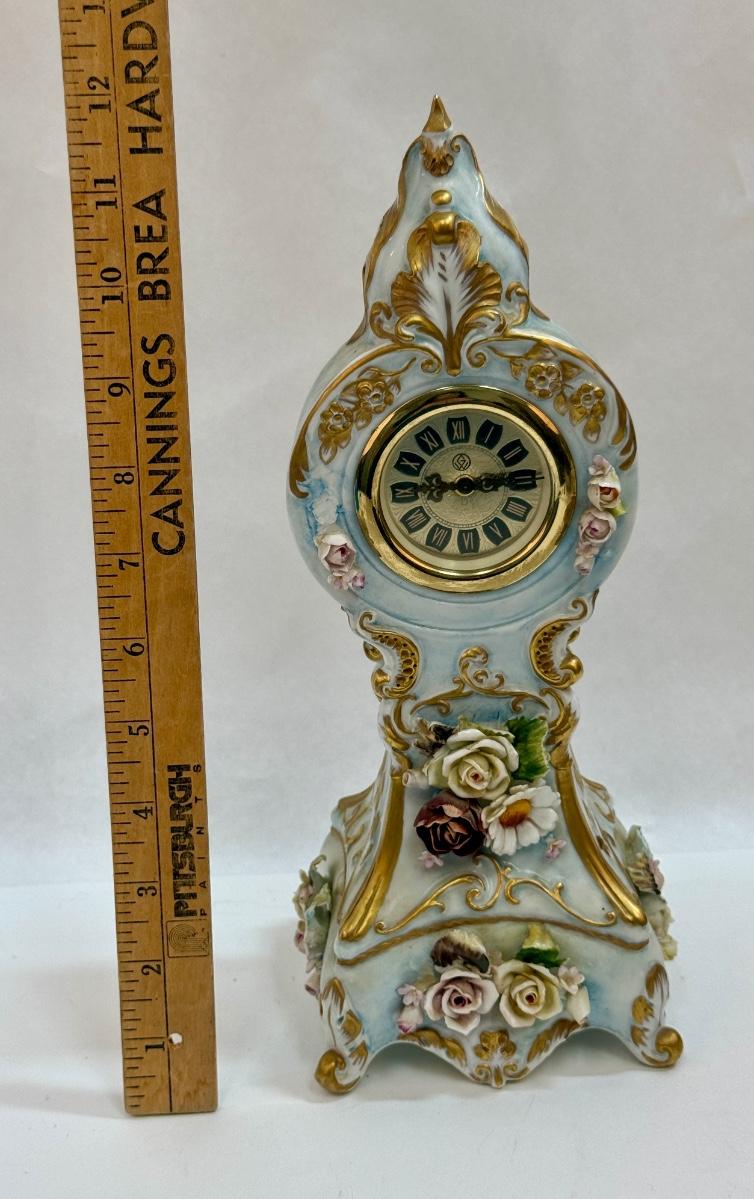 VINTAGE FLORAL PORCELAIN MANTEL CLOCK GOLD TONE BEZEL