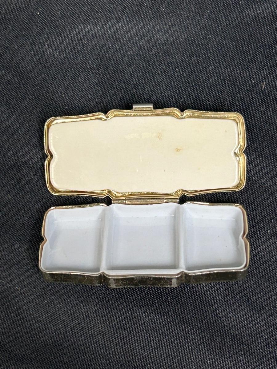 Vintage Divided Plastic Lined Pill Box Case. Made in Japan. Some light wear from use to the outside, inside is clean.