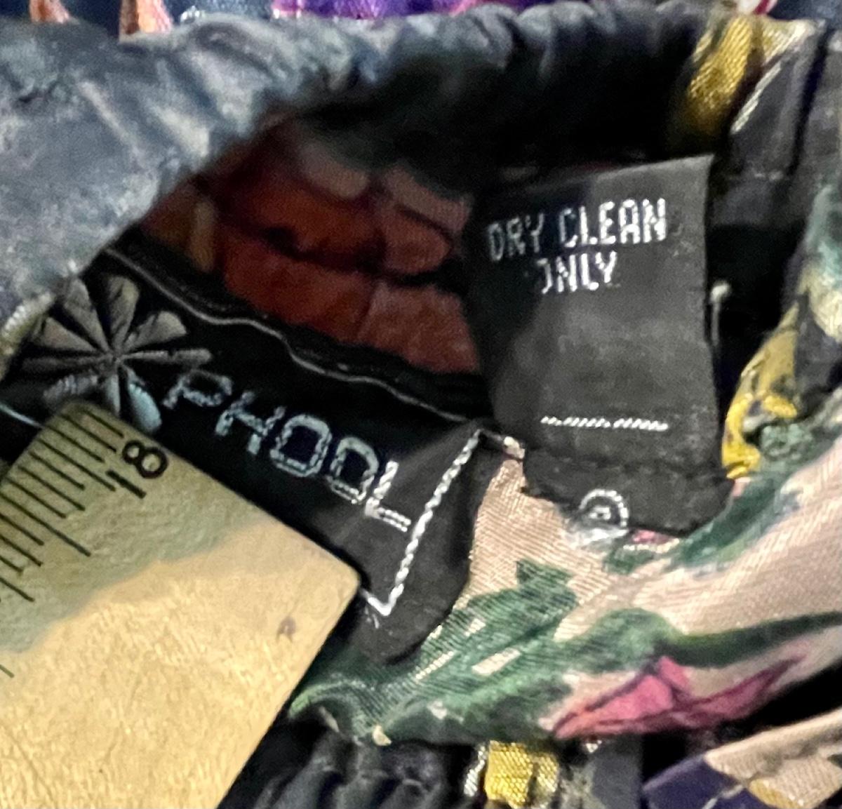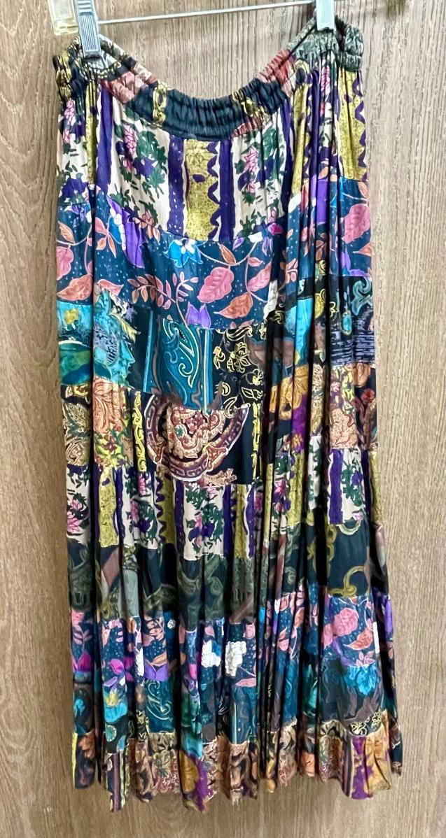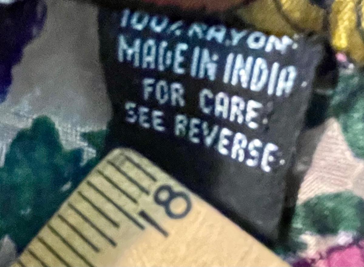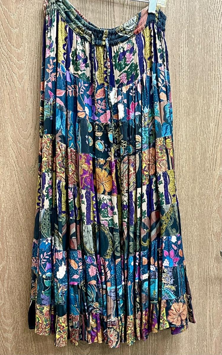 Made by Phool, 100% Rayon. Ties at waist. Approx 36" long. Made in India, Dry-clean only.