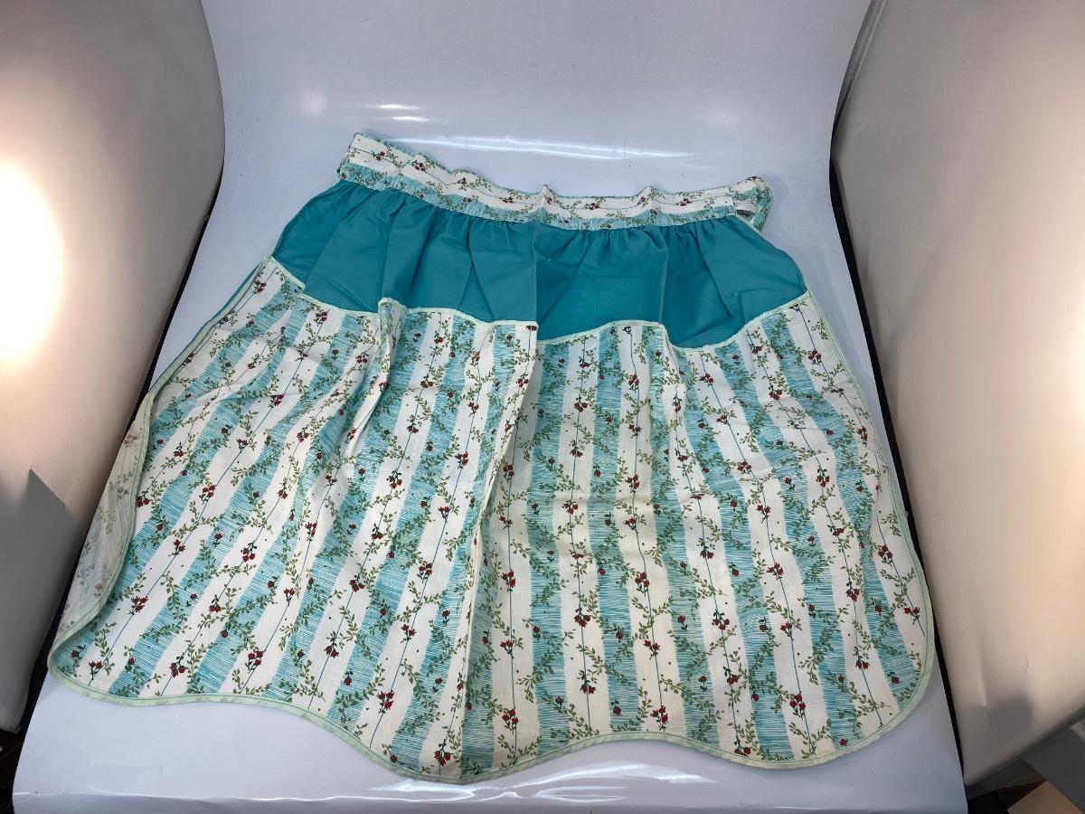Vintage Turquoise Blue & White Small Flower Print Half Apron with Pockets