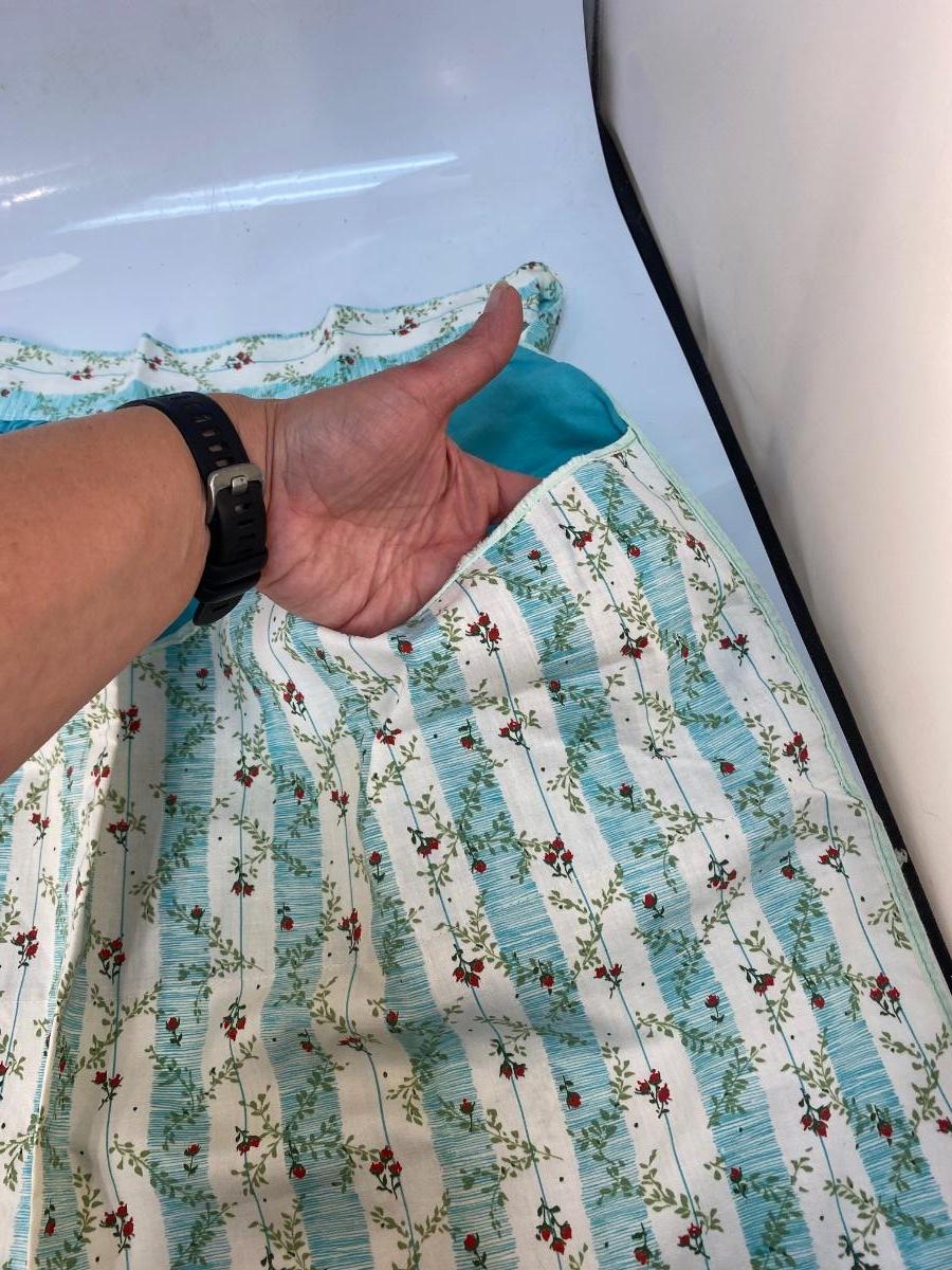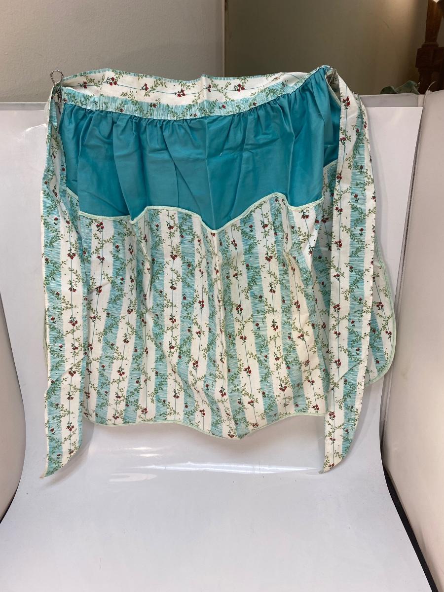 Vintage Turquoise Blue & White Small Flower Print Half Apron with Pockets. In good condition. May have light discolor but no noticeable spots or stains.