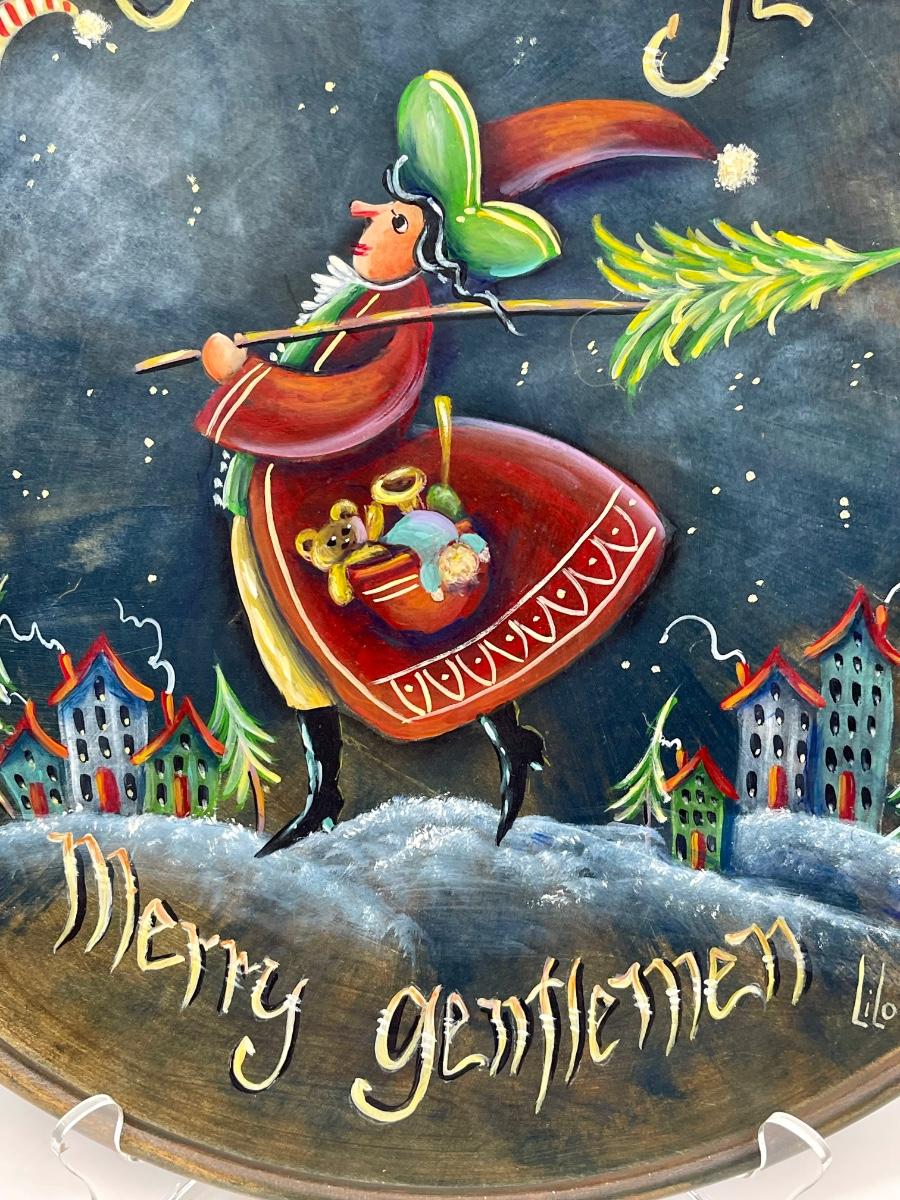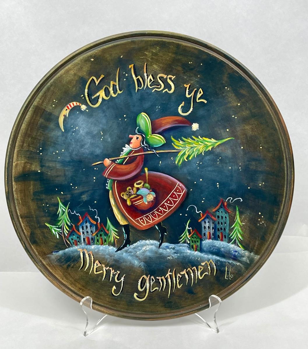 Wooden Plate Wall Hanging Hand Painted Christmas