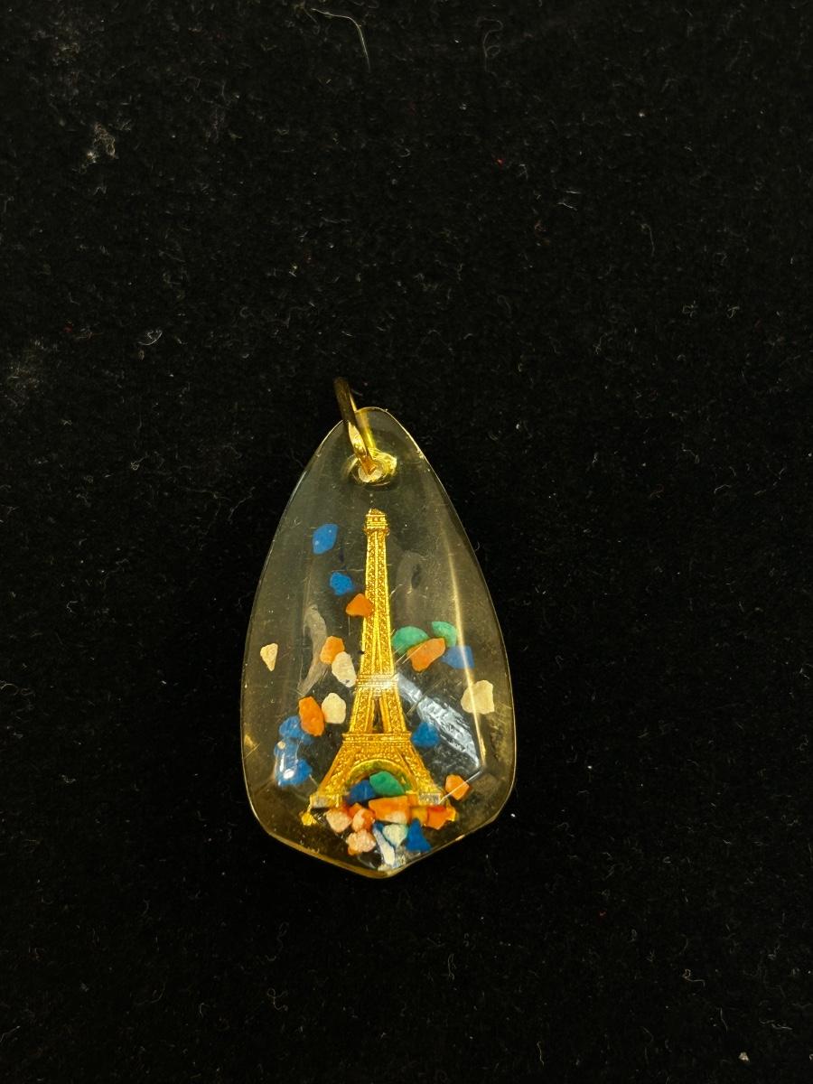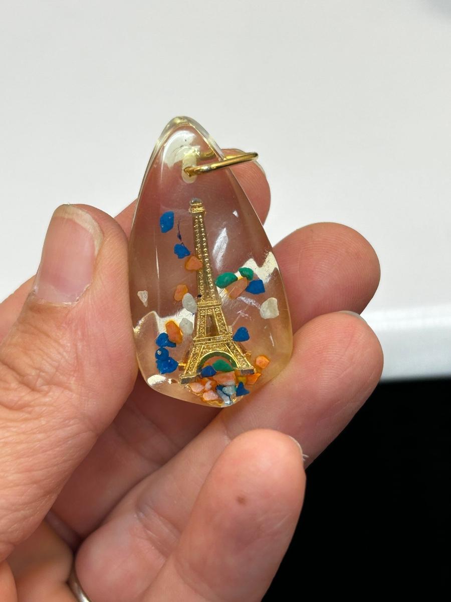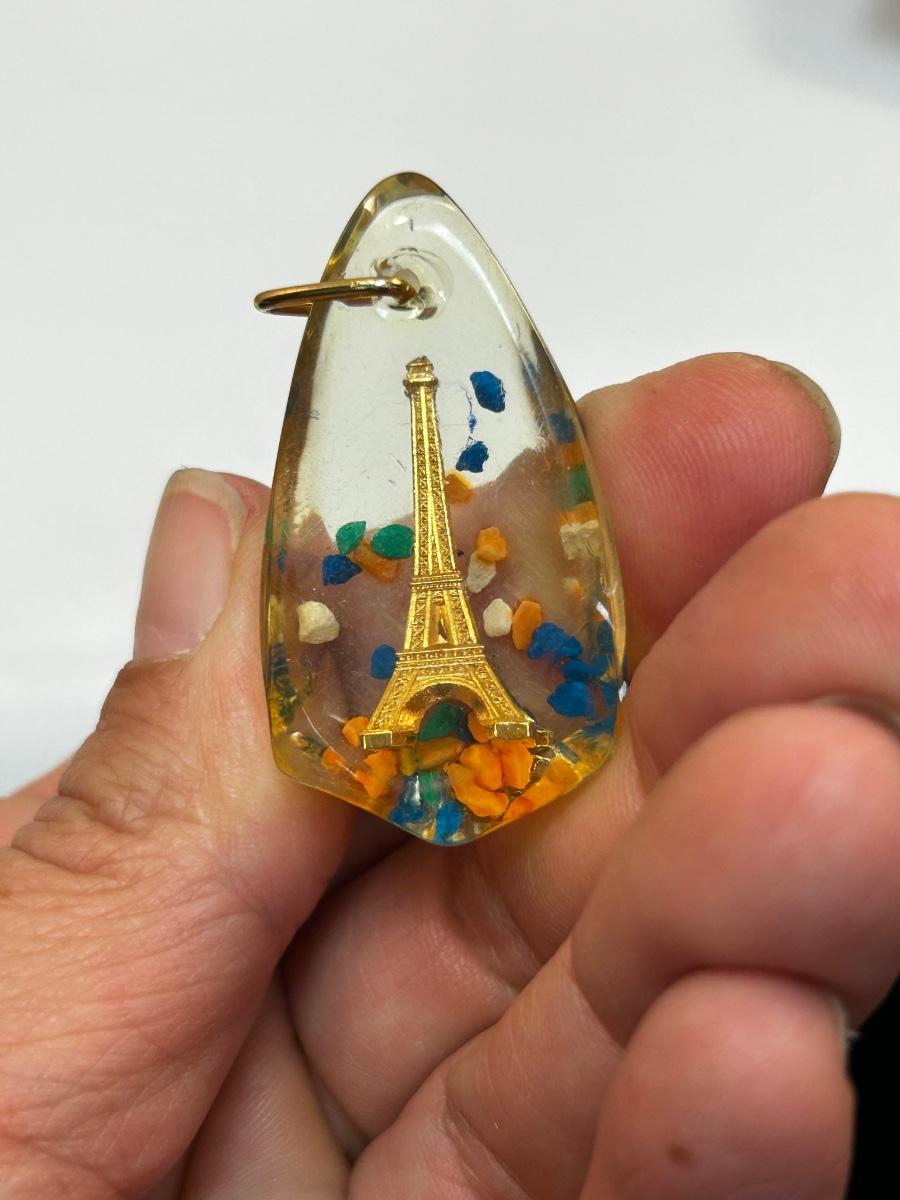 Vacation Souvenir Collectible Eiffel Tower in Speckled Lucite Resin Pendant Charm