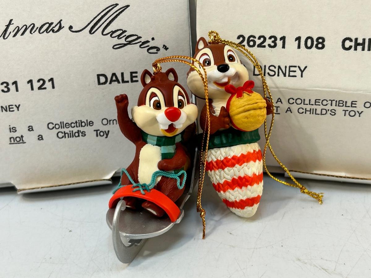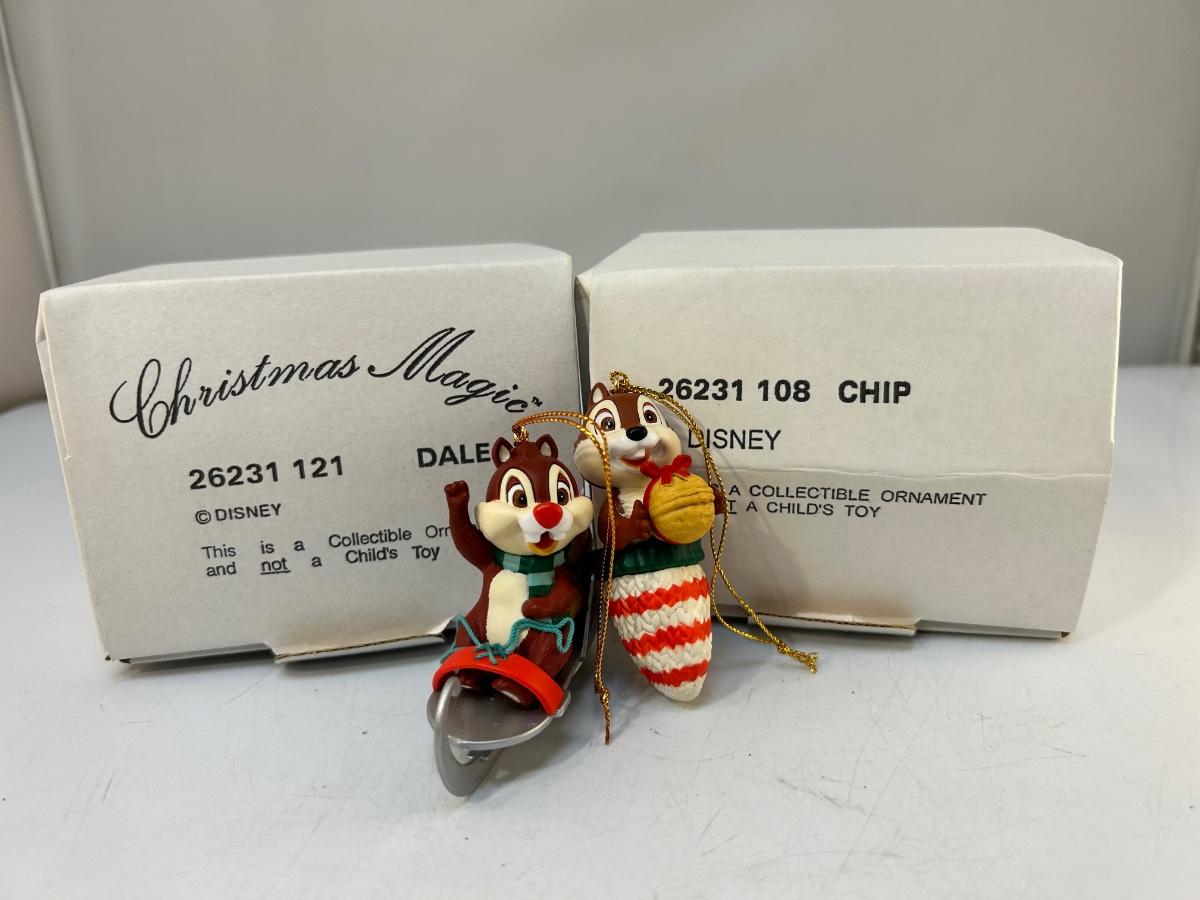Walt Disney Christmas Magic Chip and Dale Chipmunk Holiday Tree Ornament Figurines. In good condition. Come with their original boxes. Made of hard plastic, about 3" size.