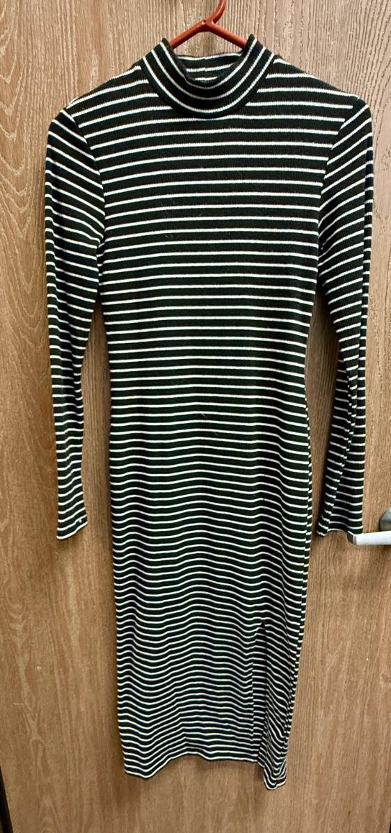 Vintage Long Sleeve Knit Dress Black & White Horizontal Stripe Size Small Wild Fable