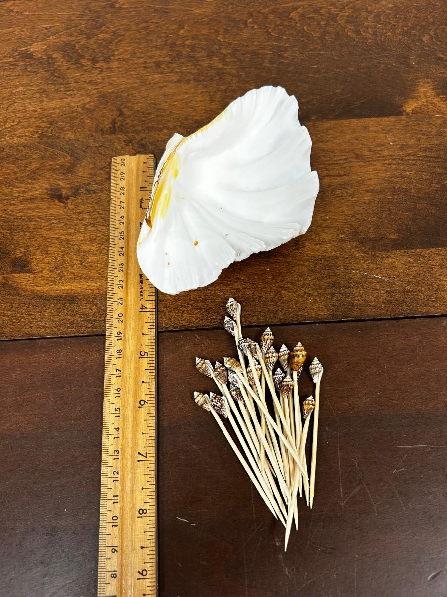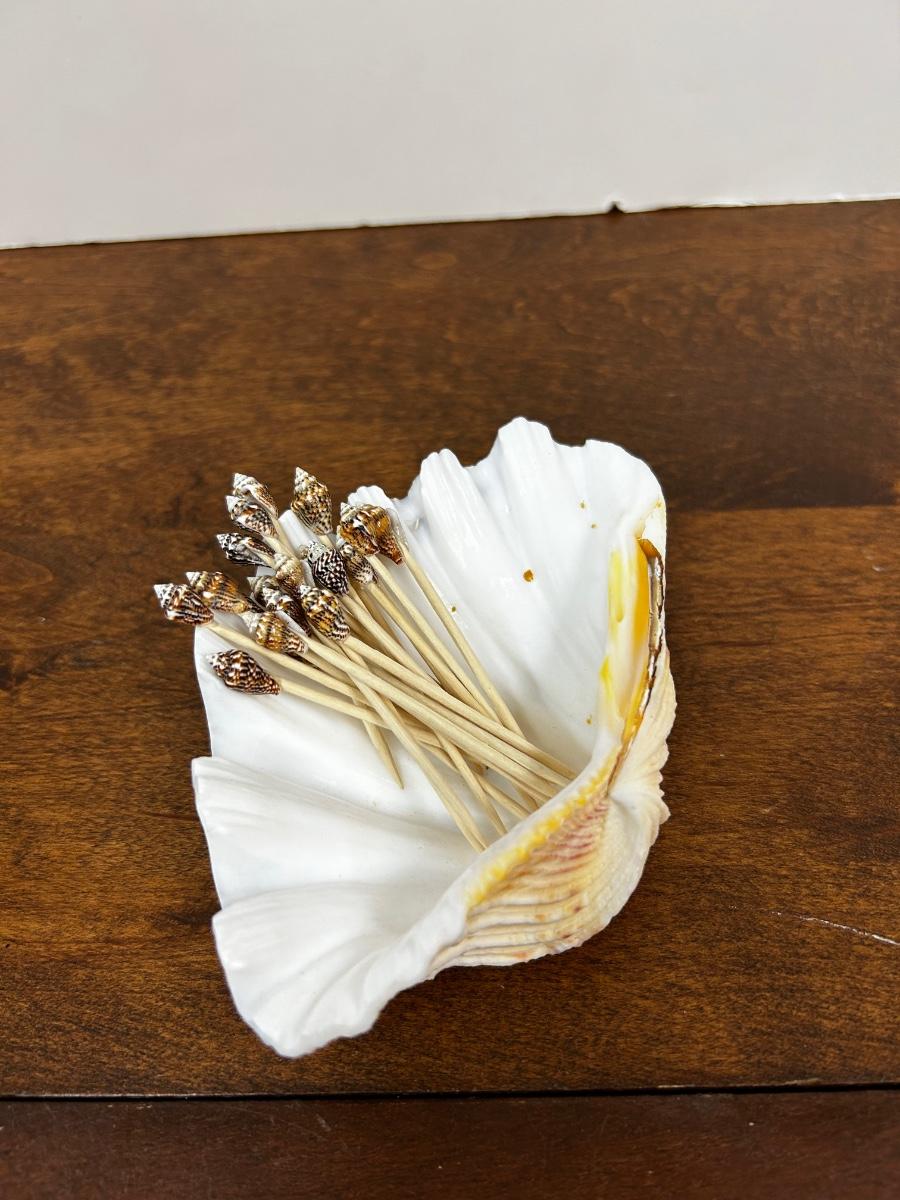 Coastal Beachy Seashell Decor with Shell Adorn Toothpicks. In good condition.
