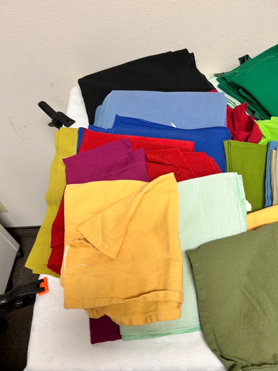 Huge Mixed Lot of Colorful Linen Cloth Dinner Napkins. May have light spots or discolor but no major damage was noticed.