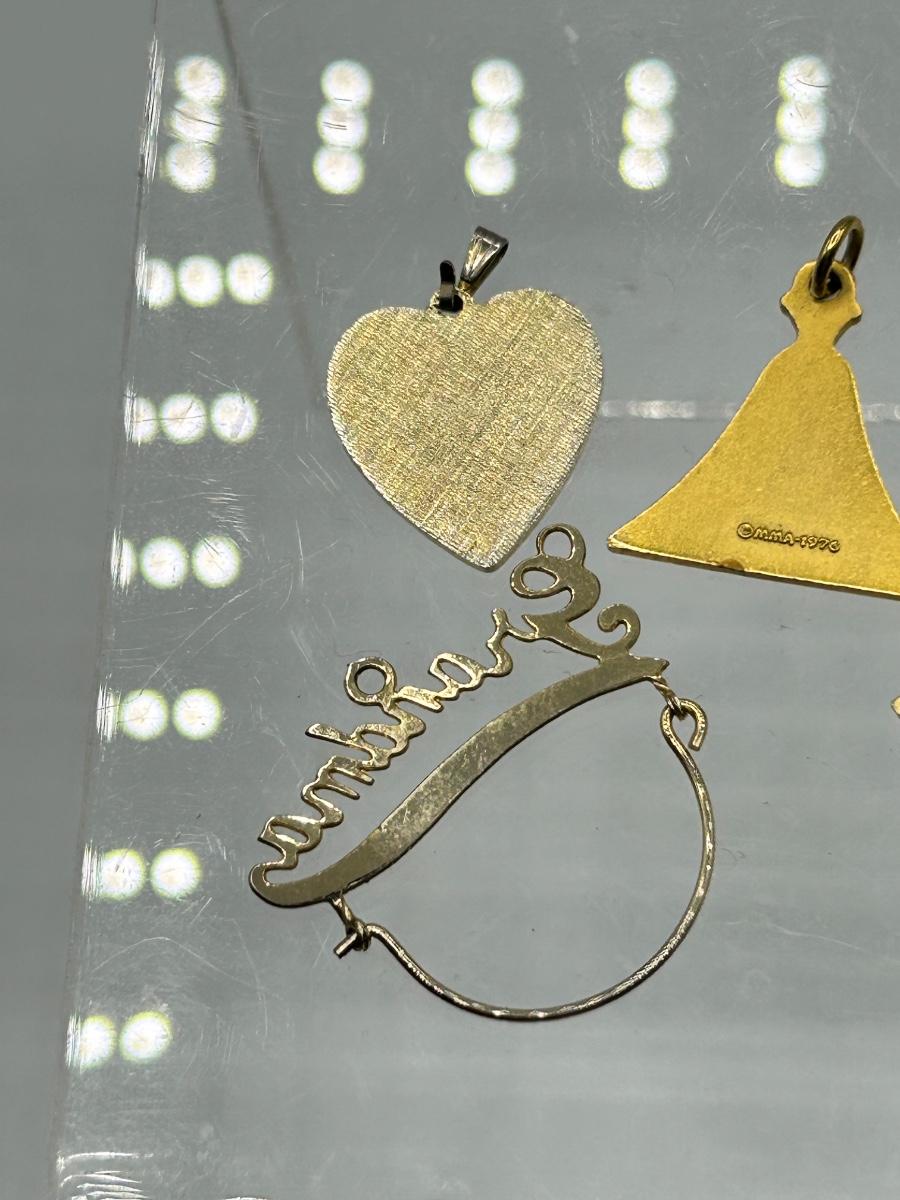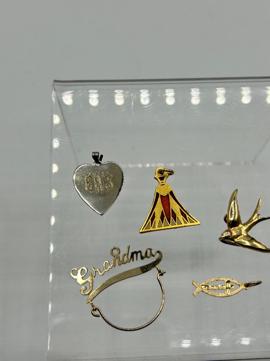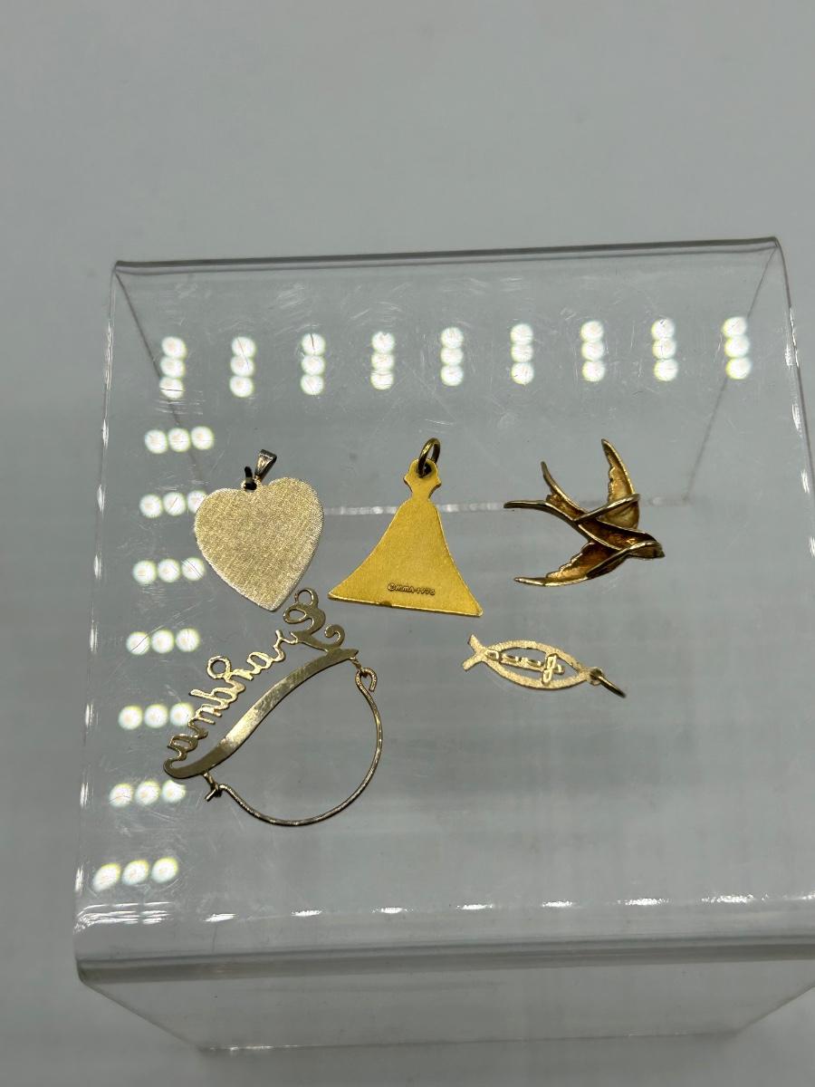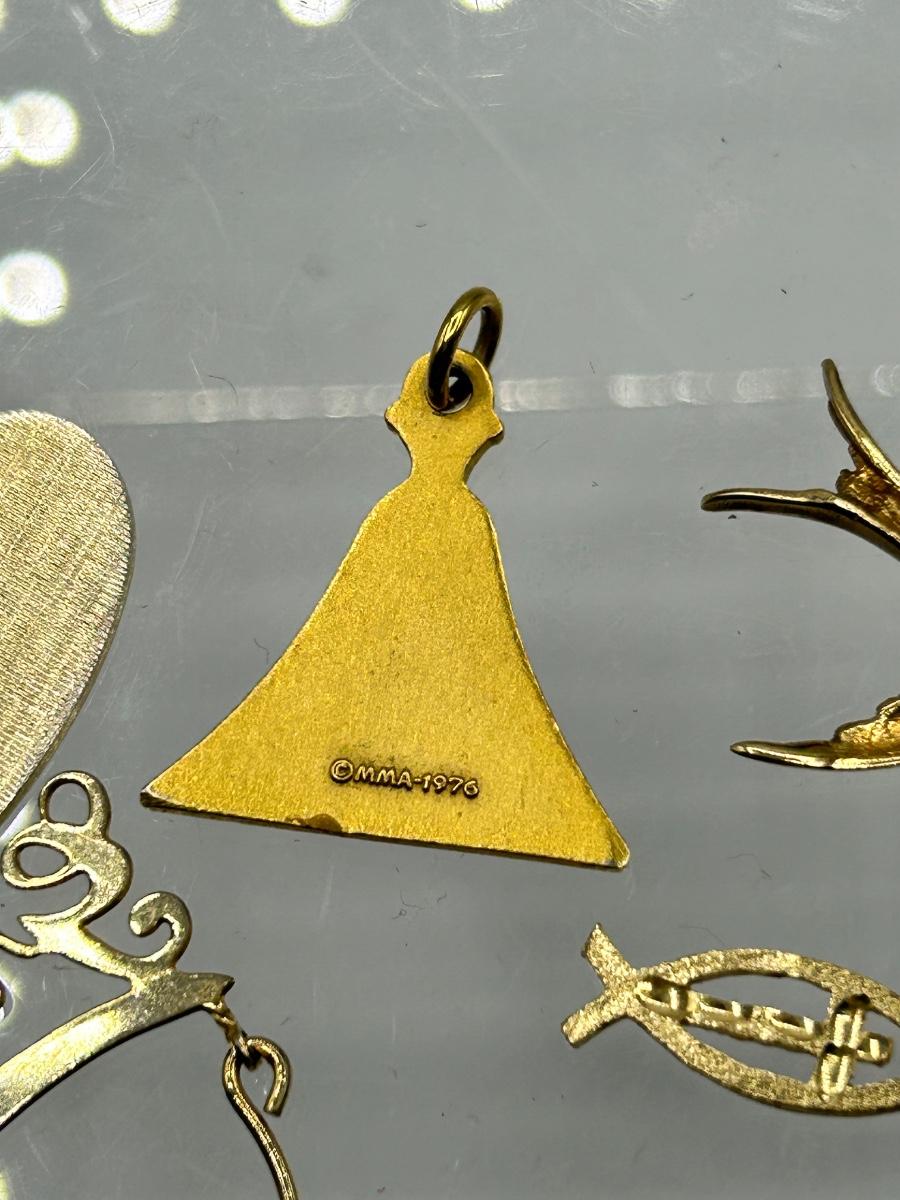 Mixed Lot of Gold Tone Pendant Necklace Charms Grandma Jesus Fish Swallow. No gold marks found. In good vintage condition.