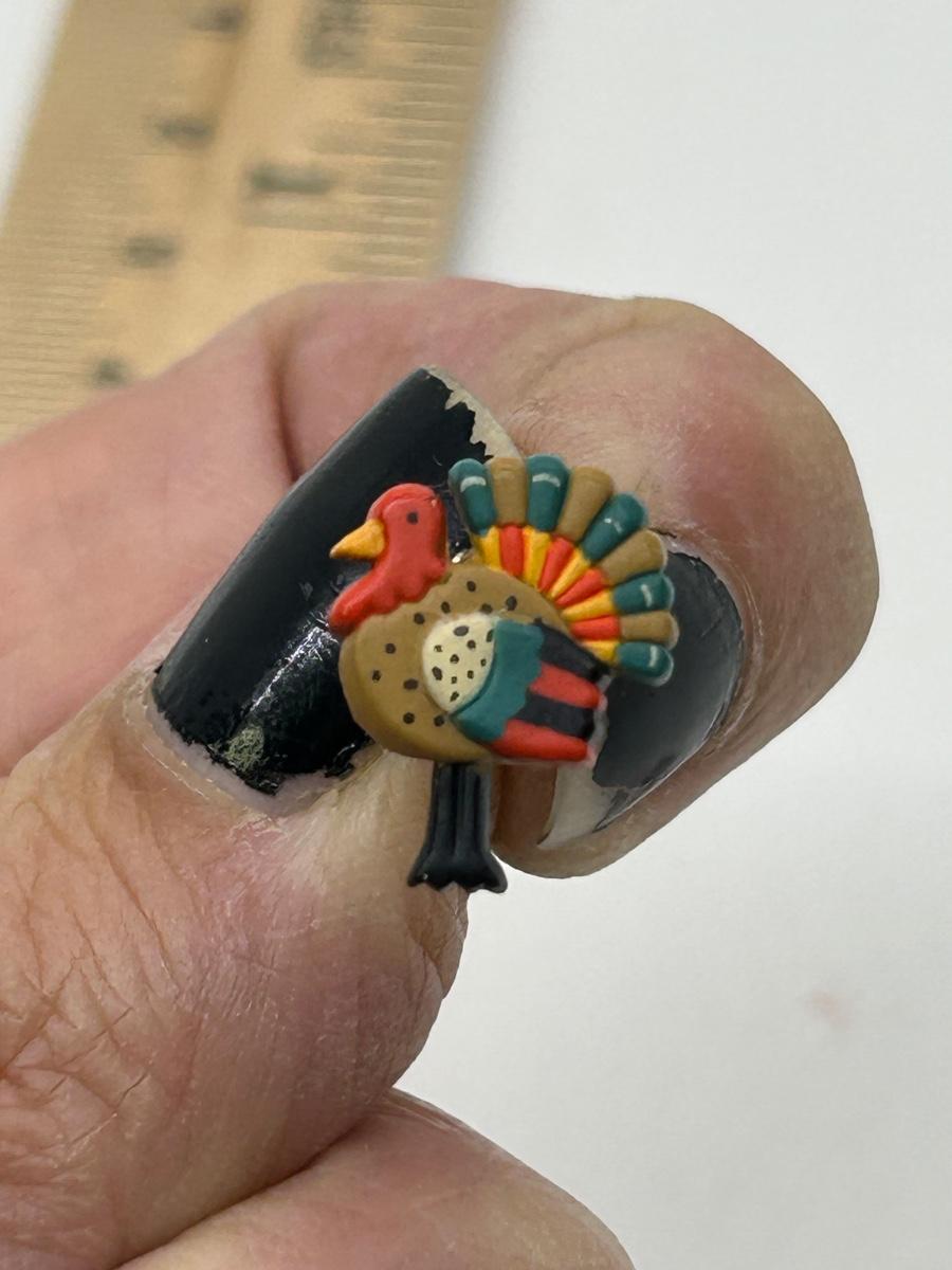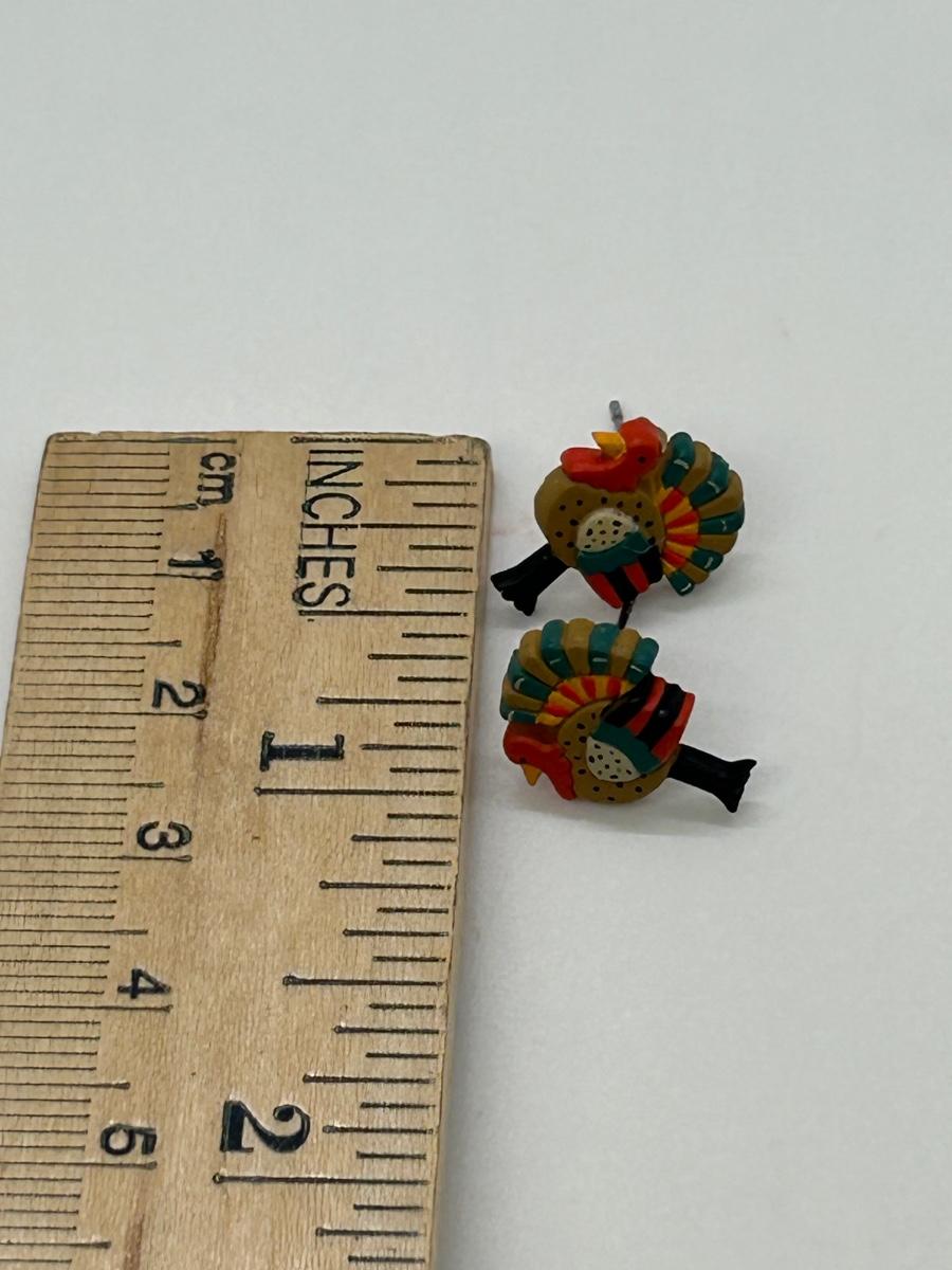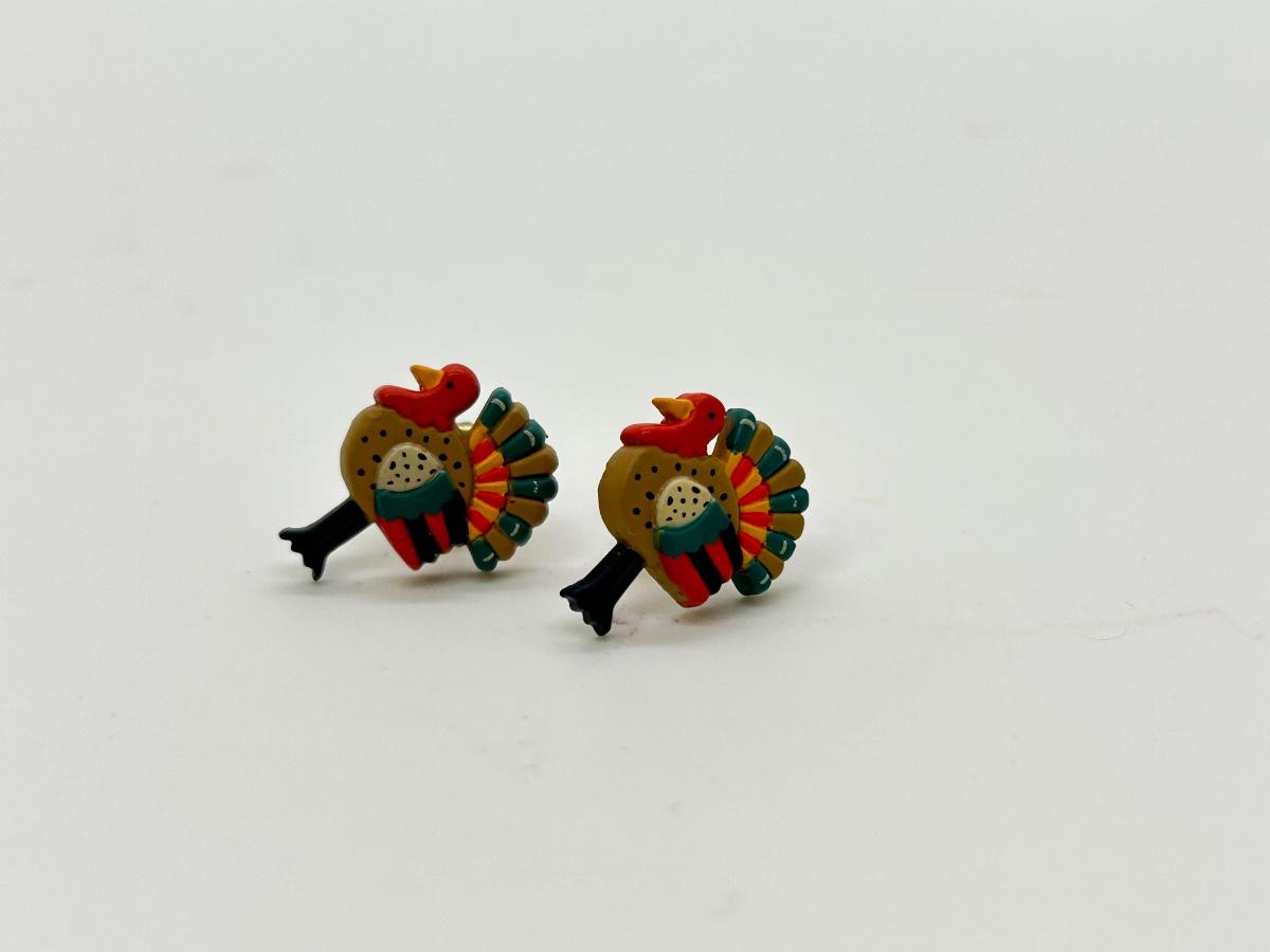 Pair of Thanksgiving Turkey Stud Earrings for Pierced Ears. Hard plastic material.