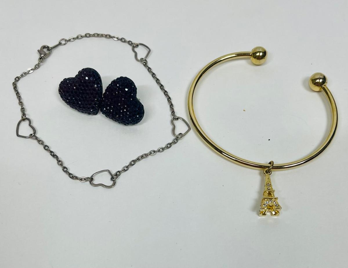 Fashion Jewelry Lot - Love & Paris - Heart Earrings, Heart Bracelet and Eiffel Tower Bracelet