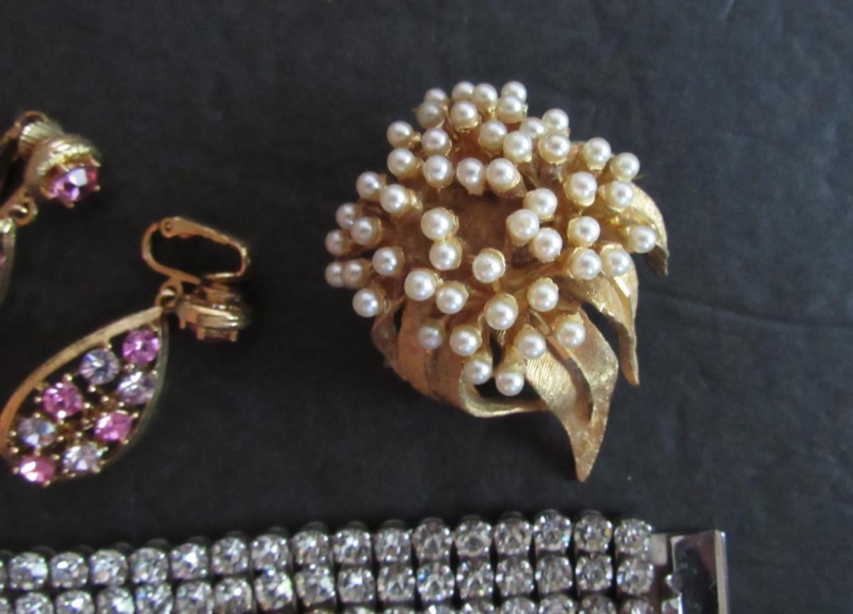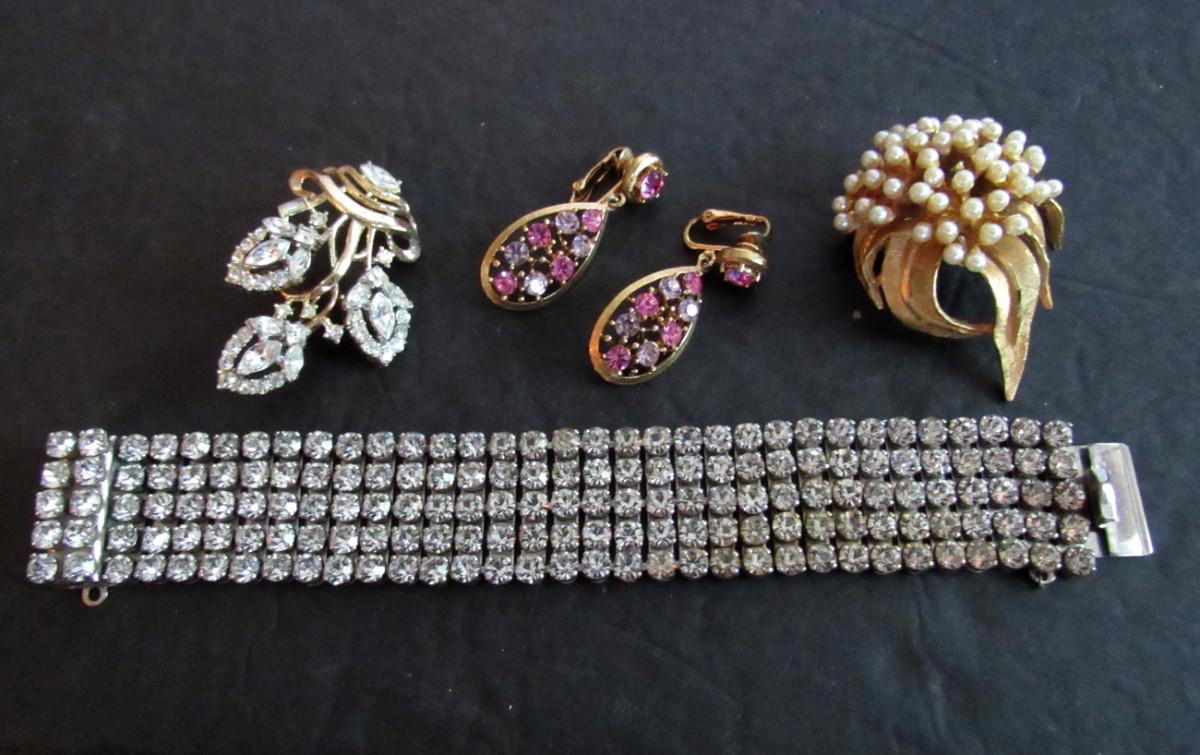 Vintage Rhinestone Jewelry Lot, Brooches, Earrings, Bracelet