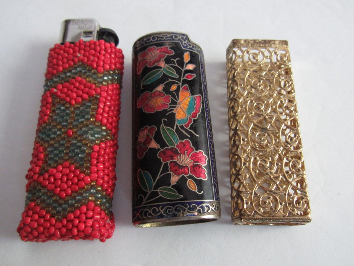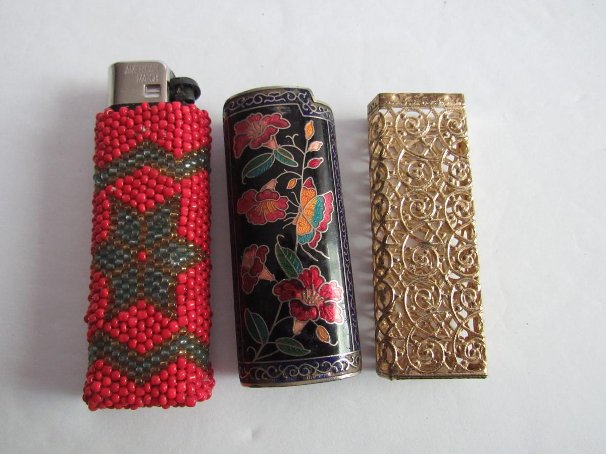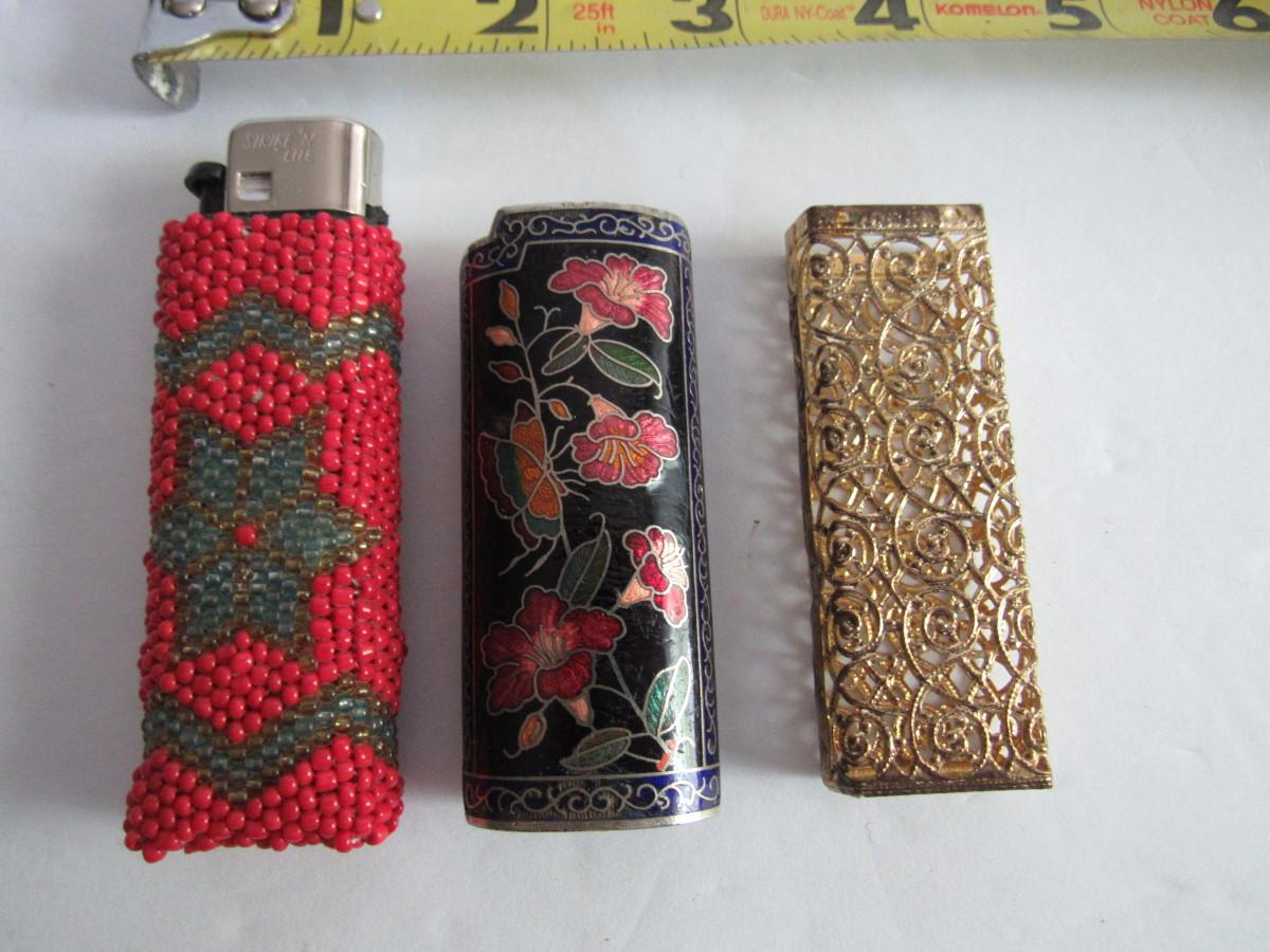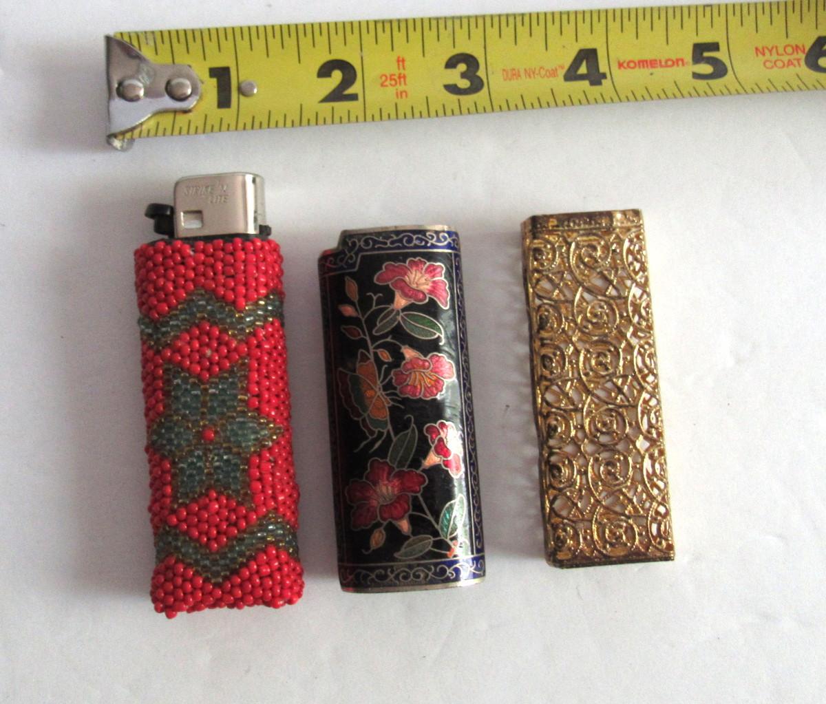 Older 1970s Beaded, Cloisonne and Metal Lighter Cases