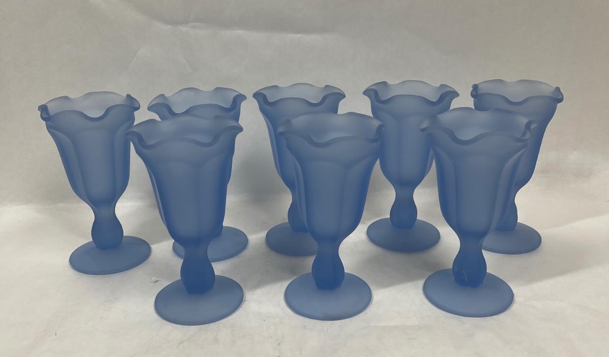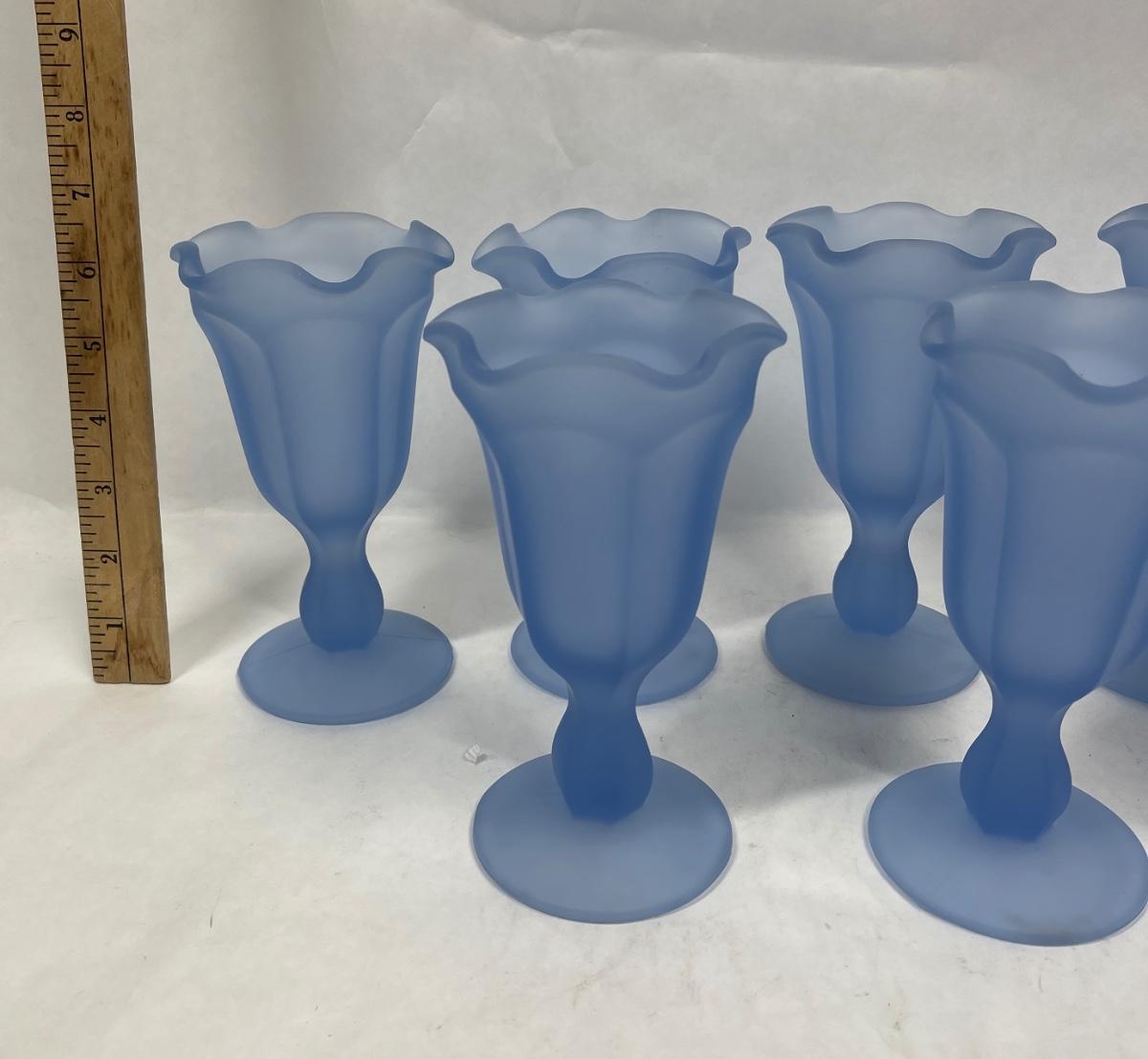 Blue Satin Parfait Dessert Glass Set Indiana Glass Ice Cream Sundae, 9 ct.