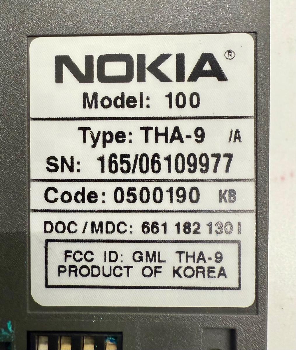 Nokia Vintage 1990’s Model 100 Cell Phone THA-9A