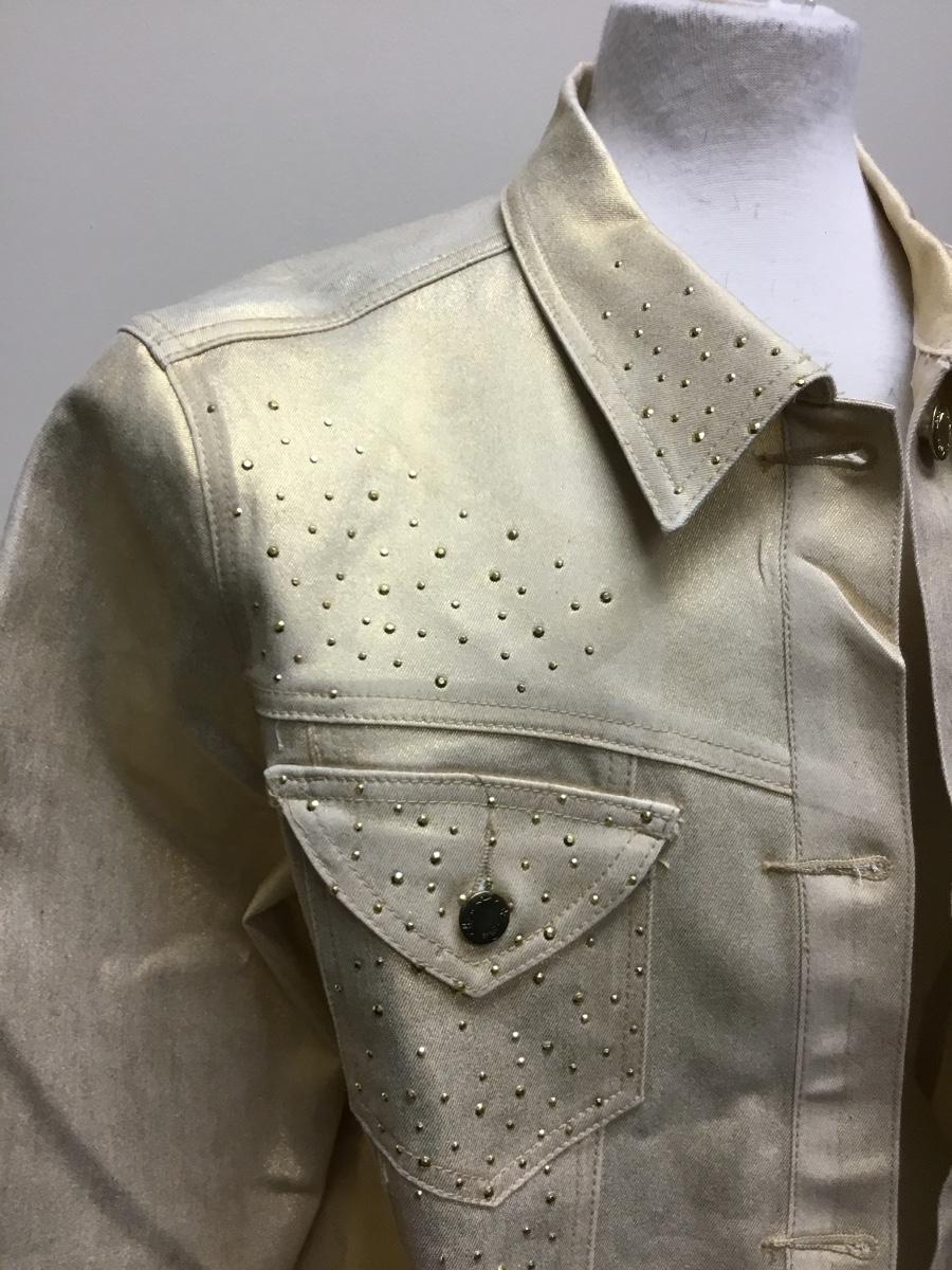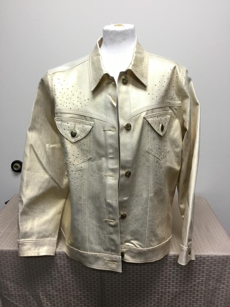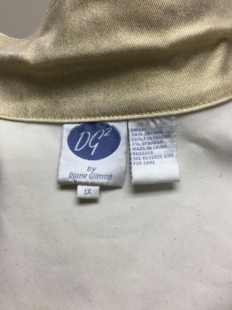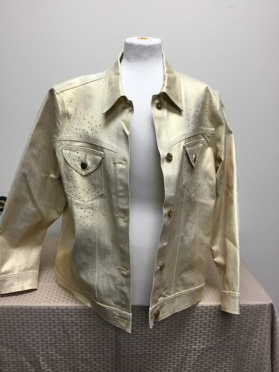 Gold Stretch Denim Jacket DG2 Diane Gilman 1X. Has gold rhinestone details. Looks new, good condition.