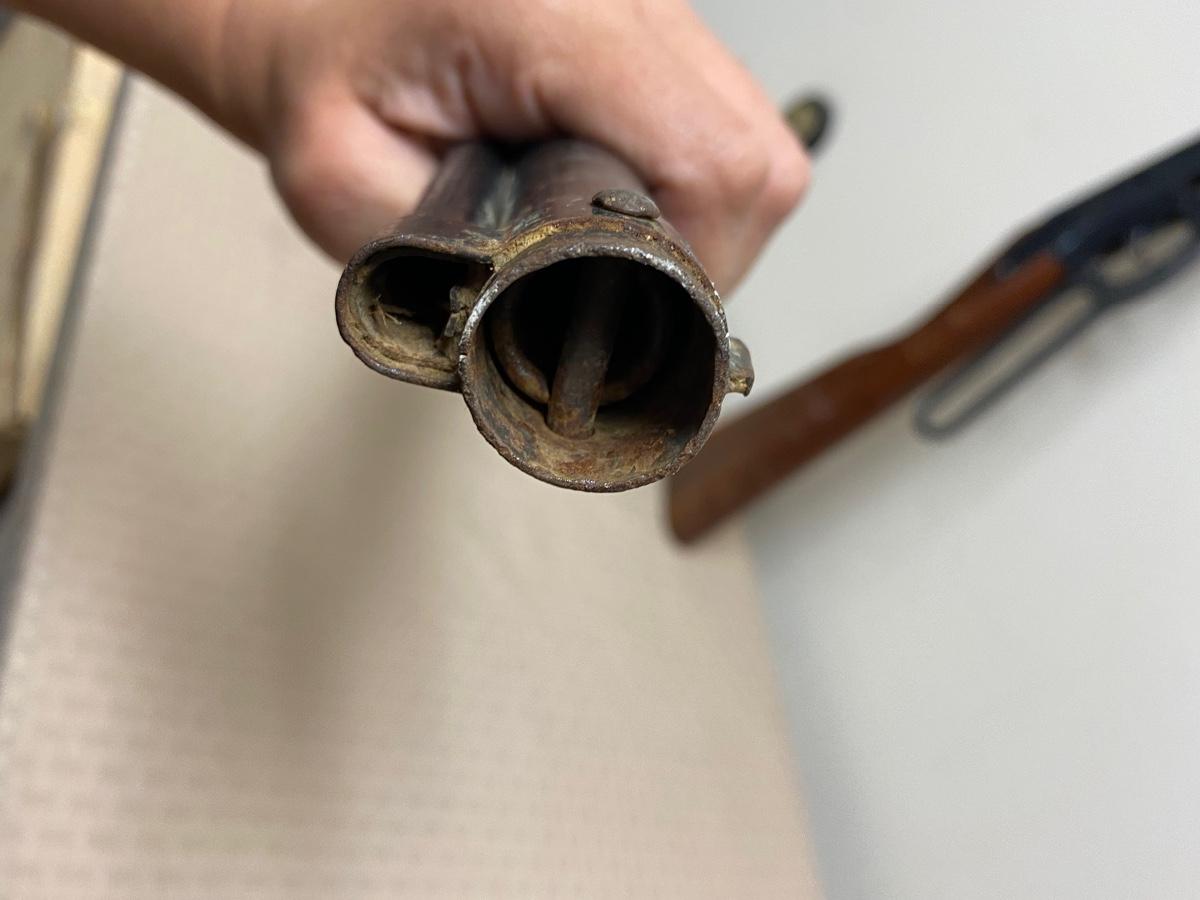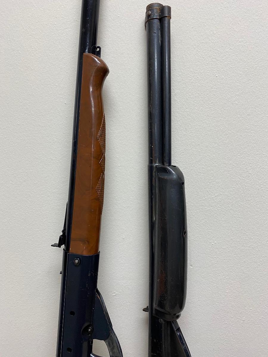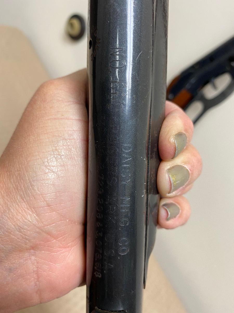 Vintage Daisy BB Pellet Gun Lever Action Air Rifles. The shorter one seems to be older, has more power it seems when shot. Both seem to be working fine, did not have actual ammo to fire but lever action works nicely on both.