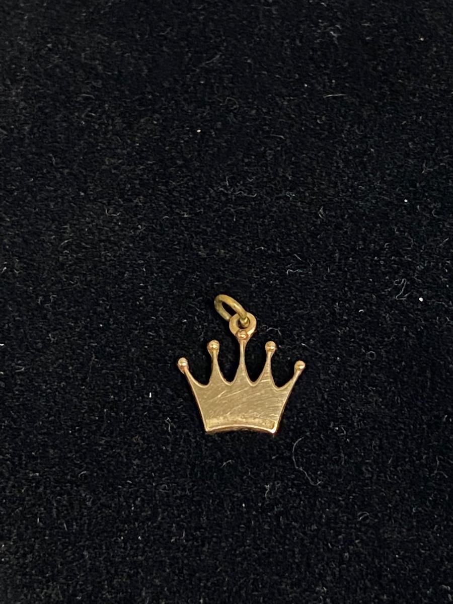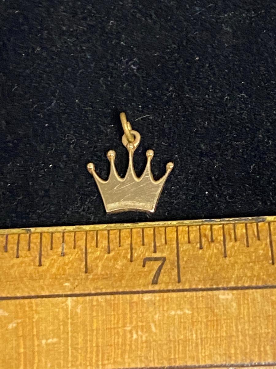 Small 10k Yellow Gold Crown Pendant Charm Etched 1980