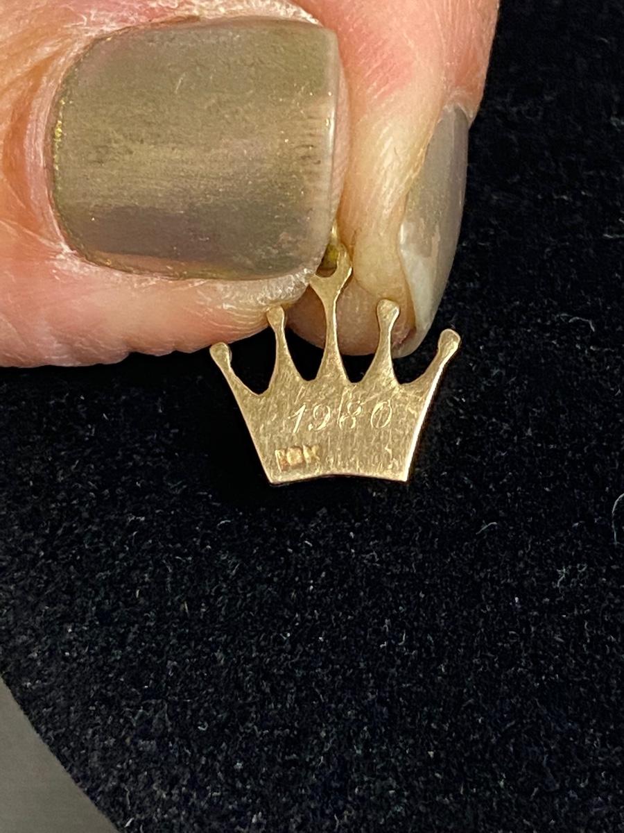 Small 10k yellow gold crown charm. Stamped 10k on lower corner with 1980 etched on the same side. About 1/2" size.
