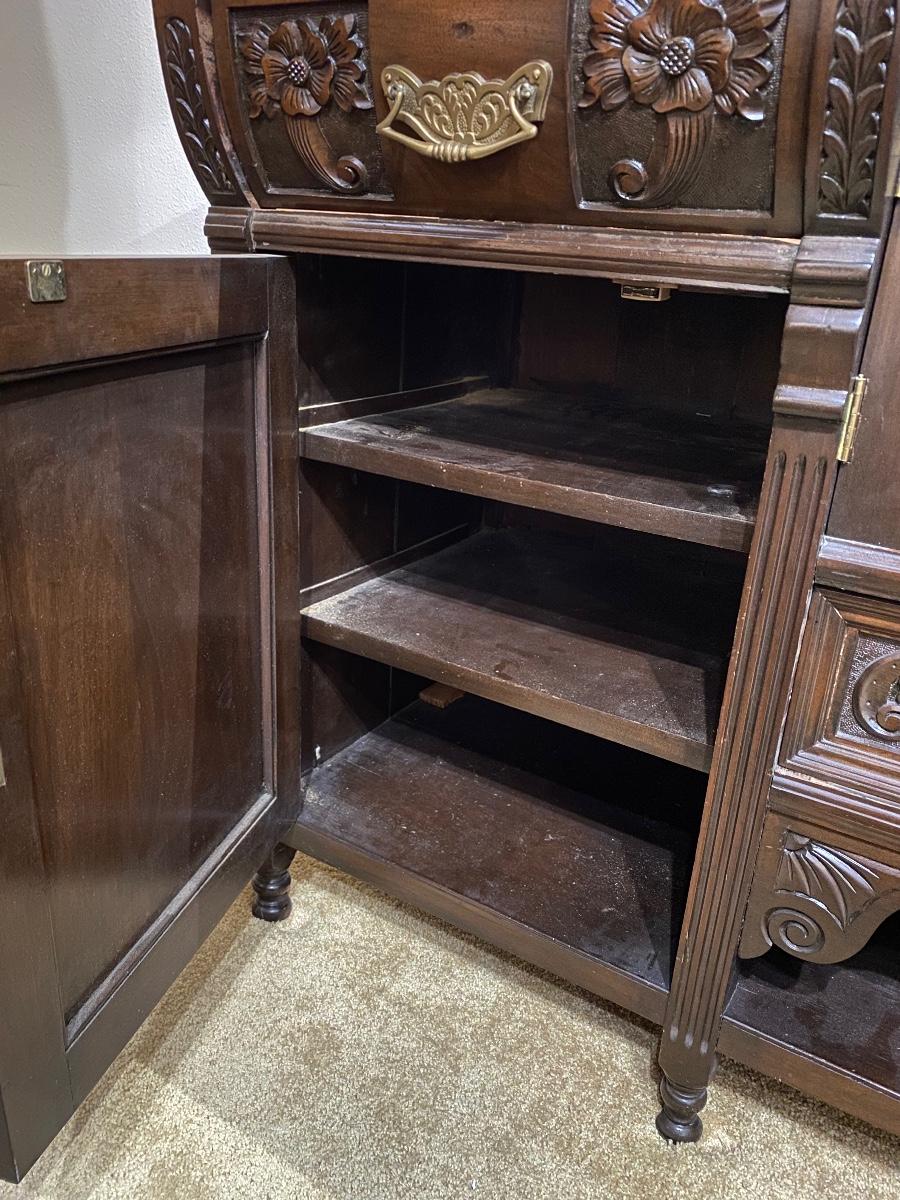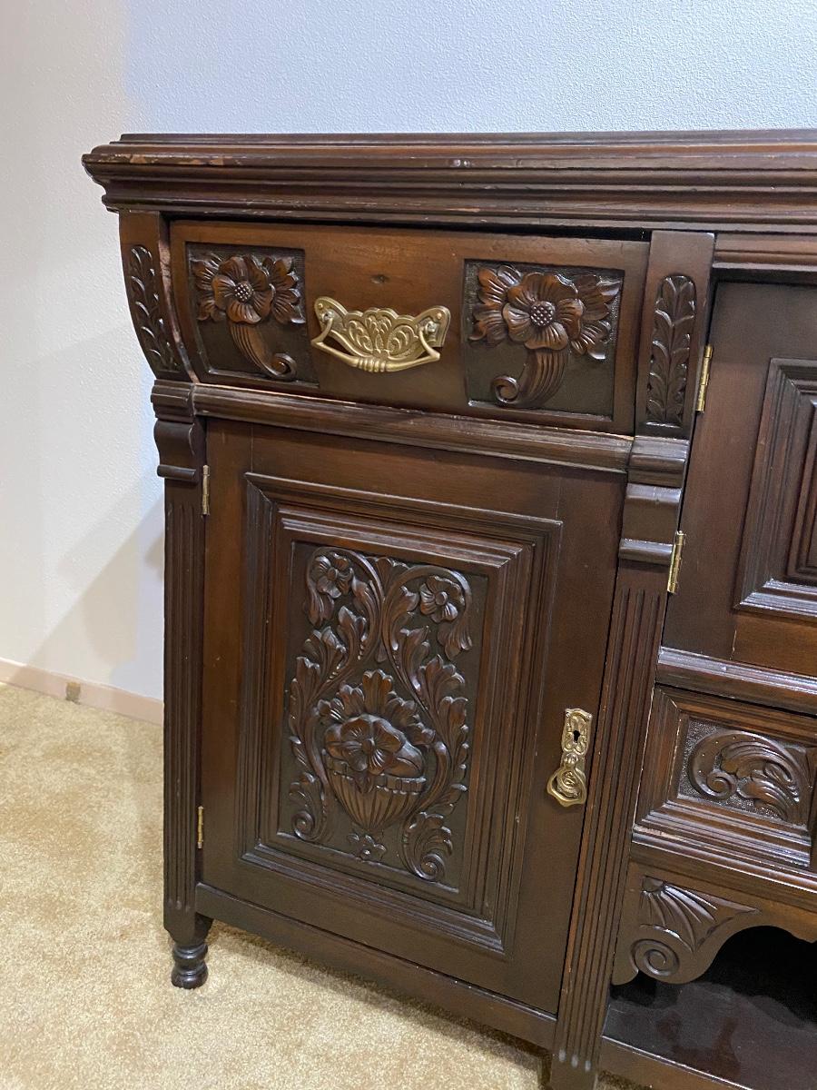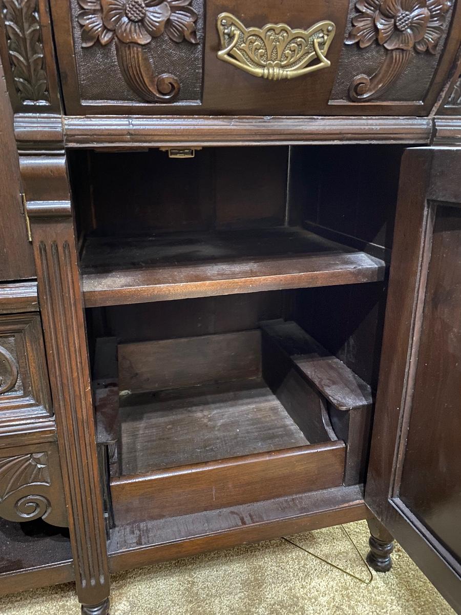 Vintage Dark Finish Carved Wood Buffet Dresser Sideboard