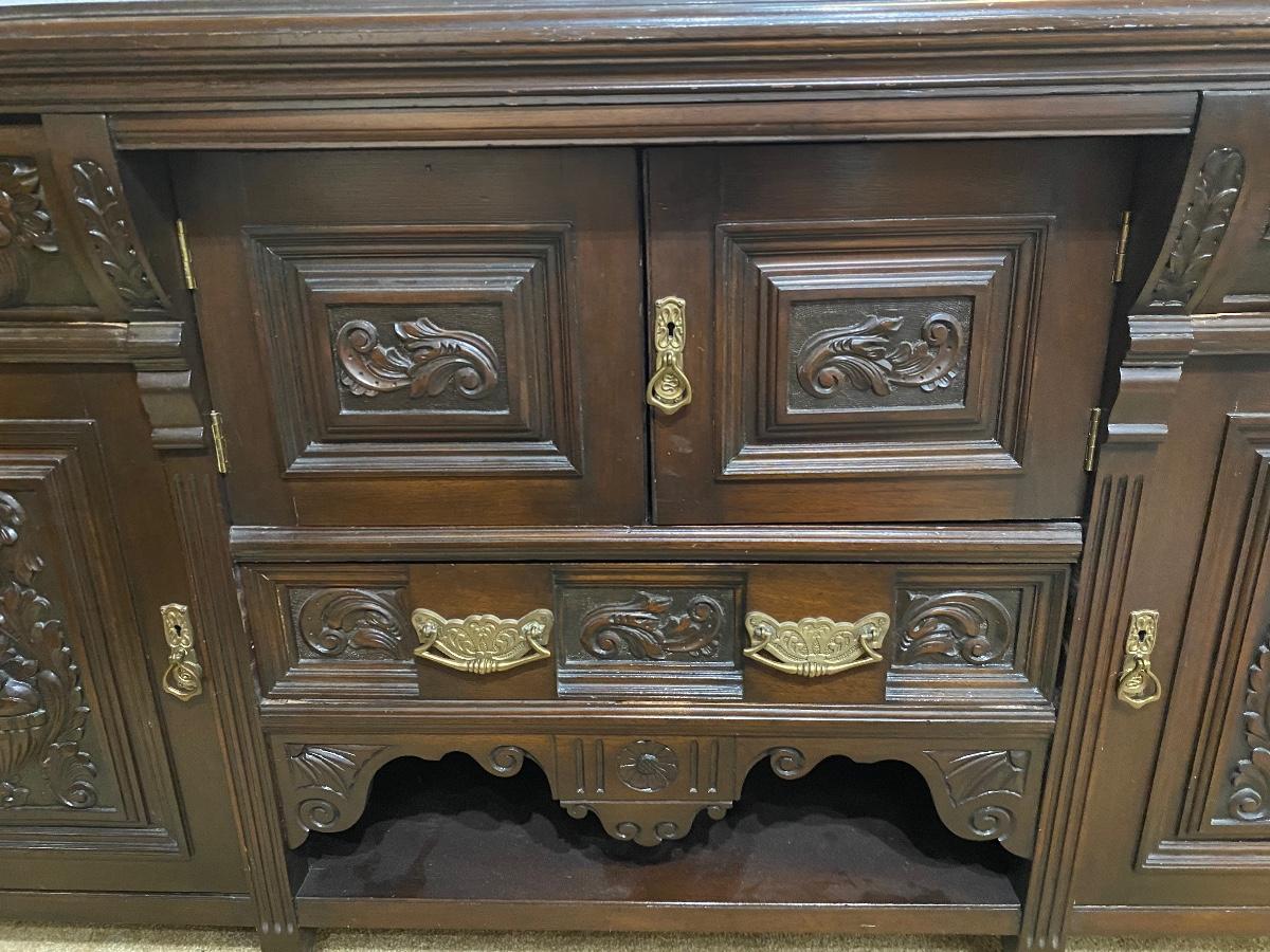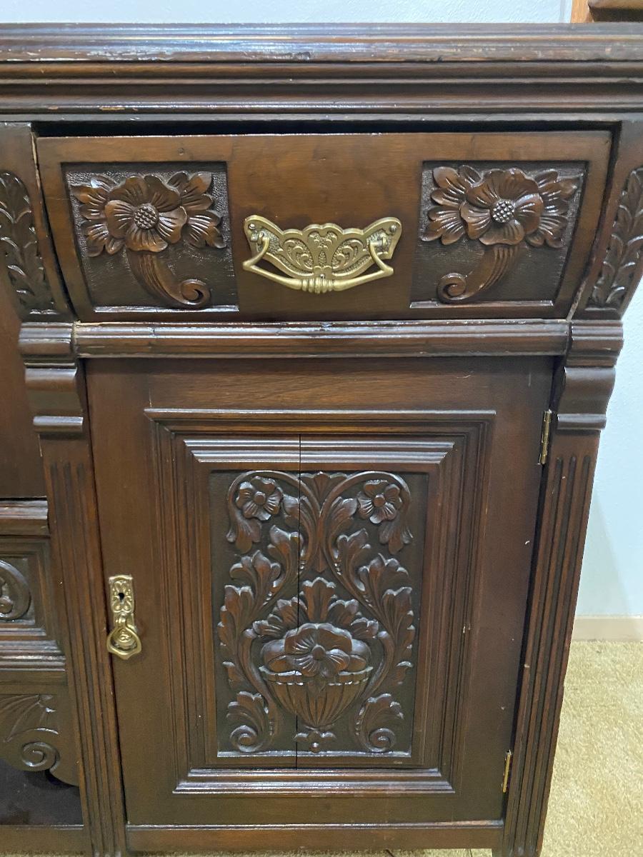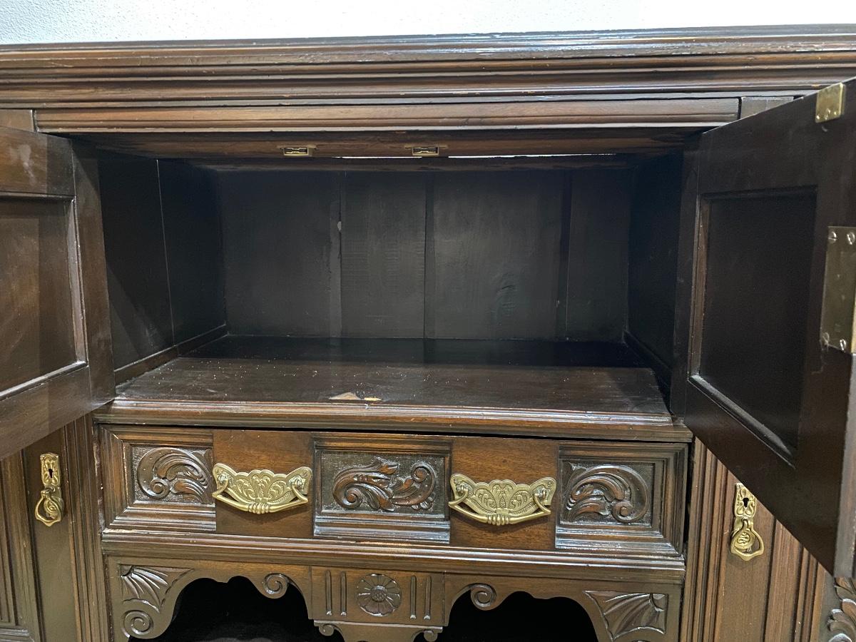 Vintage Dark Finish Carved Wood Buffet Dresser Sideboard