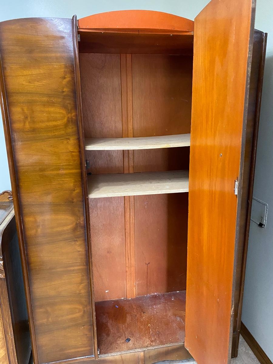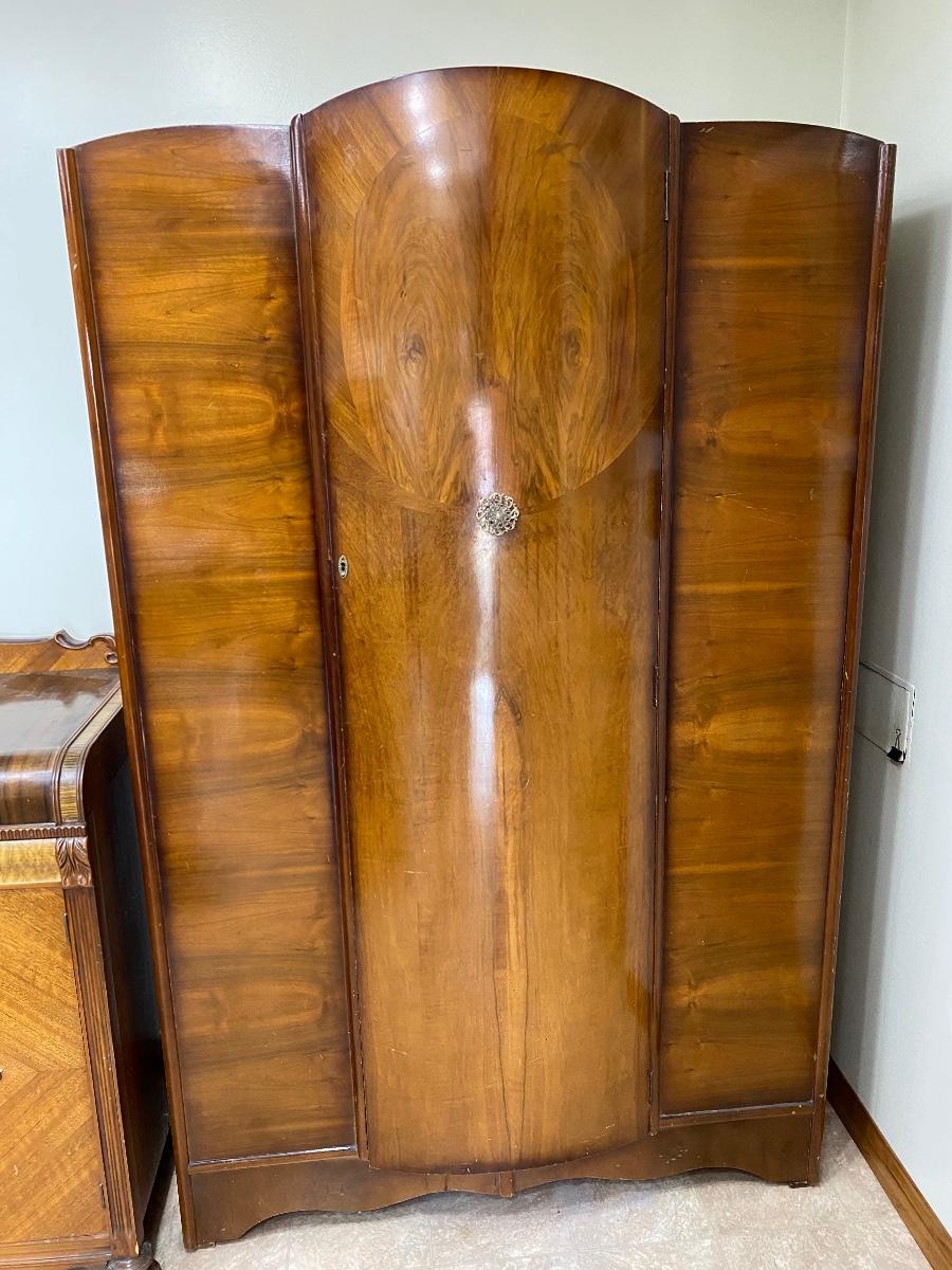 Lovely Art Deco Vintage Antique Walnut Veneer Wood Bow Front Chifforobe Wardrobe Armoire