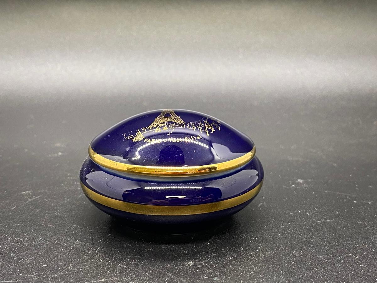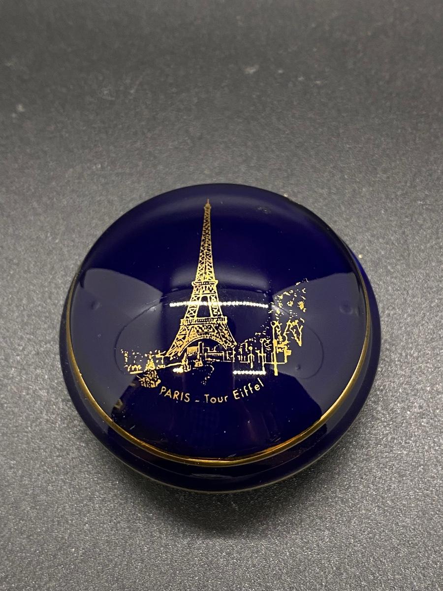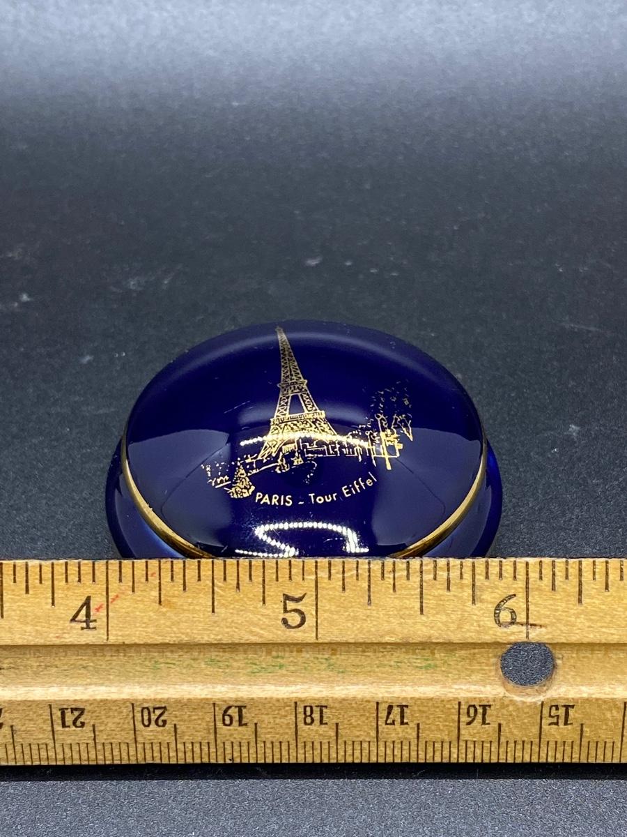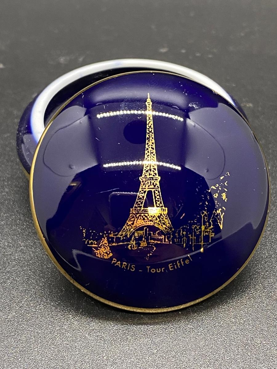 Cobalt Blue & Gold Eiffel Tower Paris Lidded Trinket Dish by Limoges. Made in France. In great condition, no damage, little to no wear to the gold. About 2" size.