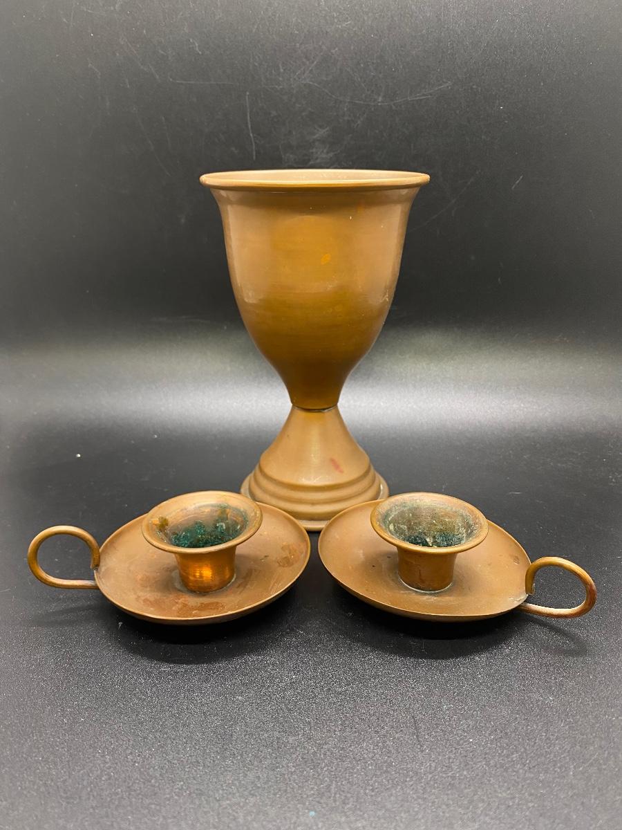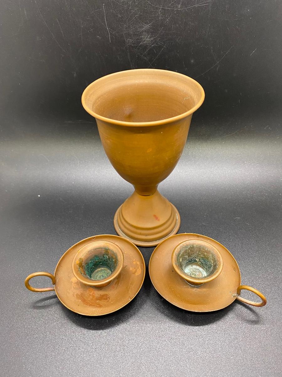 Vintage Copper Chalice Cup & Candlestick Holders