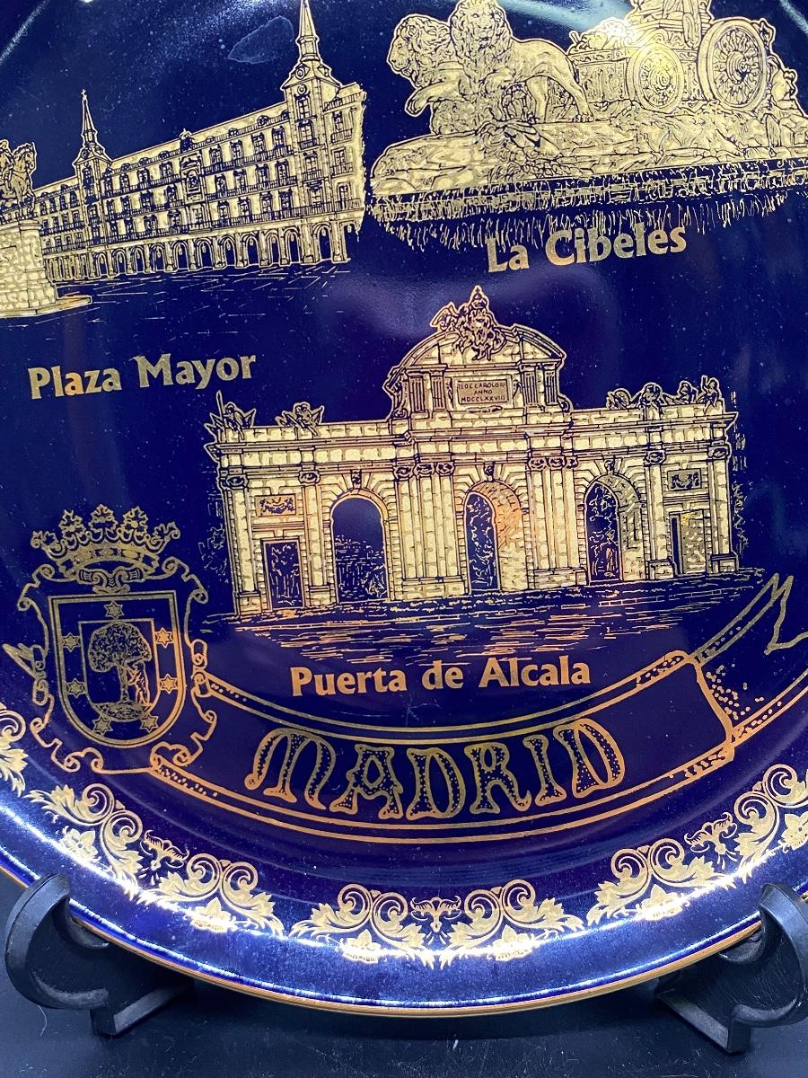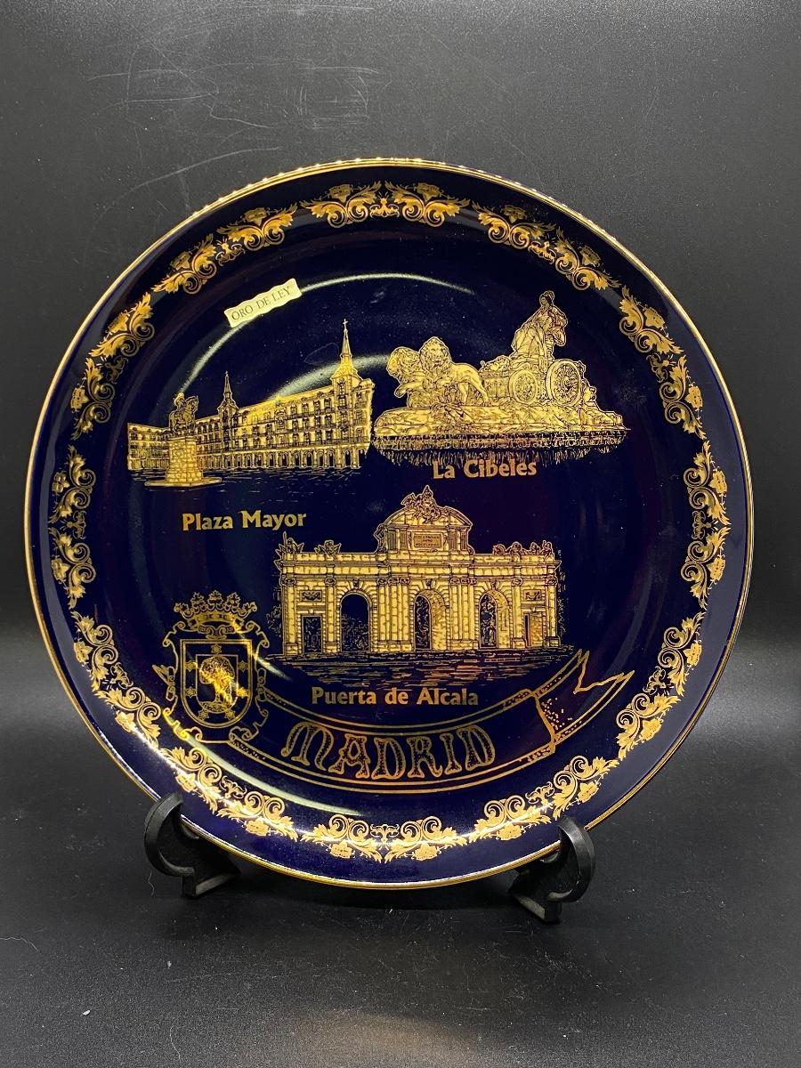 Vintage Cobalt & Gold Gilt Souvenir Plate Madrid Spain. In good vintage condition, little to no wear.