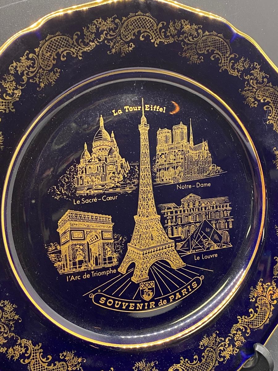 Vintage Limoges 22k Cobalt & Gold French Eiffel Tower Paris Souvenir Plate. Beautiful details, little wear.
