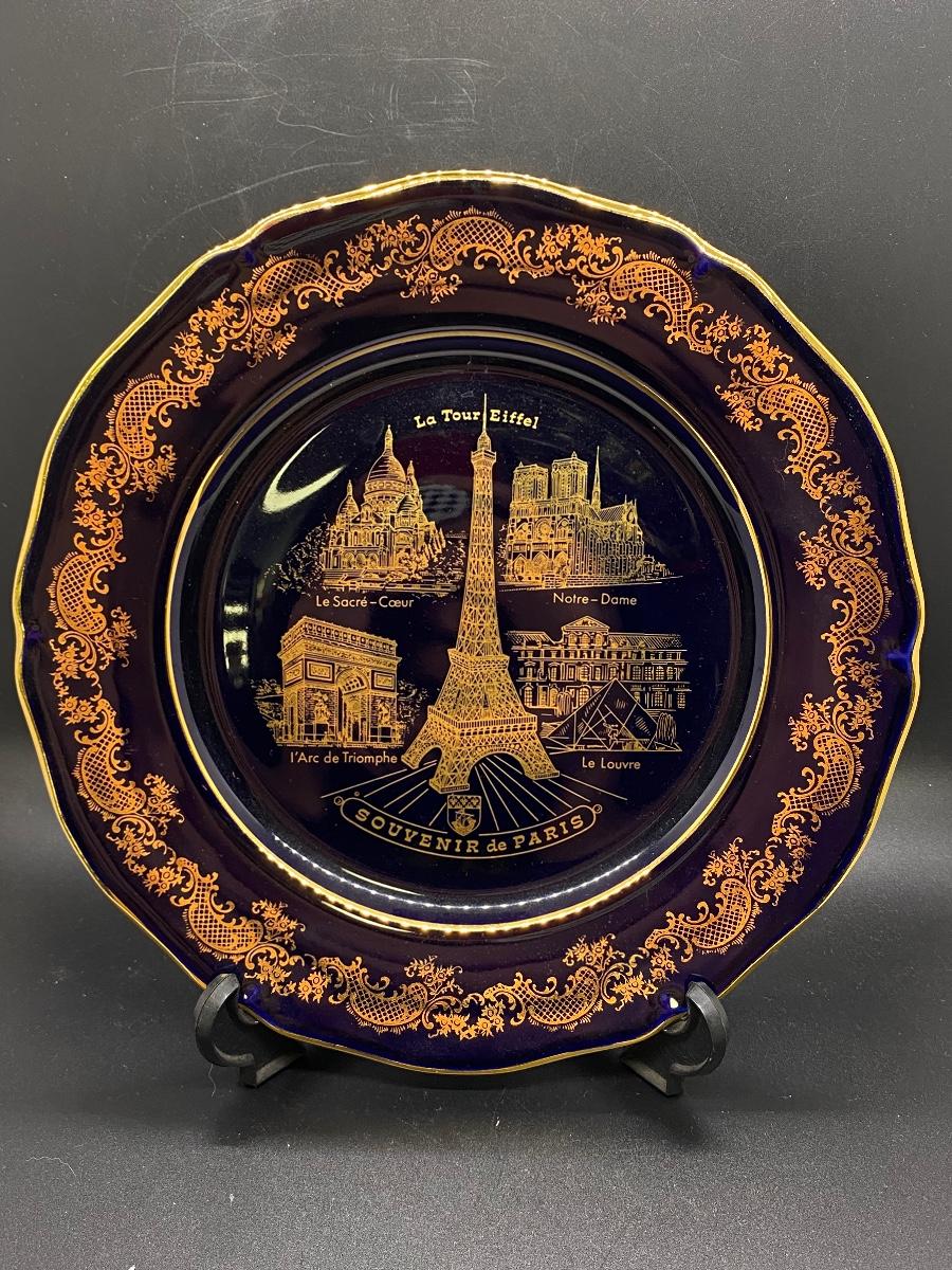 Vintage Limoges 22k Cobalt & Gold French Eiffel Tower Paris Souvenir Plate
