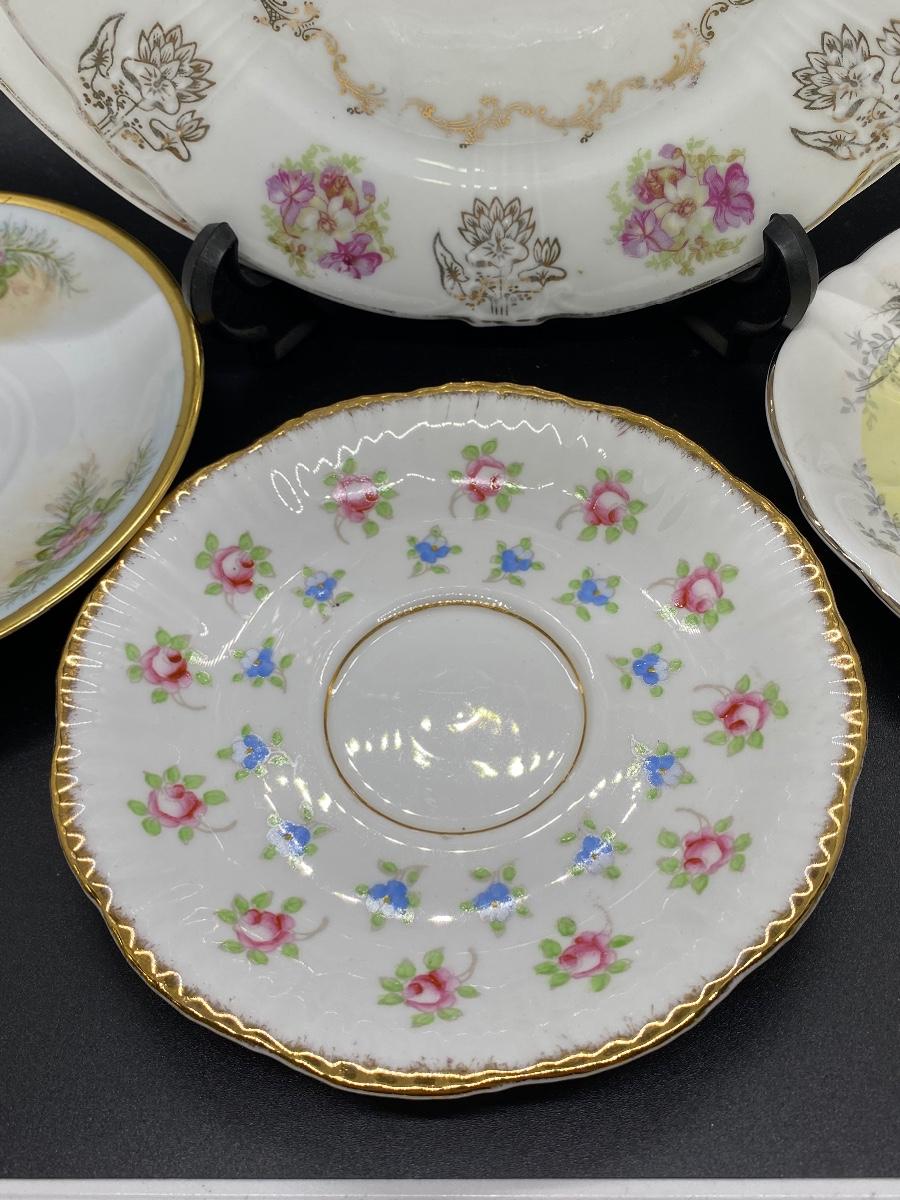 Mixed lot of floral china. Saucers and plates. No chips, may have crazing.