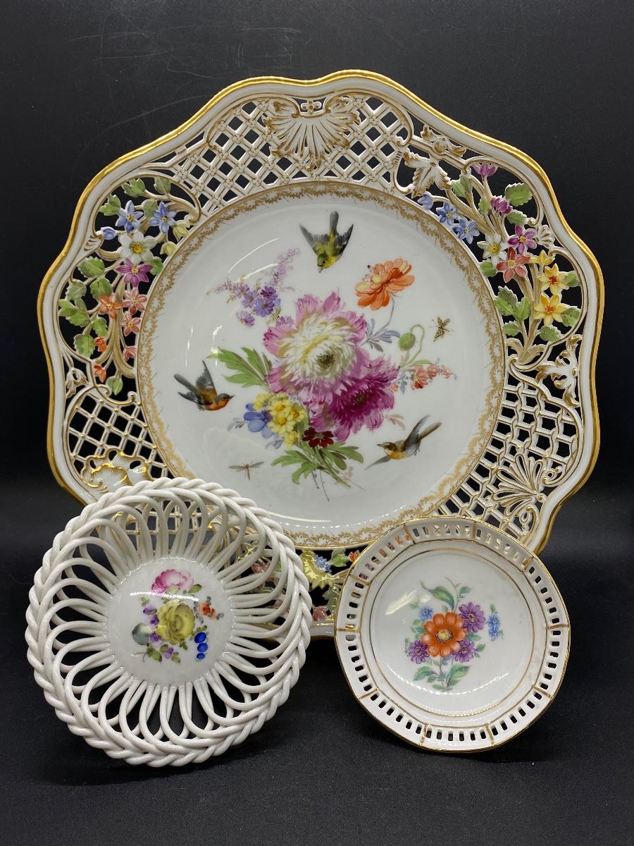 Vintage Floral Basket Lace Edge China Porcelain Plate Dishes. Good conditions, no chips. Different makers.