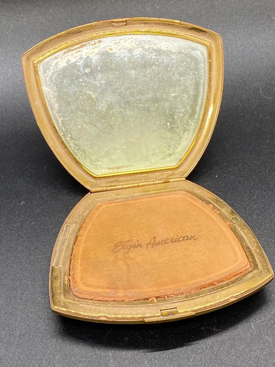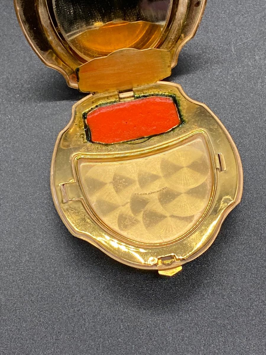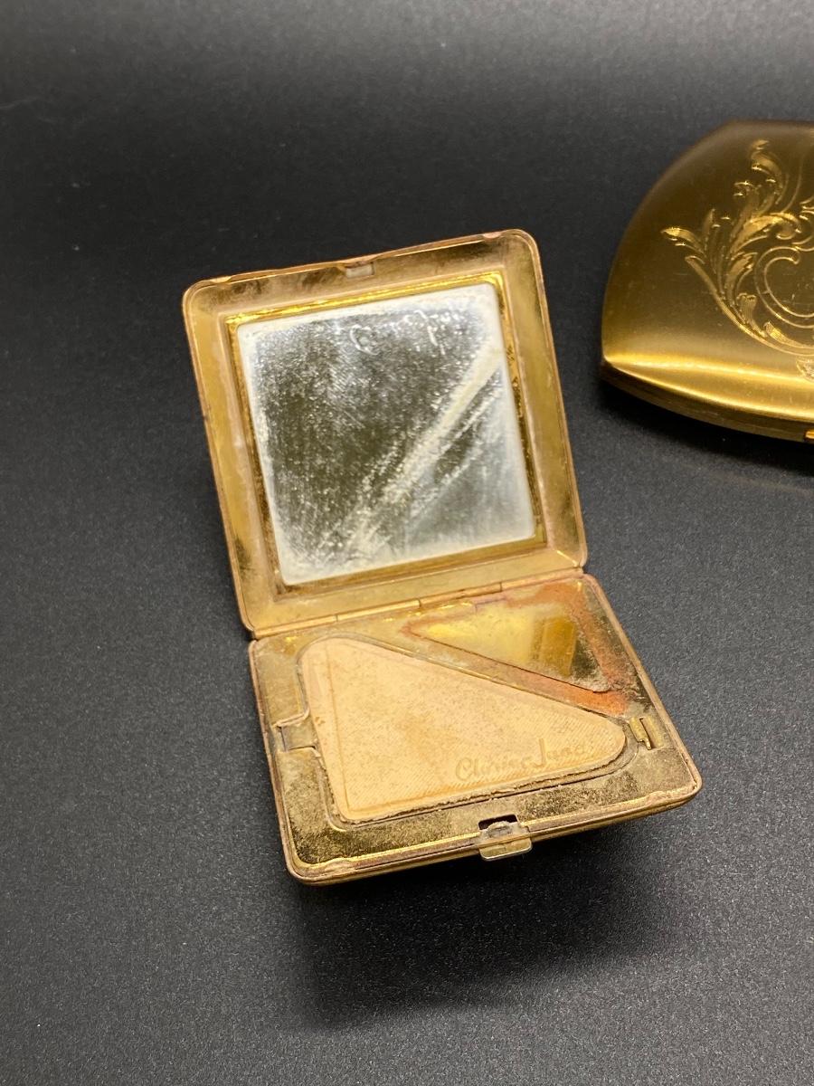 Set of 3 vintage makeup compacts. Two are powder & lipstick/rogue compacts with makeup in them. All are in used conditions, need to be cleaned a little.