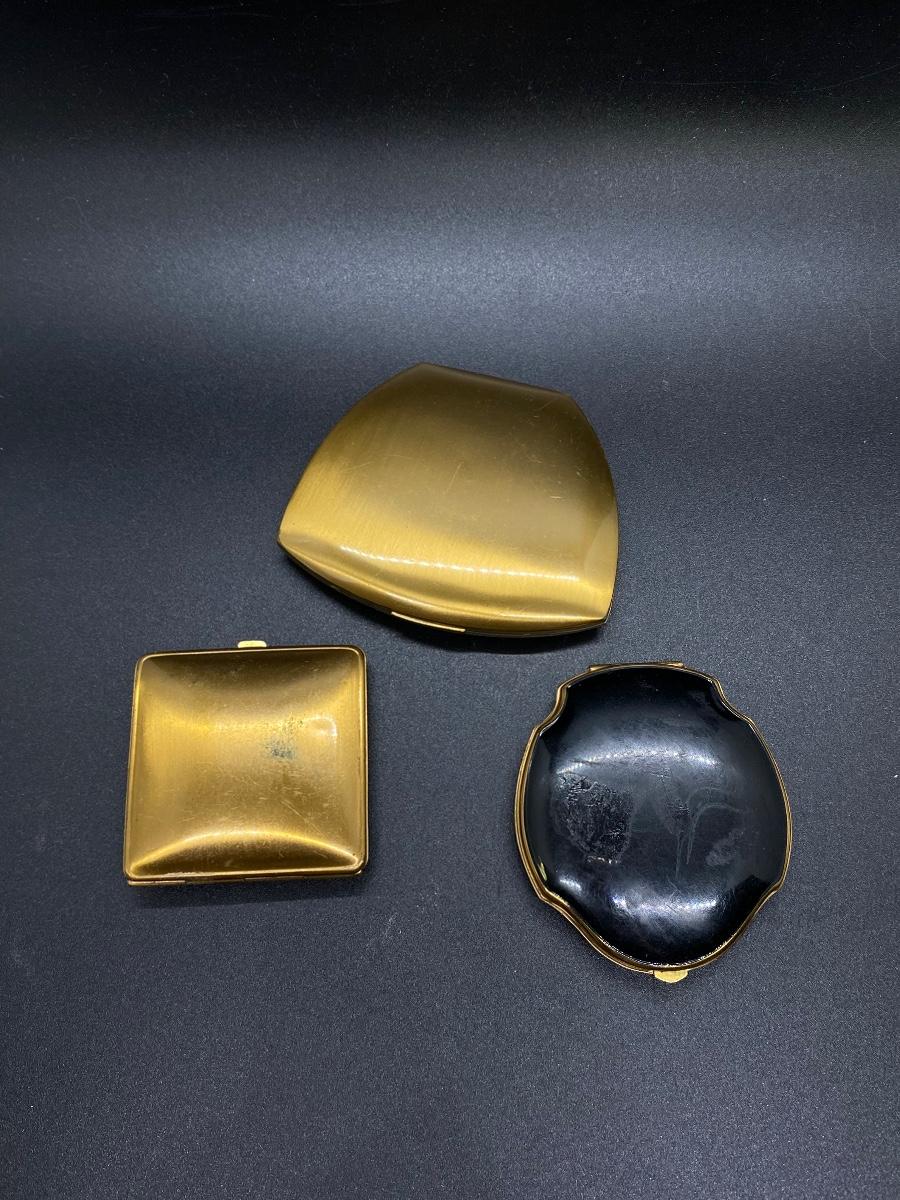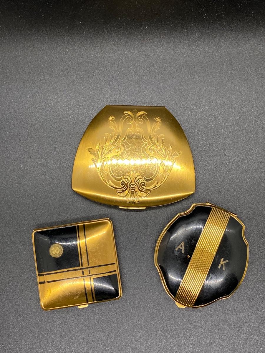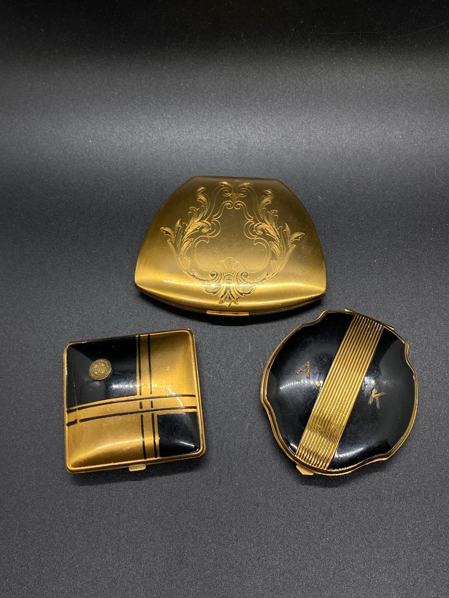 Set of 3 Vintage Gold Tone Powder Lipstick Rogue Makeup Compacts