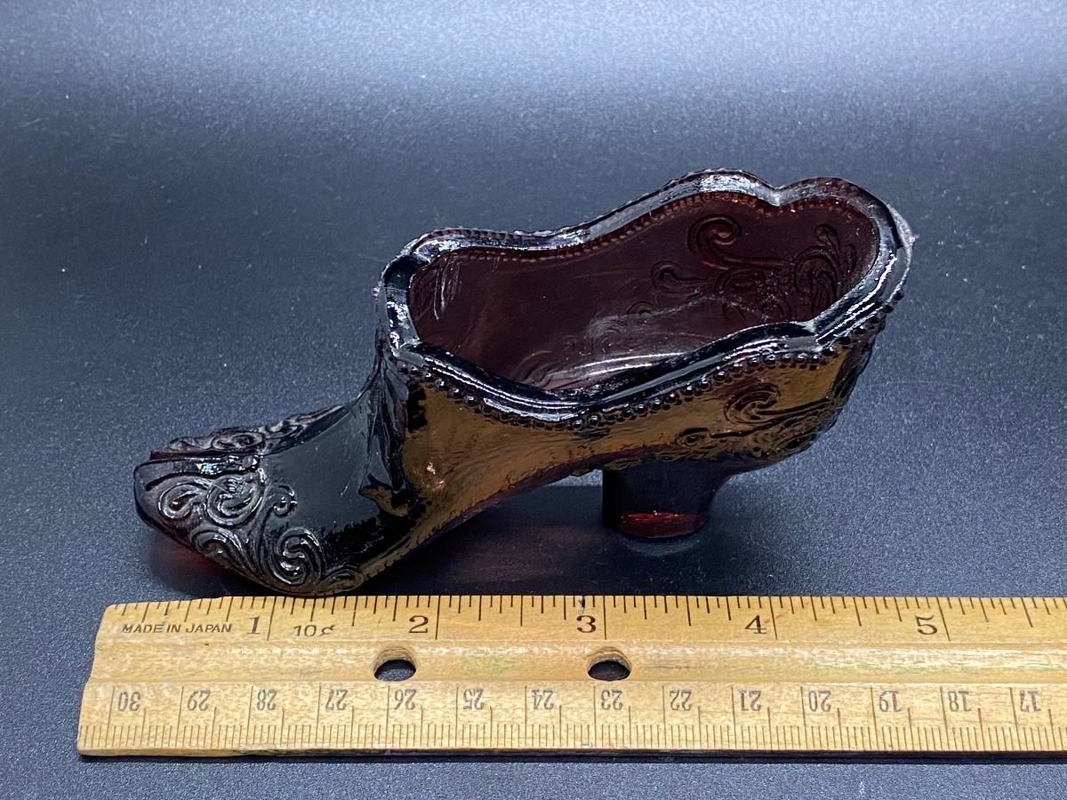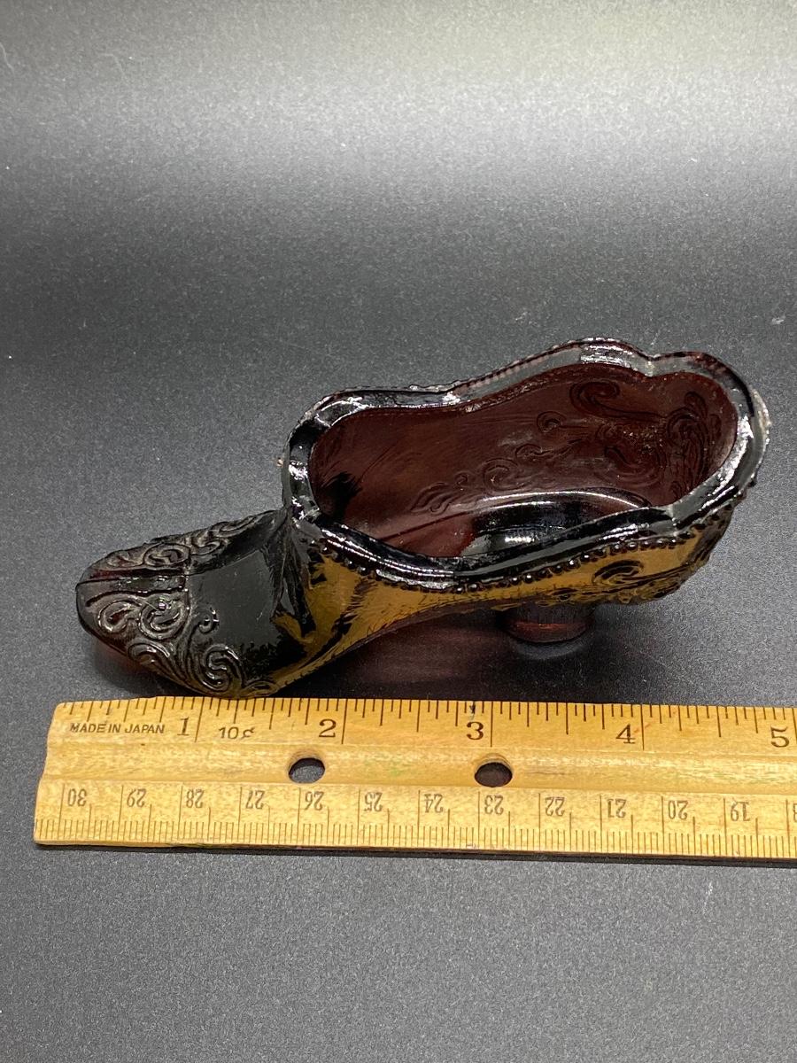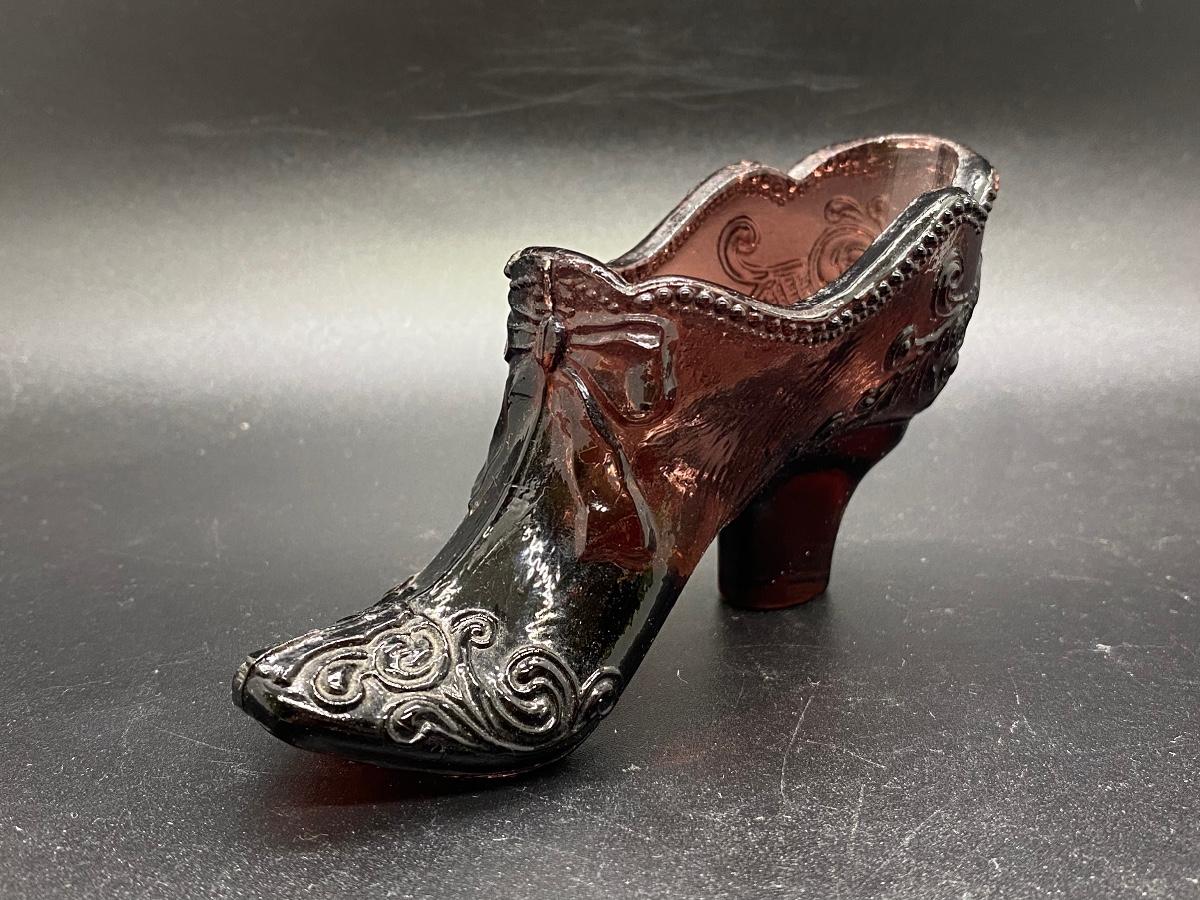 Vintage purple glass slipper figurine dish. Good condition. About 5" size.